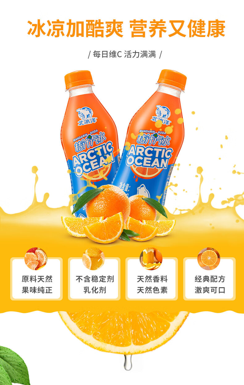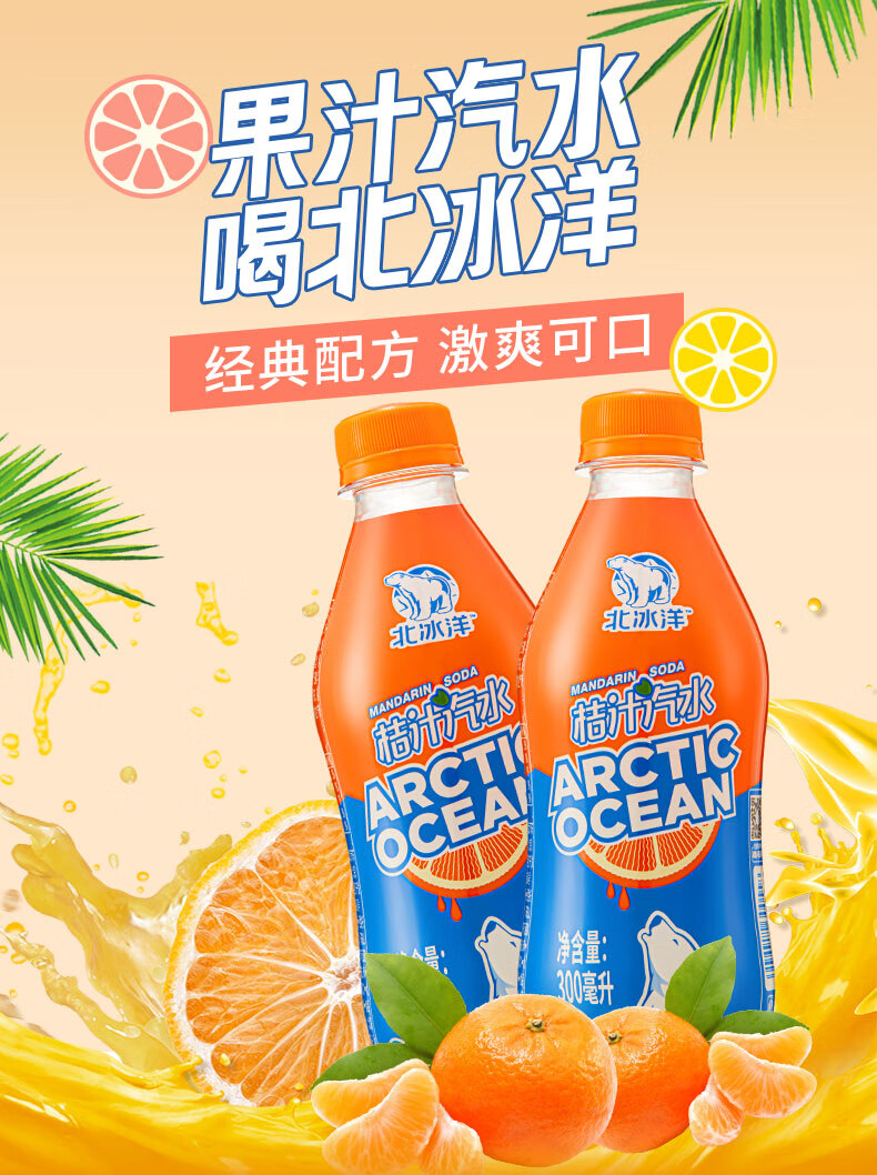 北冰洋PET桔汁汽水300ml*12瓶 含果汁碳酸饮料 老北京汽水 便携款 12瓶