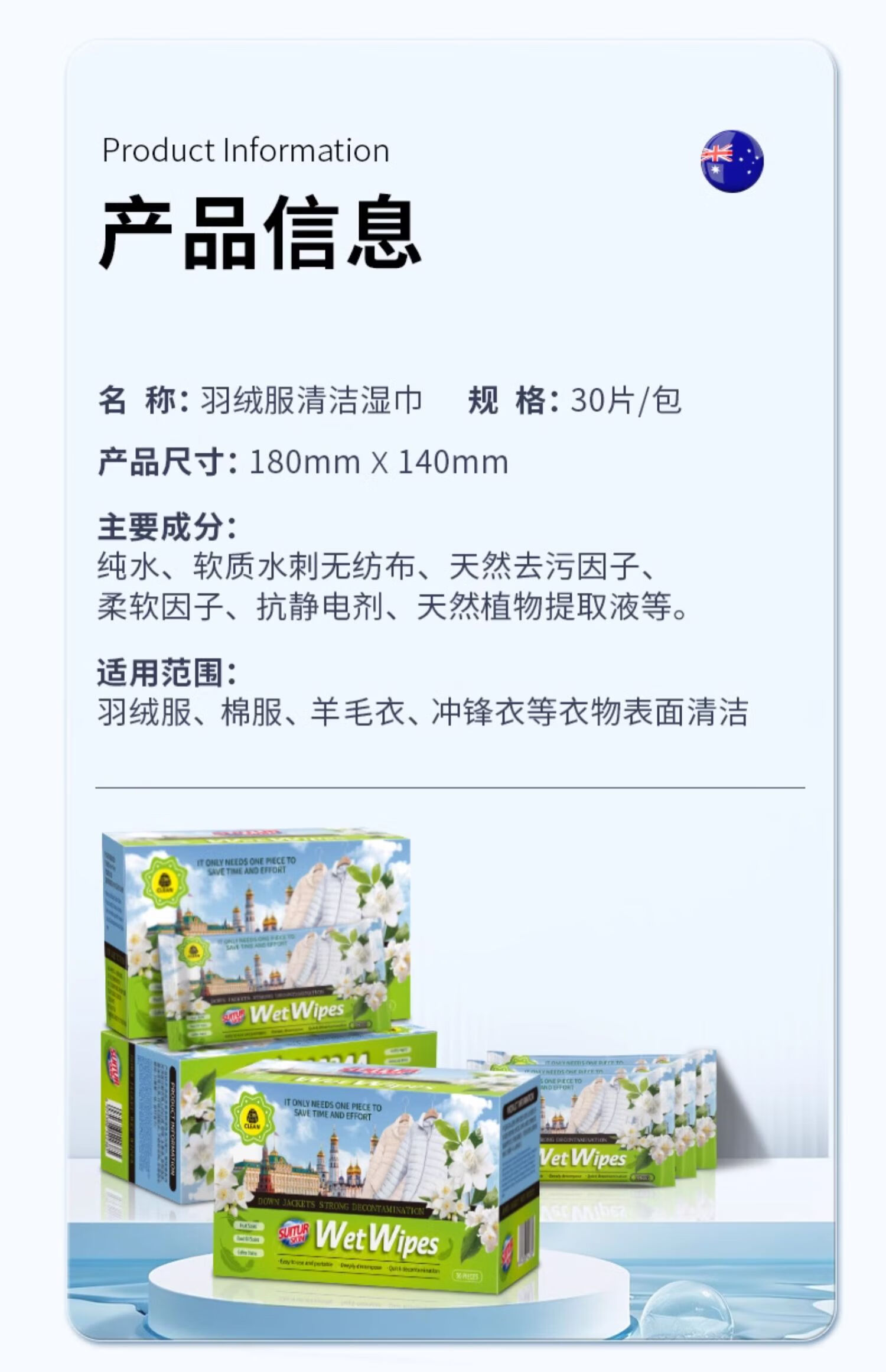 博利婴羽绒服免洗去污湿巾 独立30片*1盒 羽绒服去污湿巾