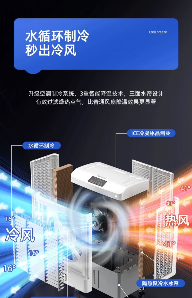 志高(CHIGO)工业冷风机空调扇商用制冷风扇水空调冷气机移动家用水冷空调扇可单冷大风量 家用机械【三面水帘】0.85米高