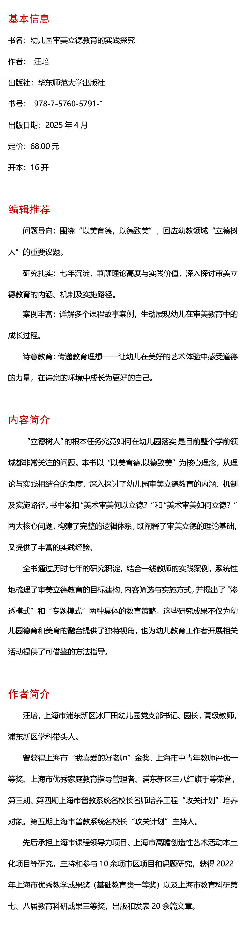 新华正版 幼儿园审美立德教育的实践探究 教育