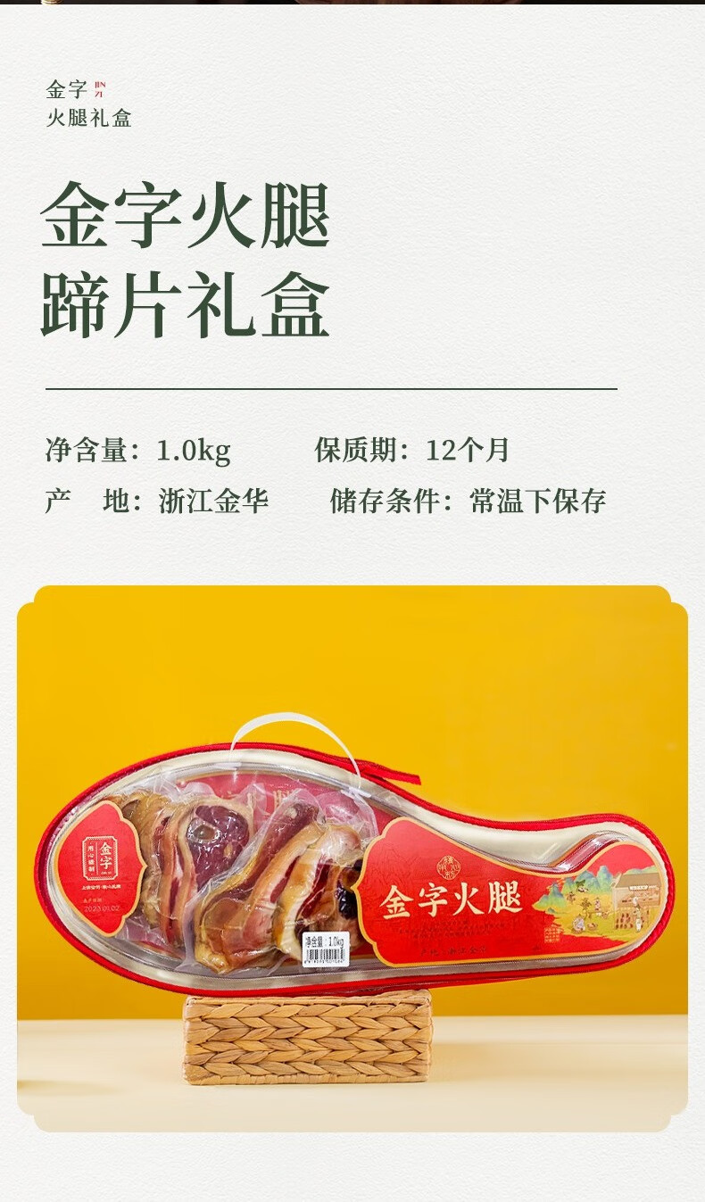 金字金华火腿蹄片礼盒金银蹄切片火腿分割炖汤用品年货礼盒送礼 金字火腿蹄片礼盒1kg