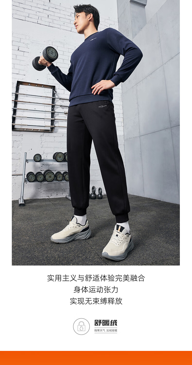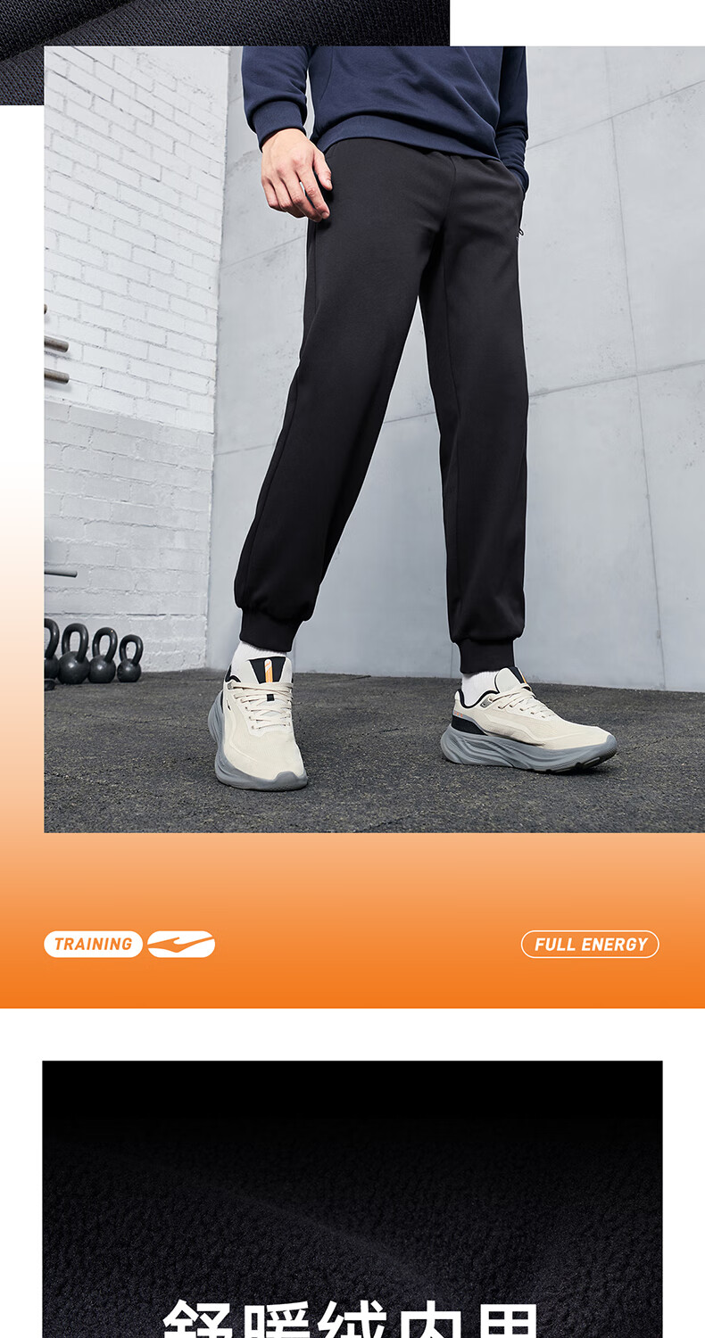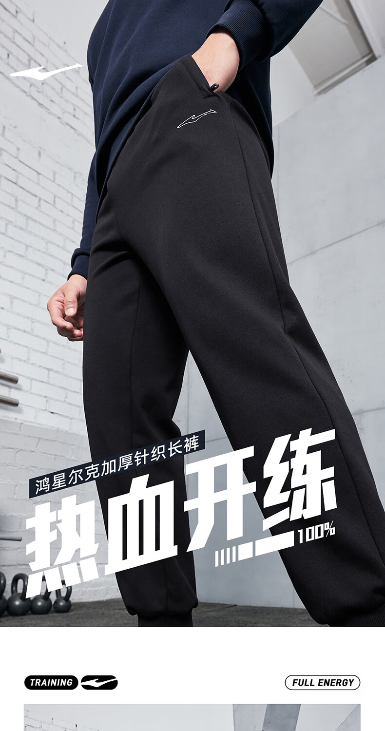 鸿星尔克运动裤男冬季加厚加绒针织长裤束脚收口跑步男裤保暖休闲裤子男