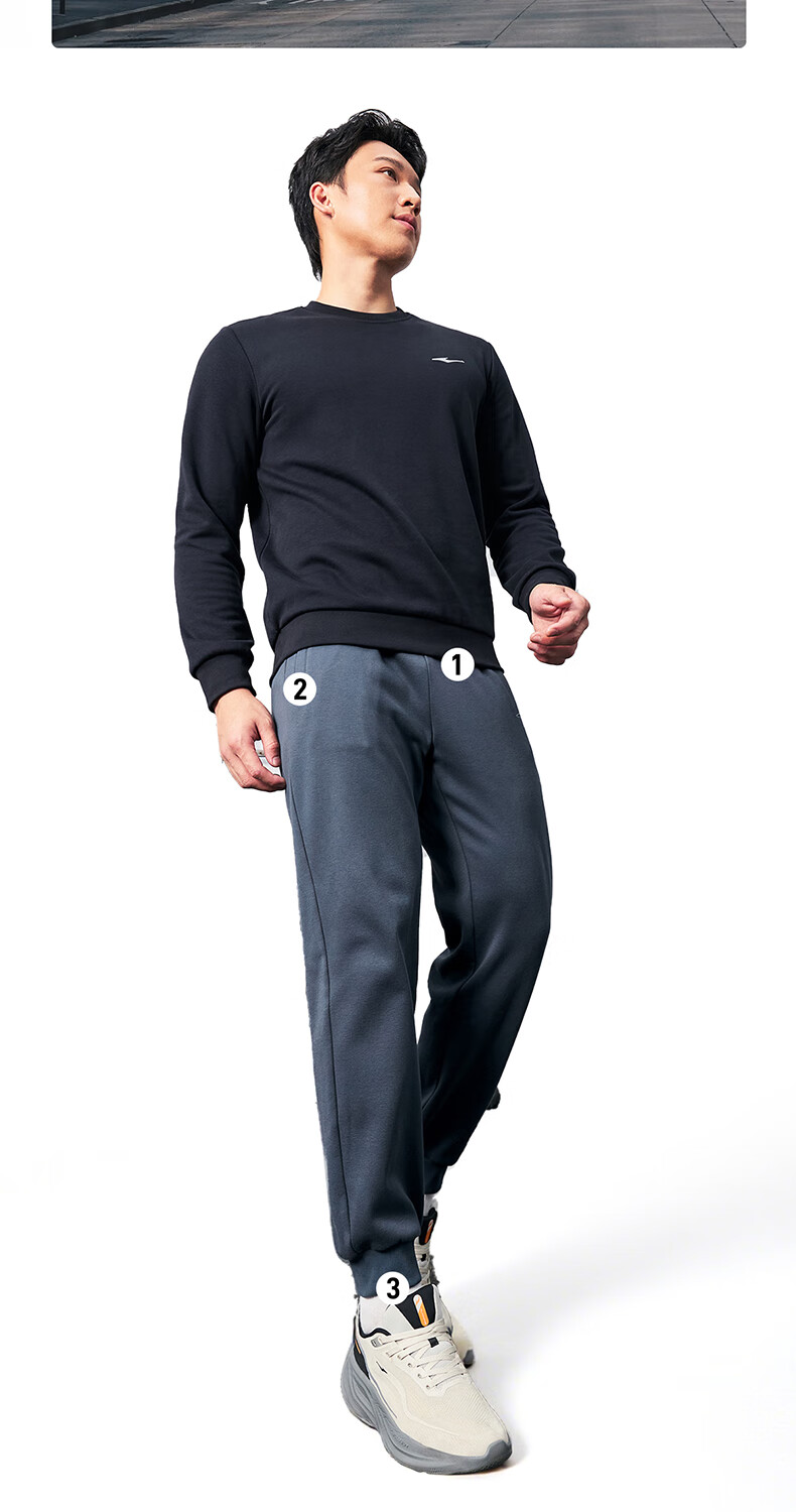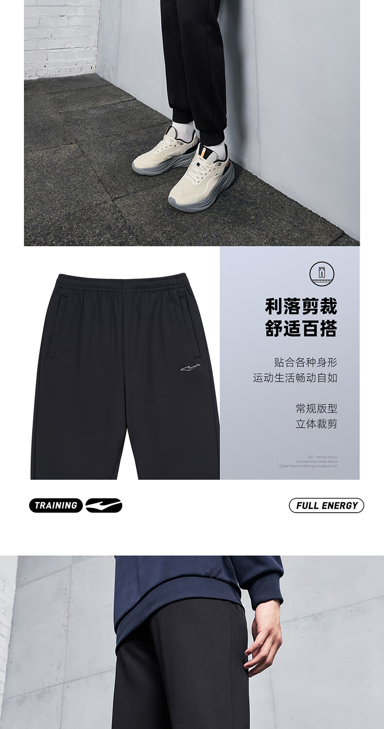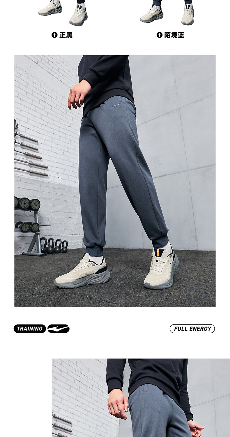 鸿星尔克运动裤男冬季加厚加绒针织长裤束脚收口跑步男裤保暖休闲裤子男