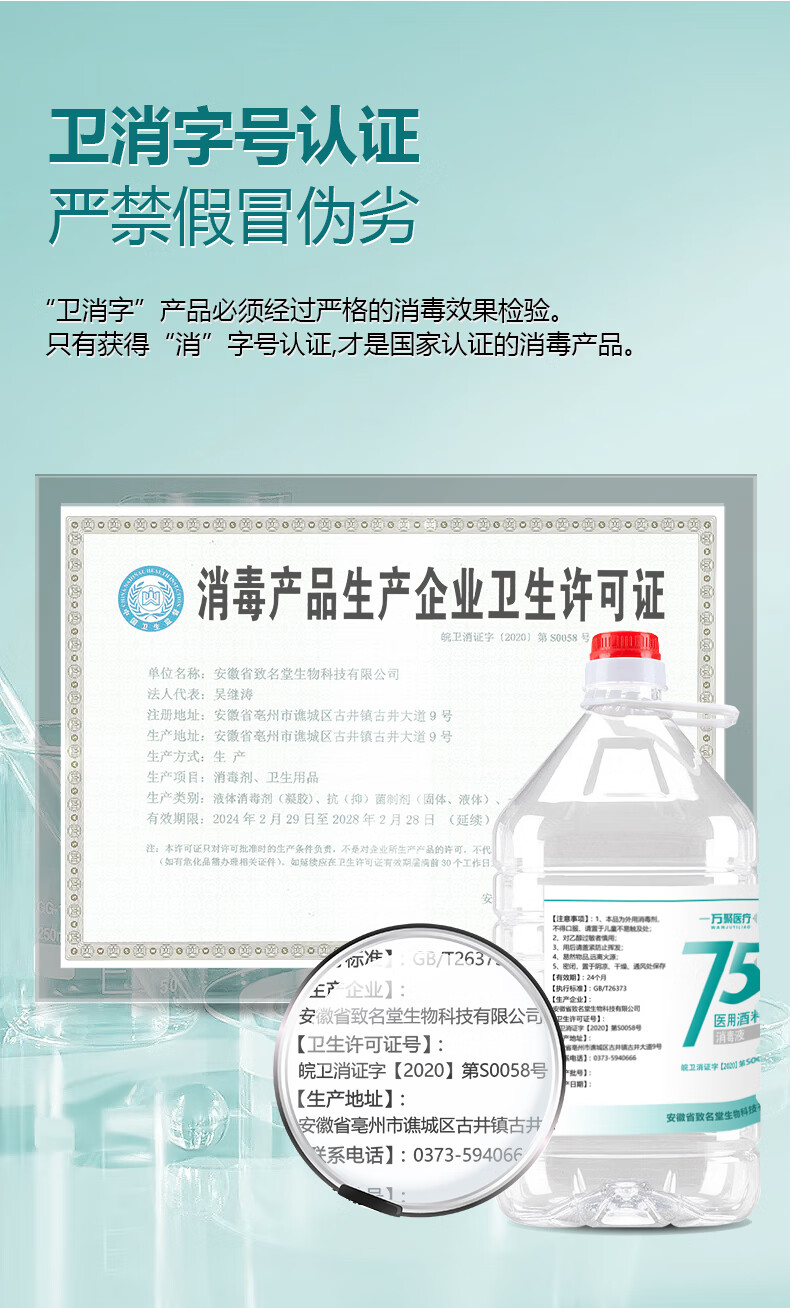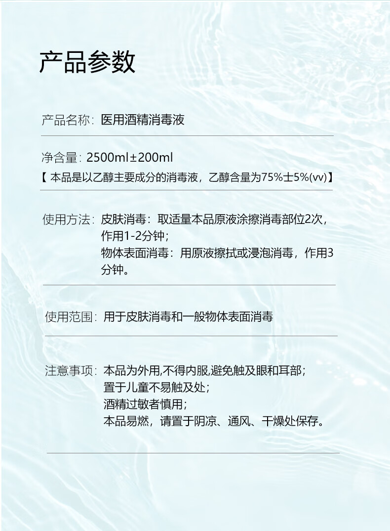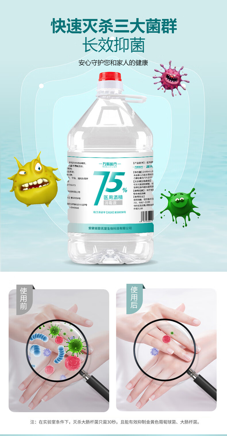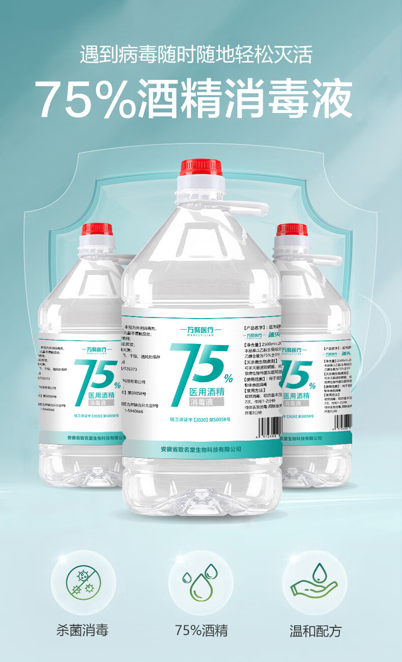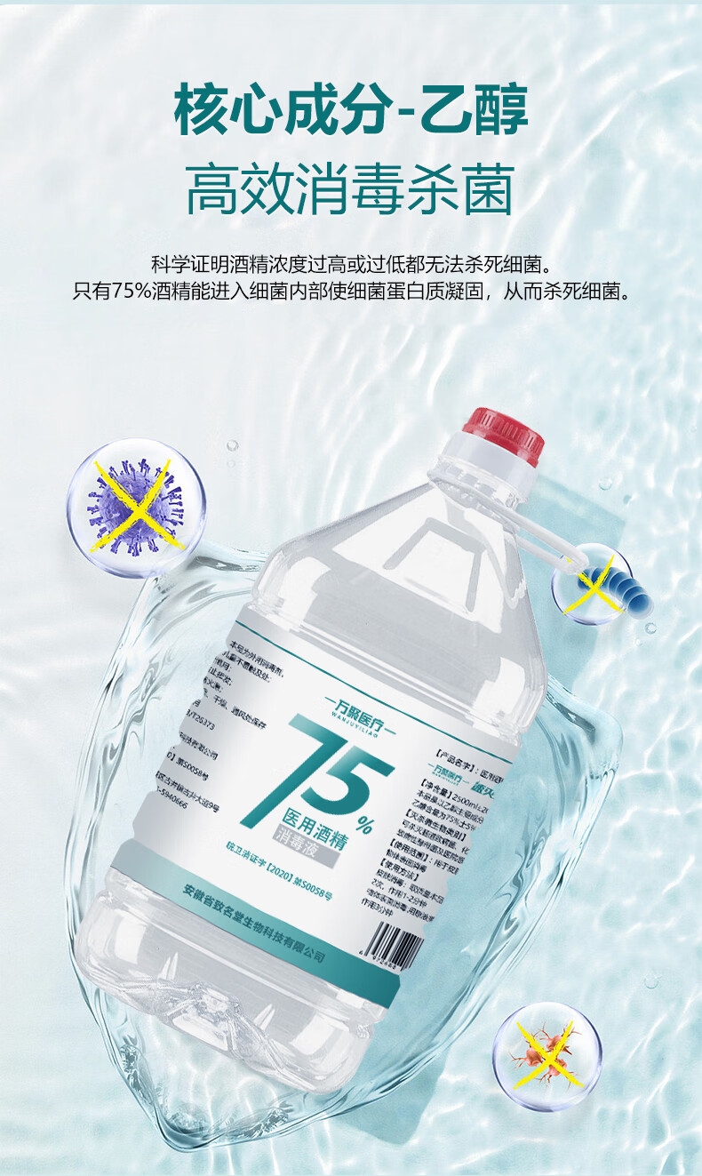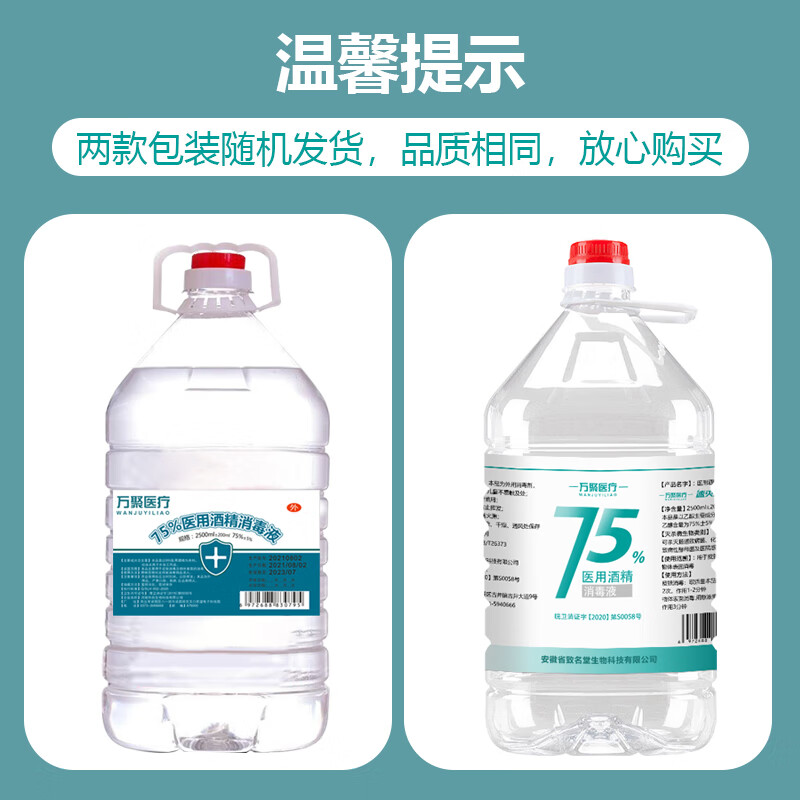 万聚医疗 75%酒精乙醇消毒液75度酒精2.5L 皮肤物品清洁消毒护理