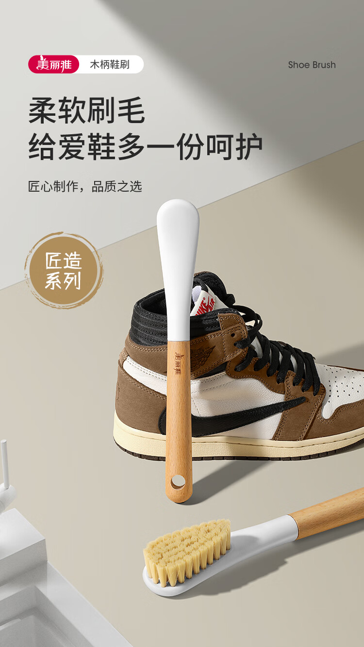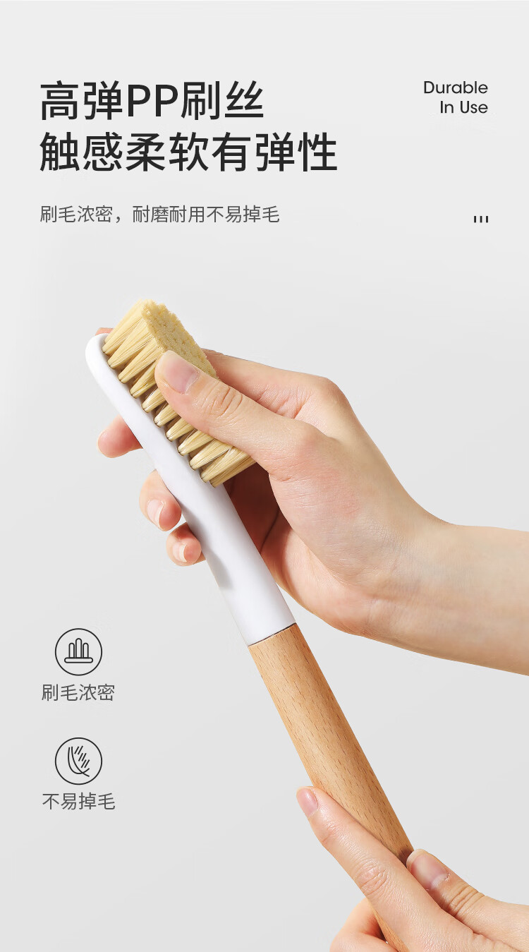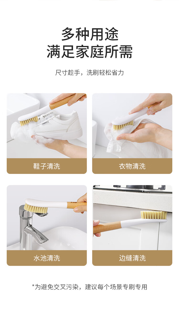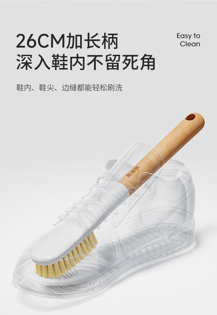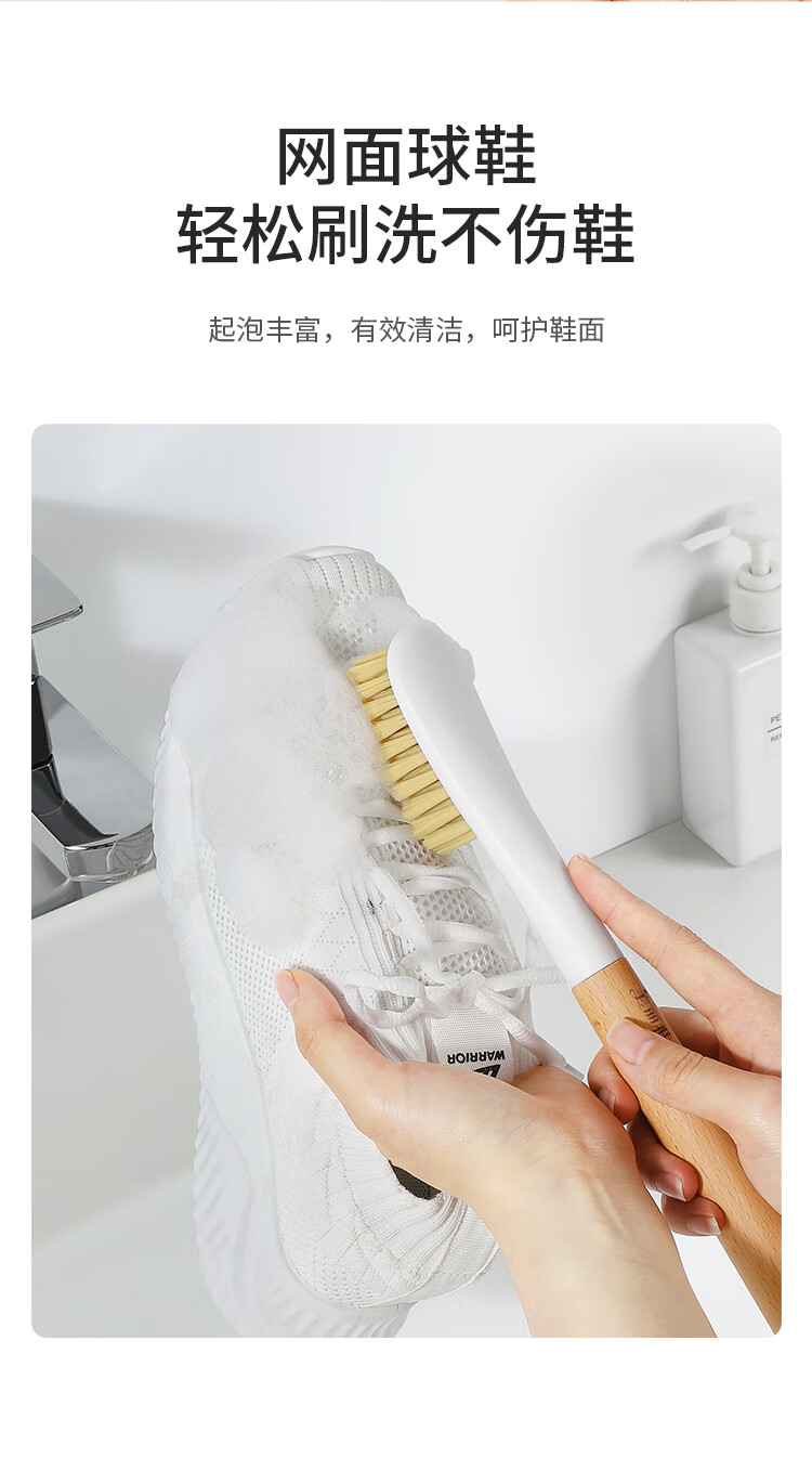 美丽雅鞋刷日式加长木制手柄洗鞋洗衣去污清洁软毛刷子1只装