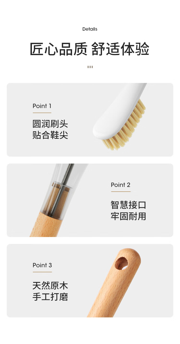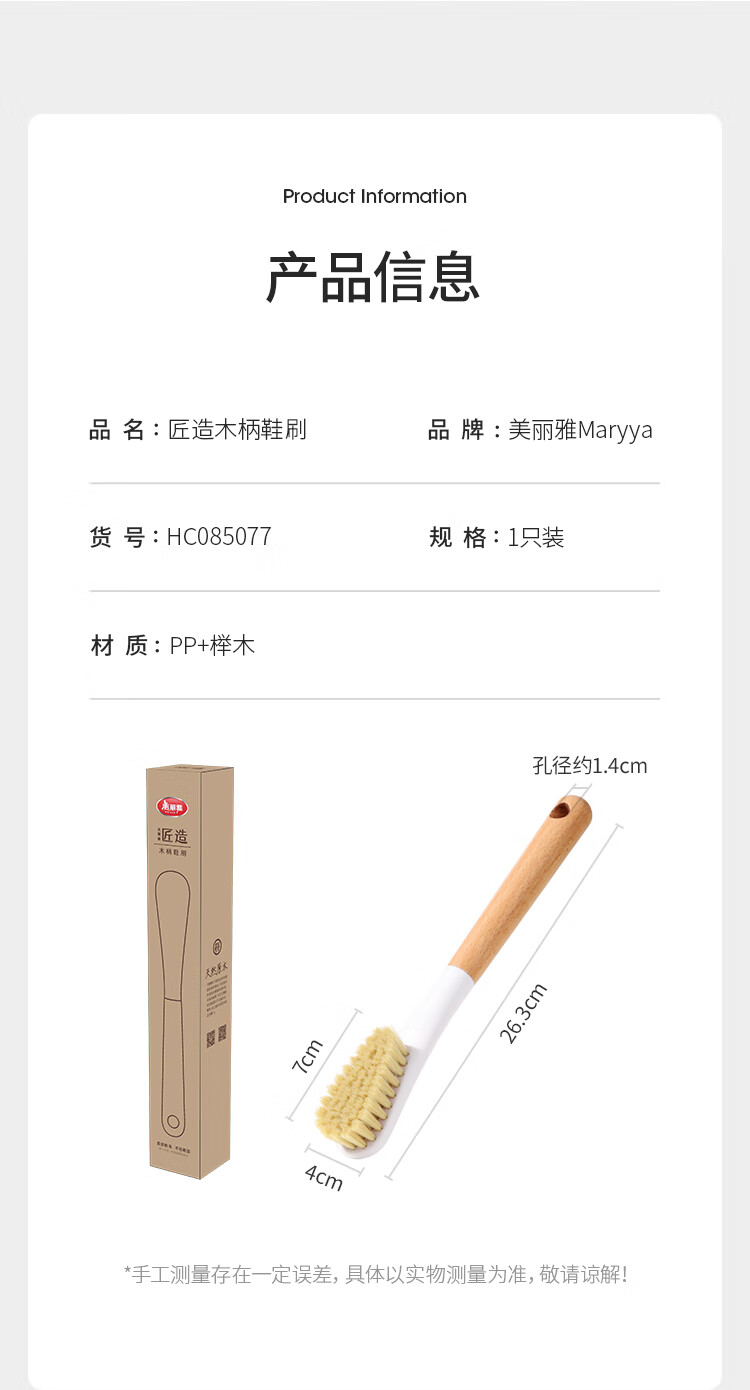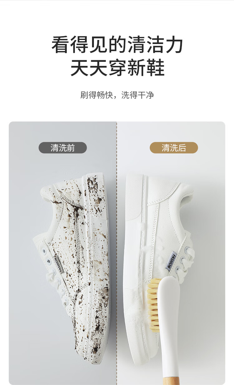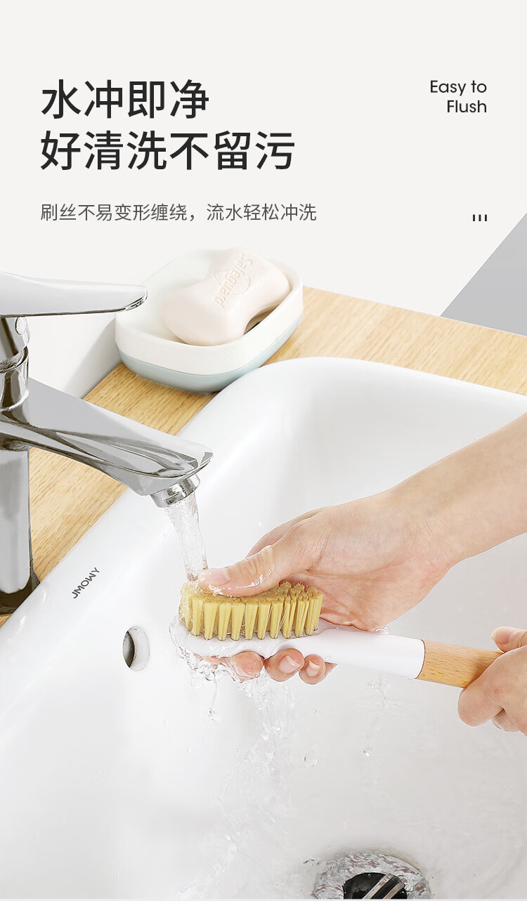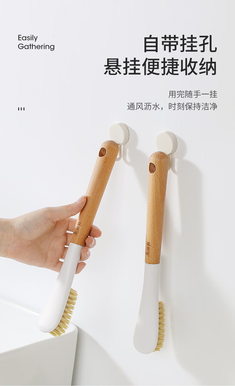 美丽雅鞋刷日式加长木制手柄洗鞋洗衣去污清洁软毛刷子1只装
