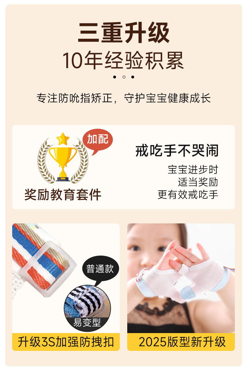 富瑞卡(FairyCare)防吃手神器宝宝戒吃手矫正手套婴儿戒手瘾儿童防咬指甲粉色XM码