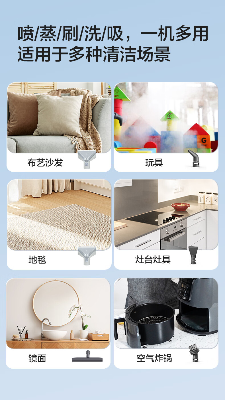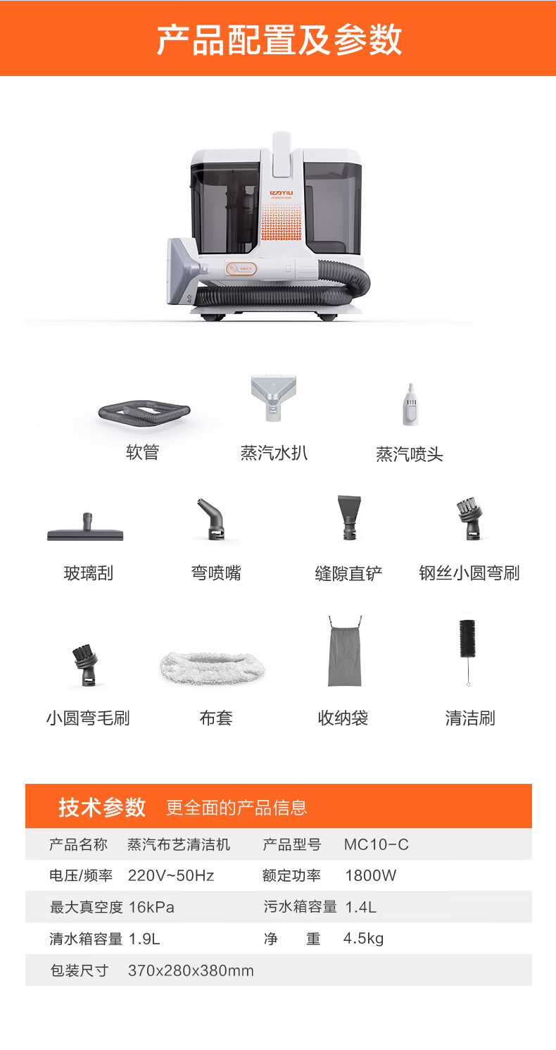 亿力100°高温蒸汽布艺清洗机洗吸一体多功能布艺清洁机地毯沙发窗帘床垫油烟机空调家电清洁神器-MC10