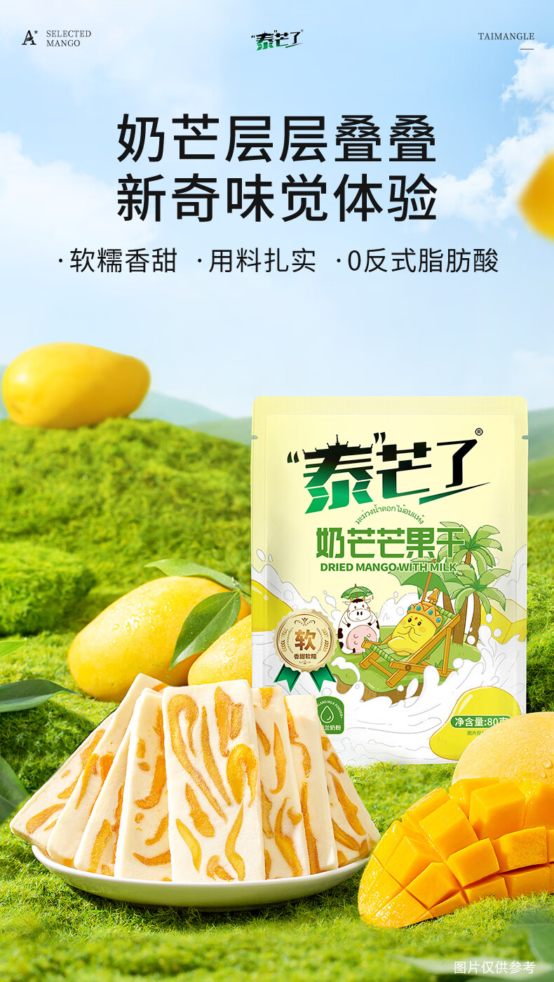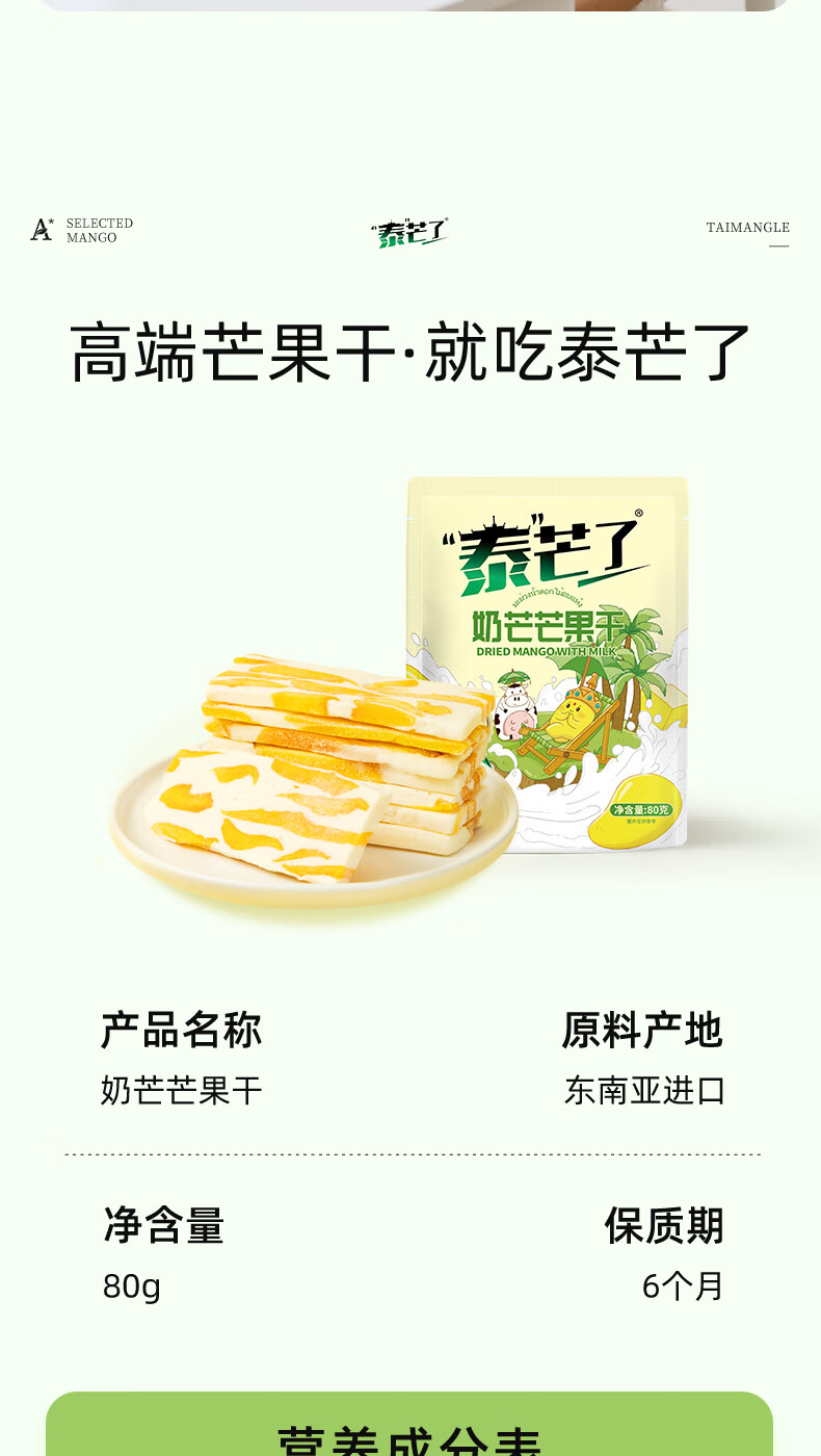 泰芒了奶芒芒果干独立装厚切果脯奶香芒果干奶糕办公外出休闲零食 奶糕80g*2