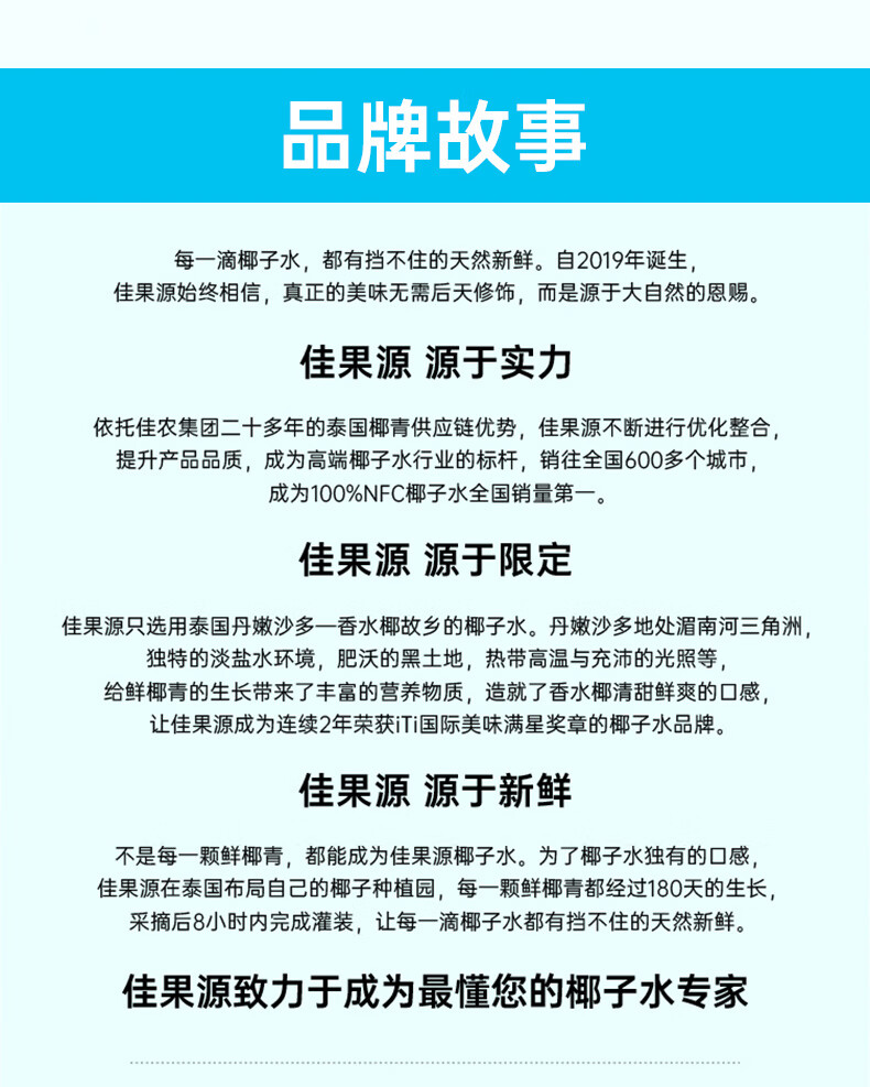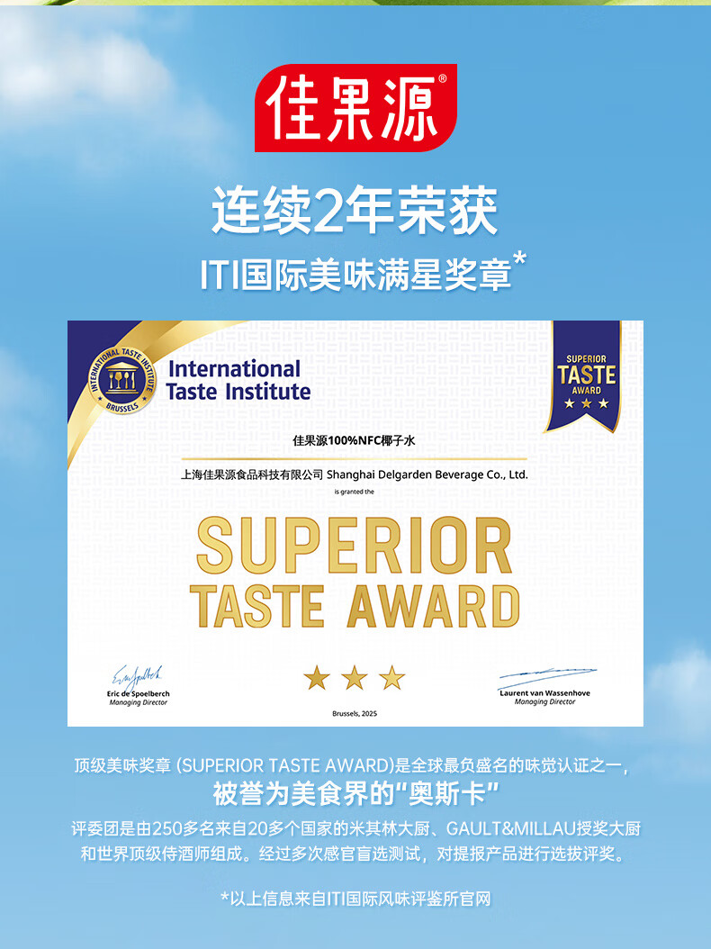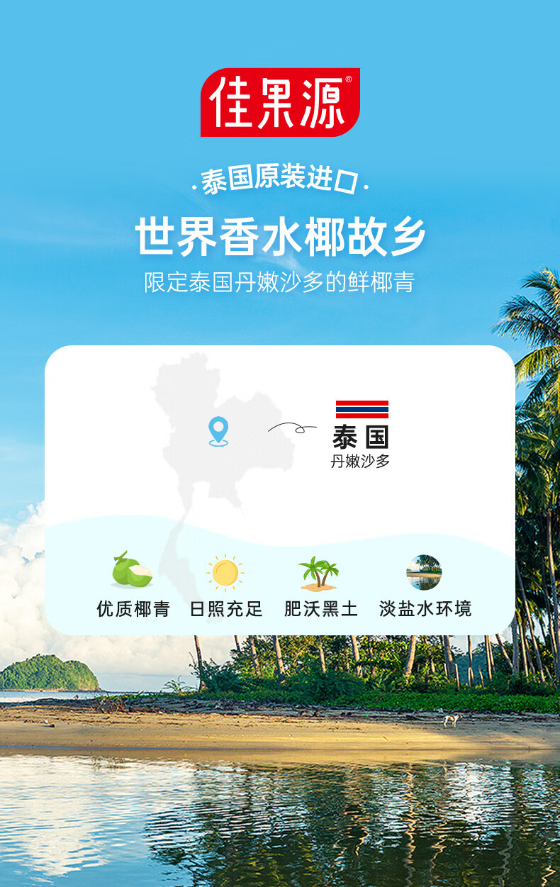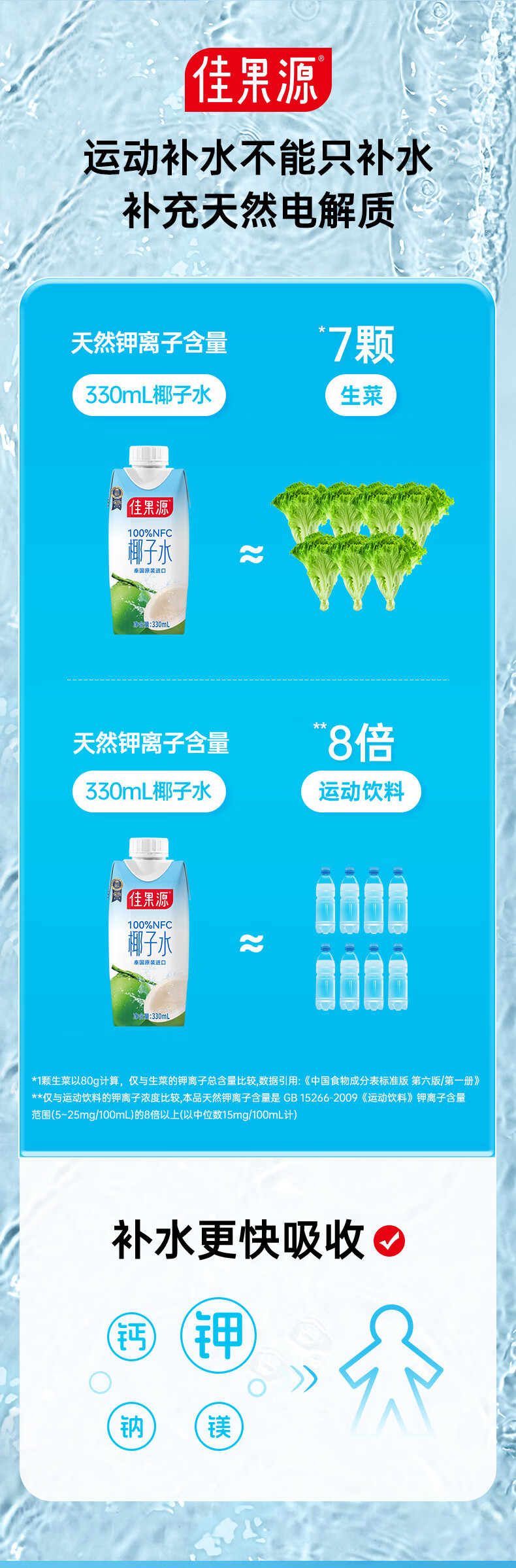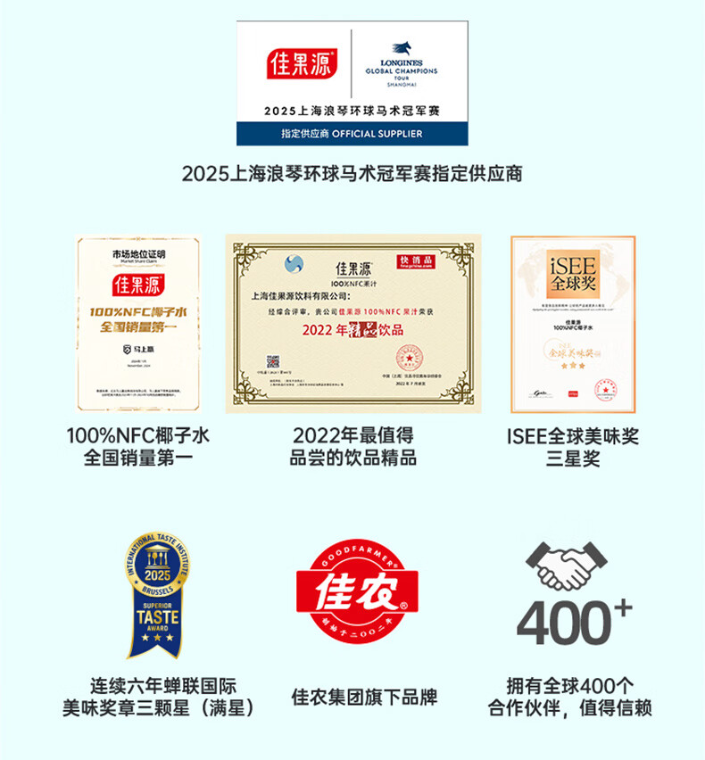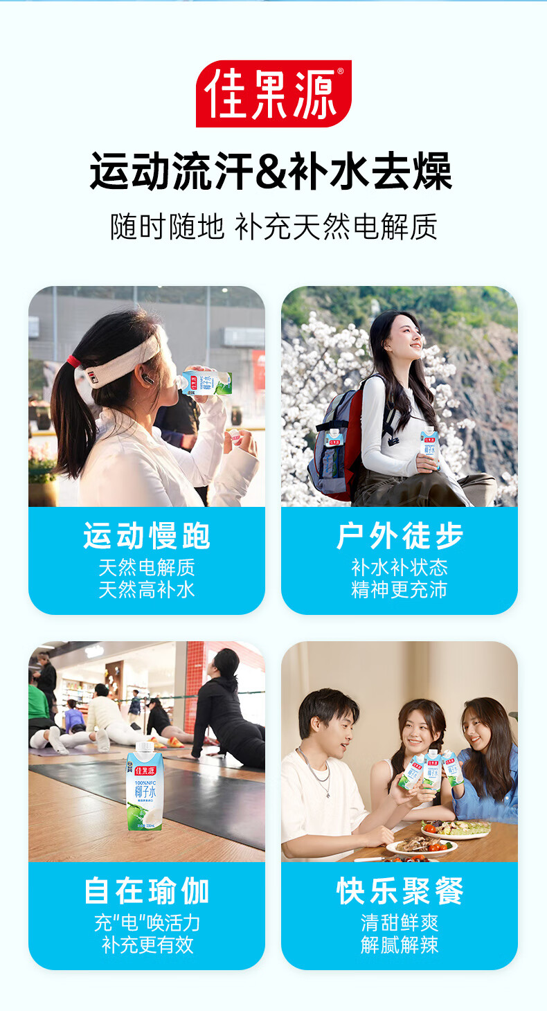佳果源佳农旗下100%NFC椰子水330ml×12瓶 电解质饮料泰国进口 年货送礼