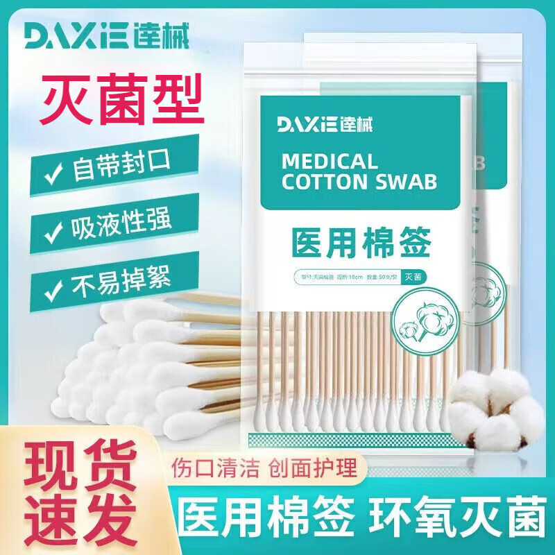 无菌一次性医用棉花头棉签单头便捷伤口清洁消毒家用掏耳棉棒 10cm医用棉签(50支/包)
