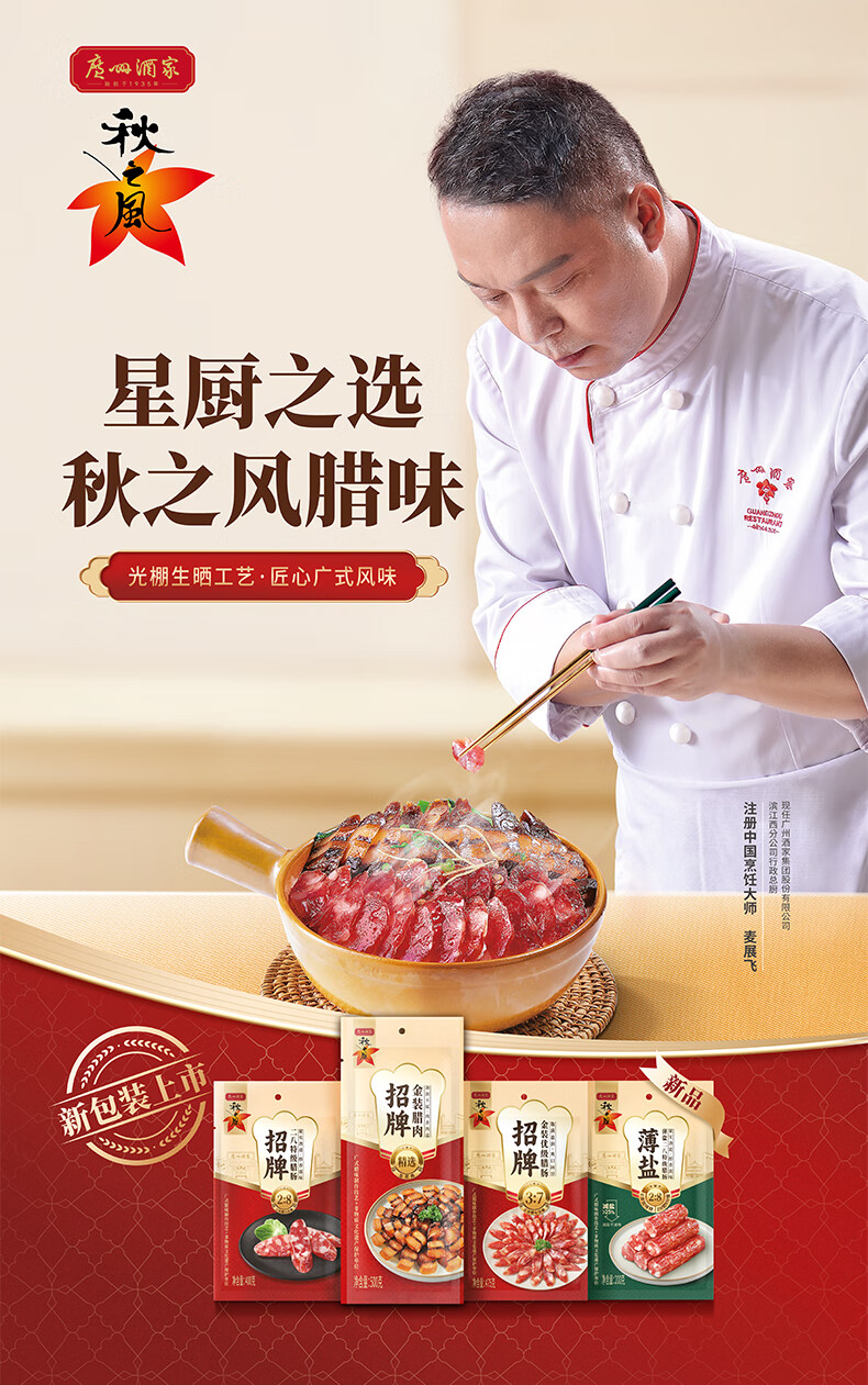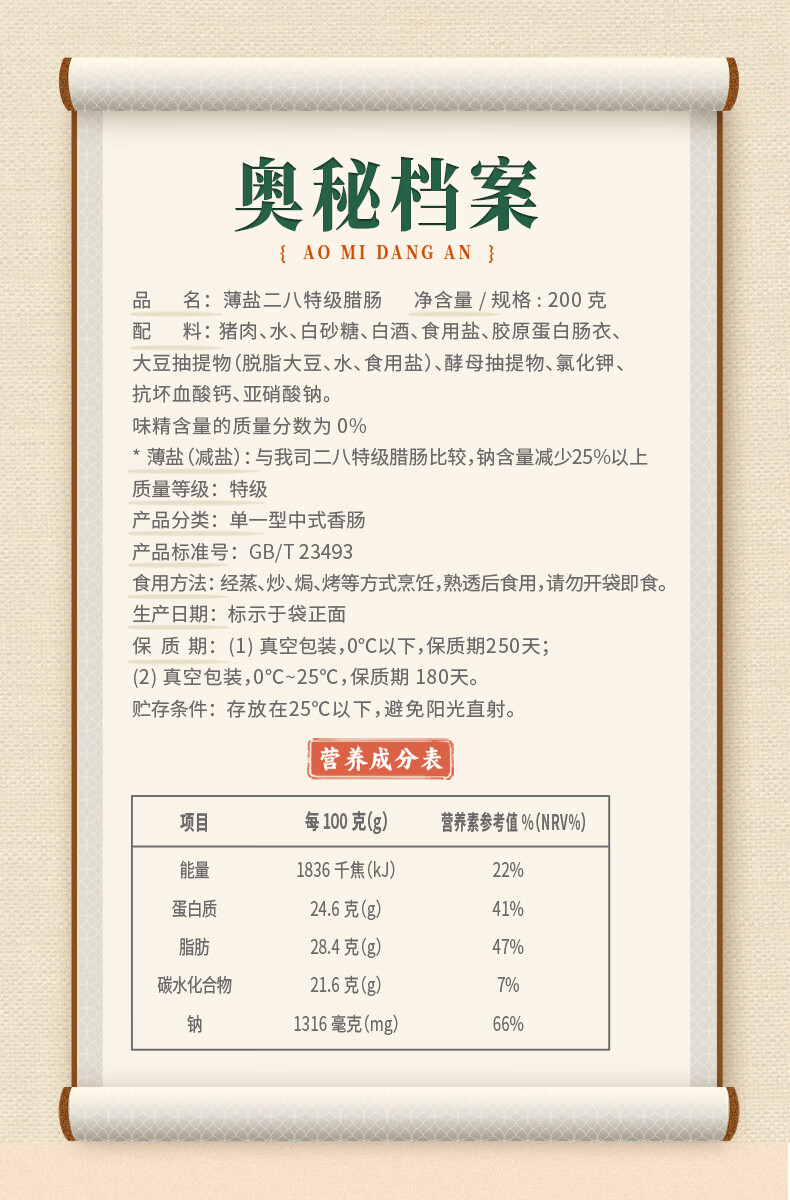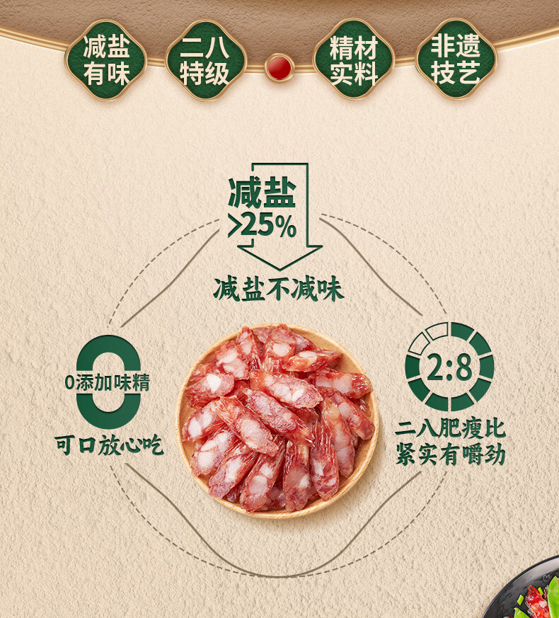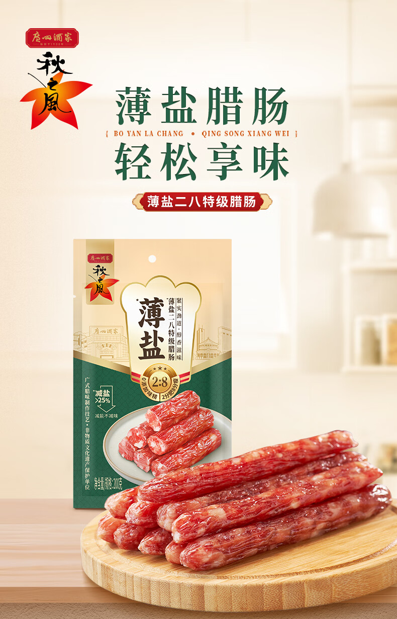 广州酒家薄盐二八特级腊肠200g 广式特产香肠减盐腊味煲仔饭团购年货送礼
