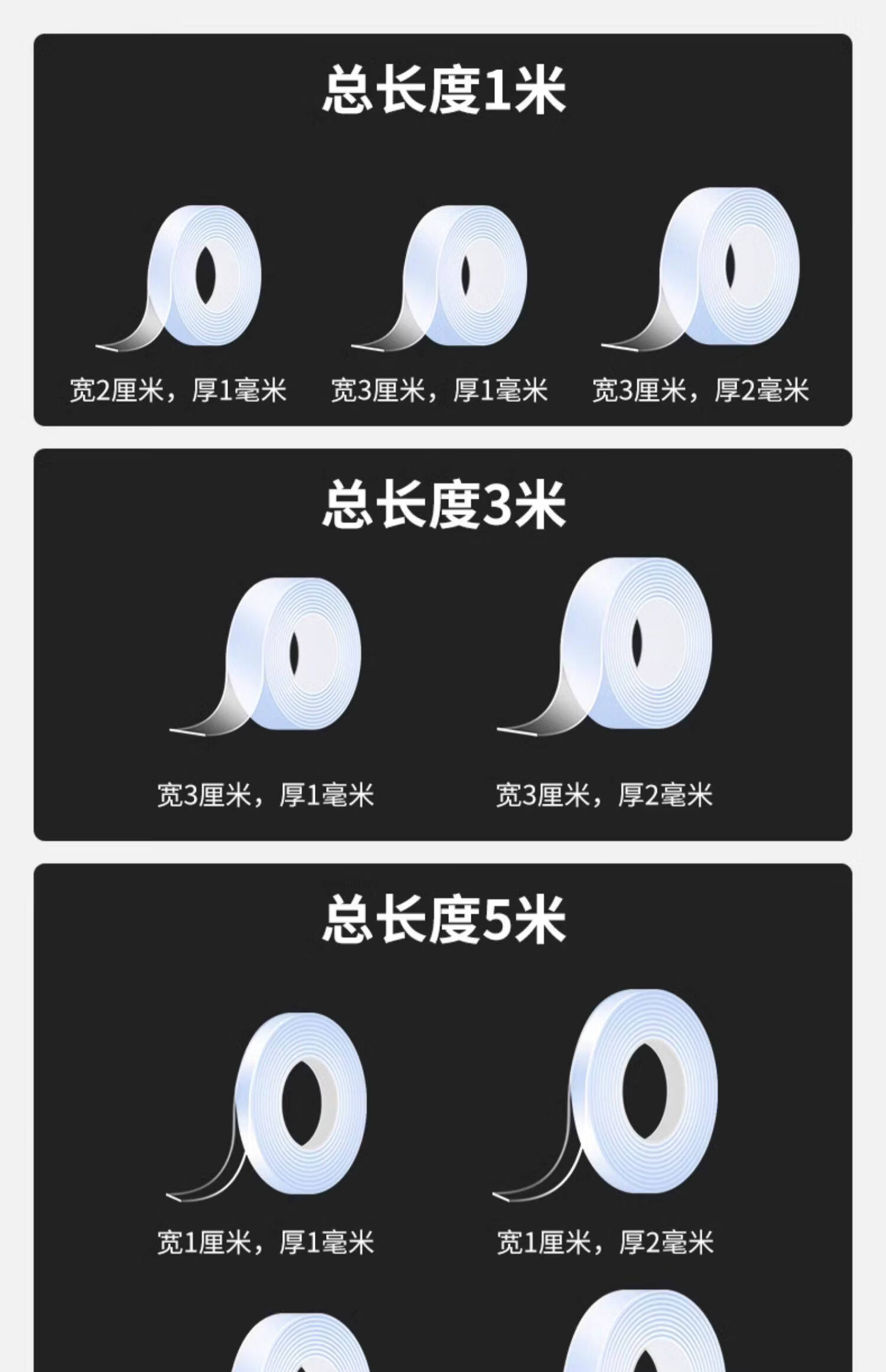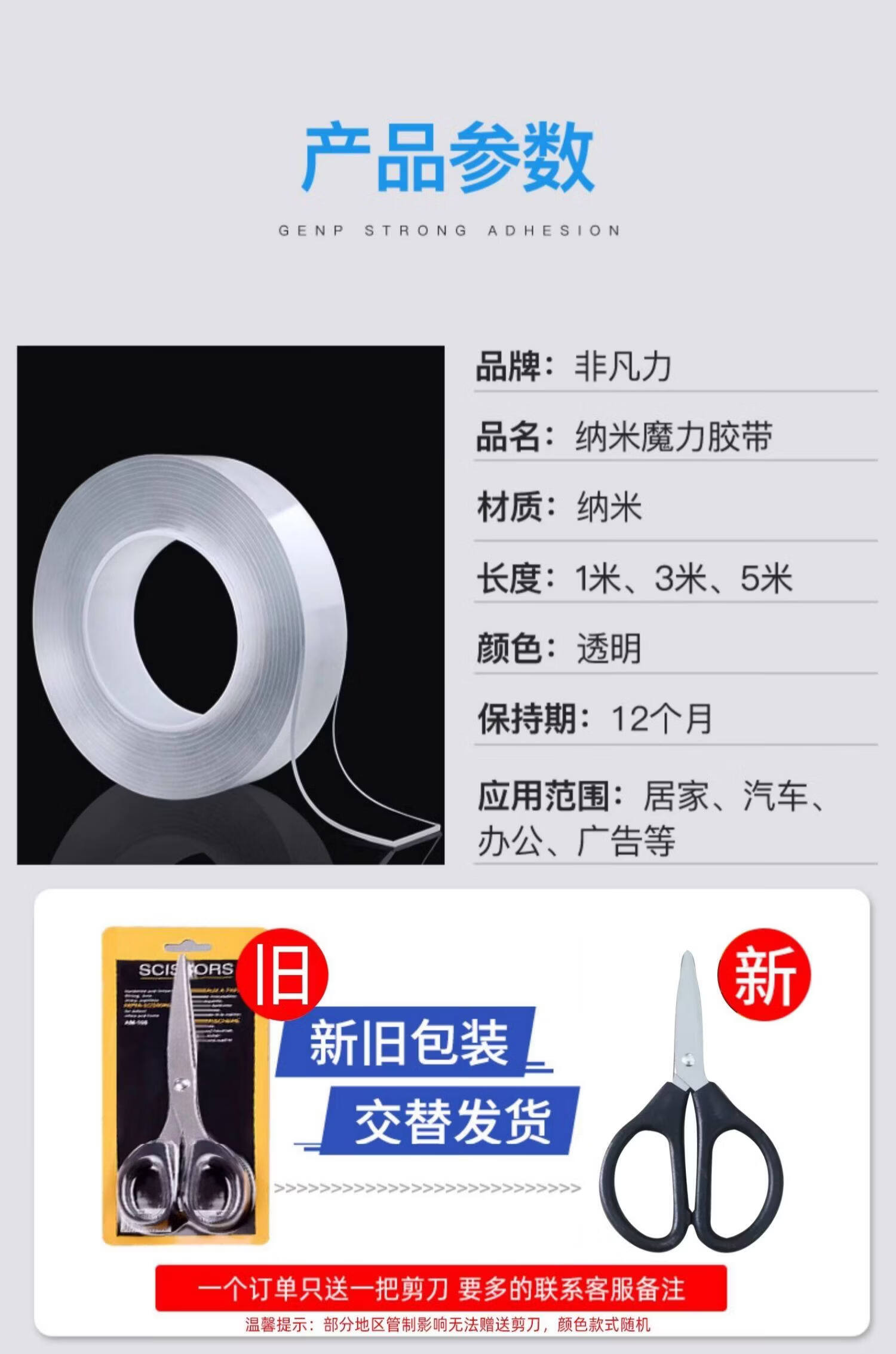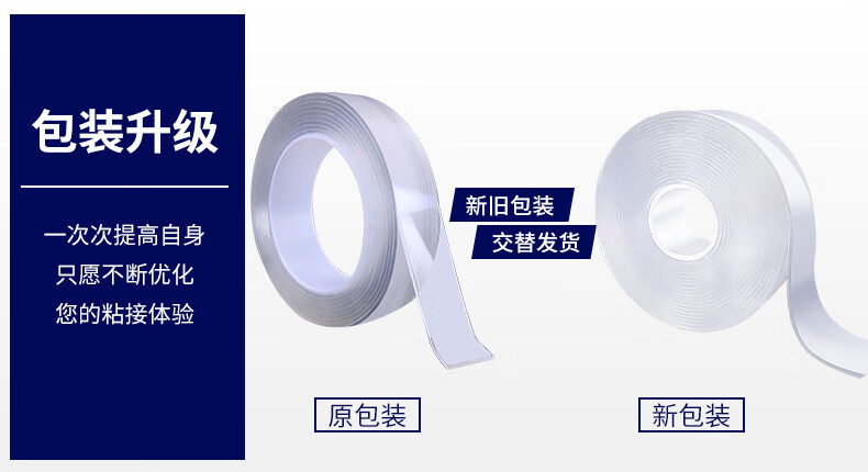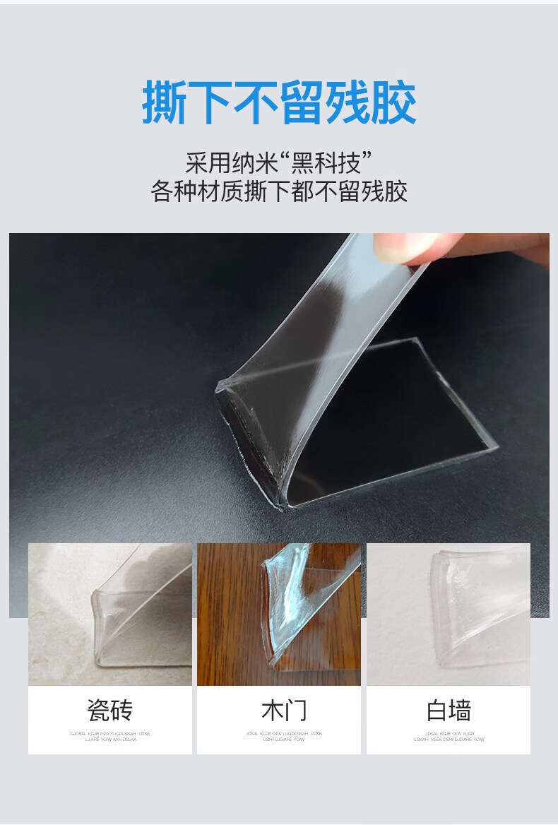 非凡力透明双面胶固定墙面超强防水车用粘胶无痕胶带魔力贴强力双面不留痕胶贴胶布 【买1送1】长1米*宽3cm*厚2mm+送剪刀 无规格