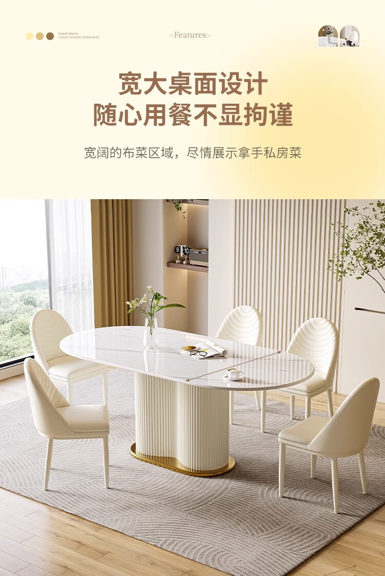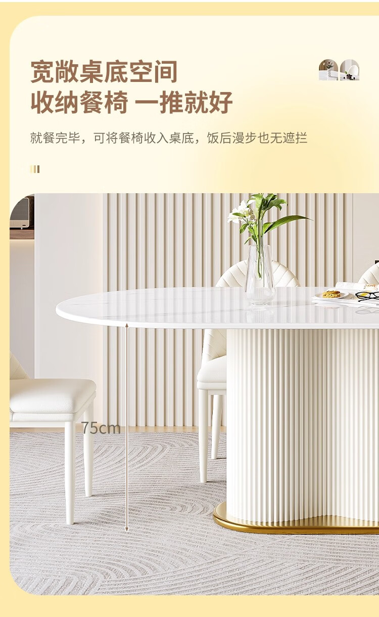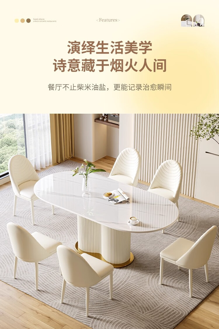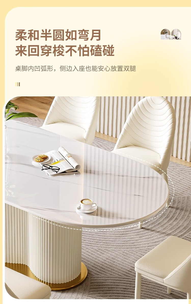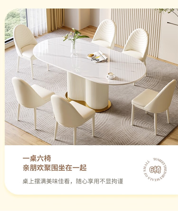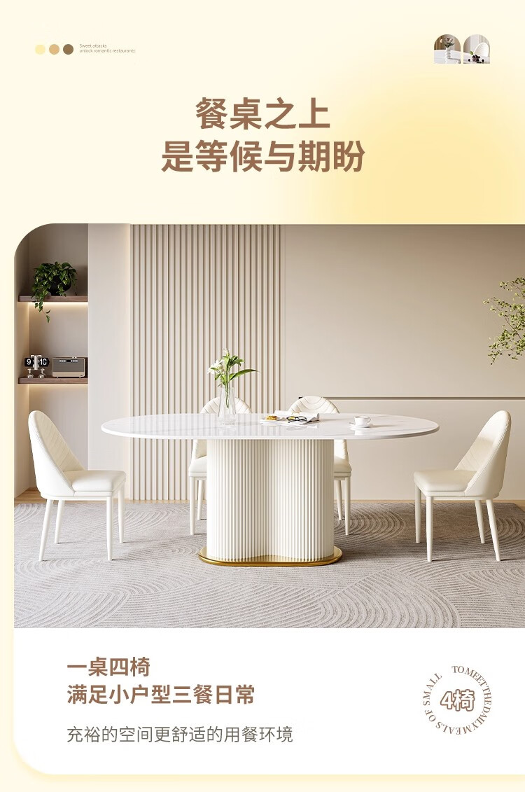 紫文轩奶油风岩板餐桌椅组合小户型家用现代简约轻奢岛台白色椭圆形饭桌 【升级加厚抗菌岩板】单桌 120*70*75cm