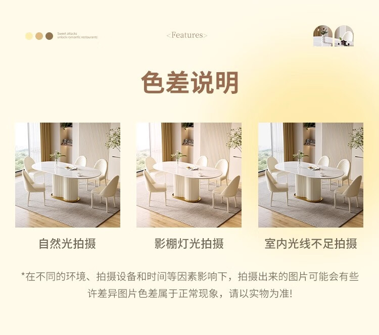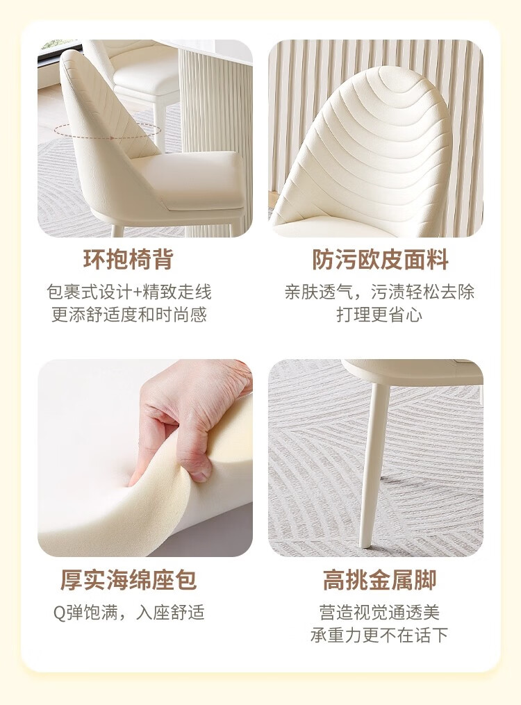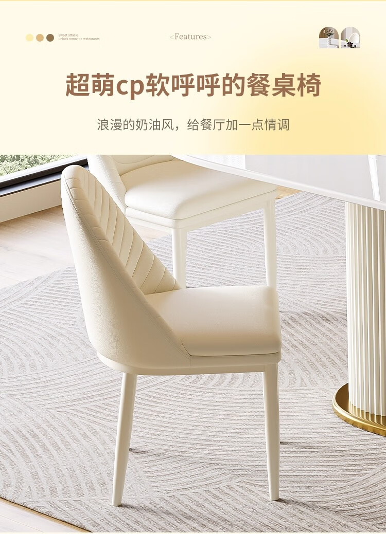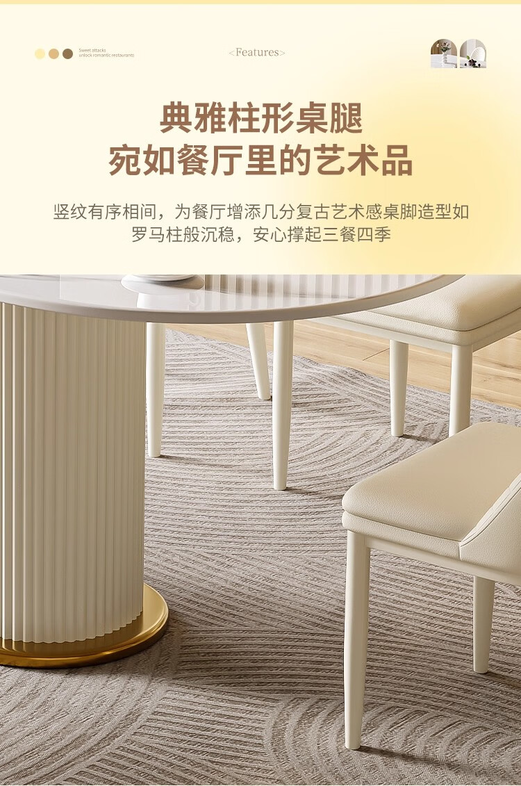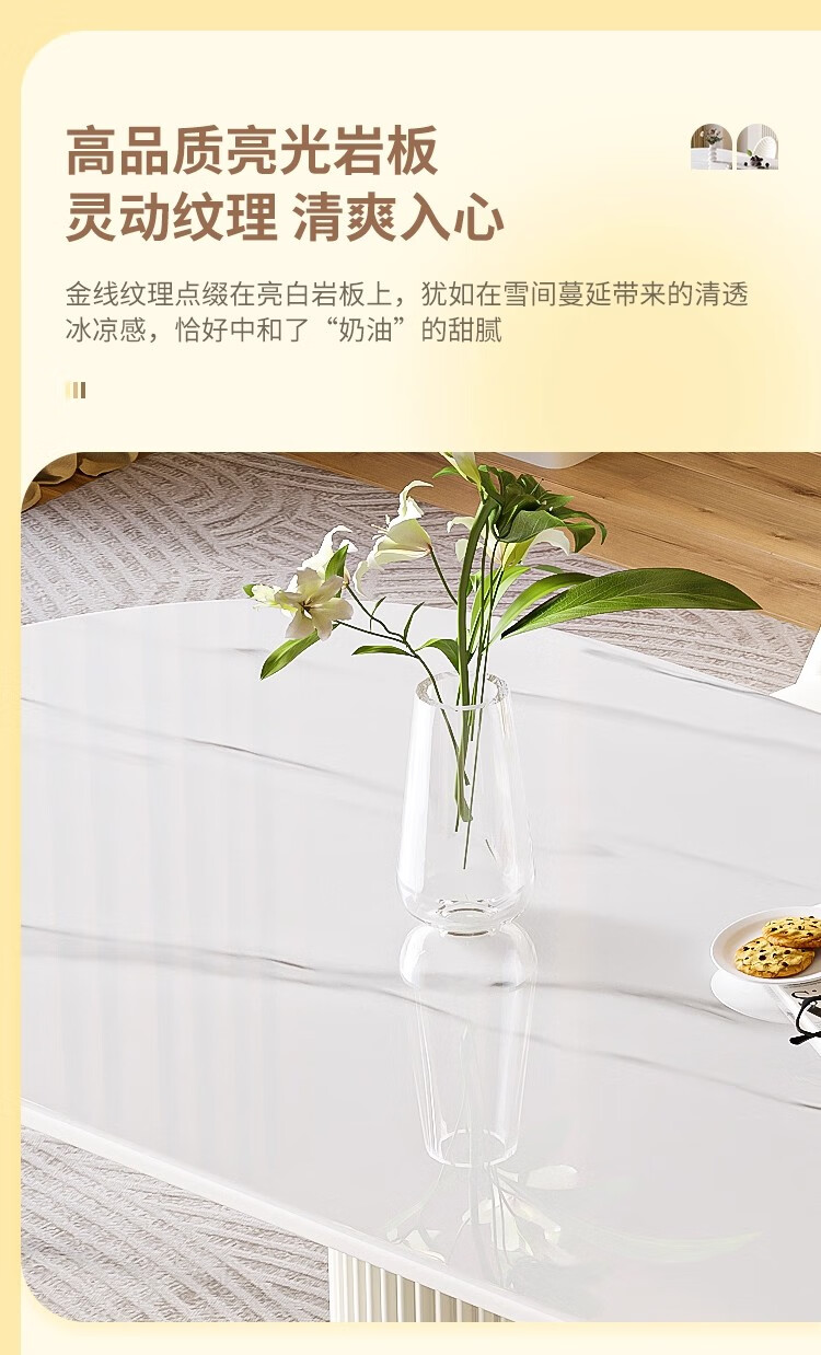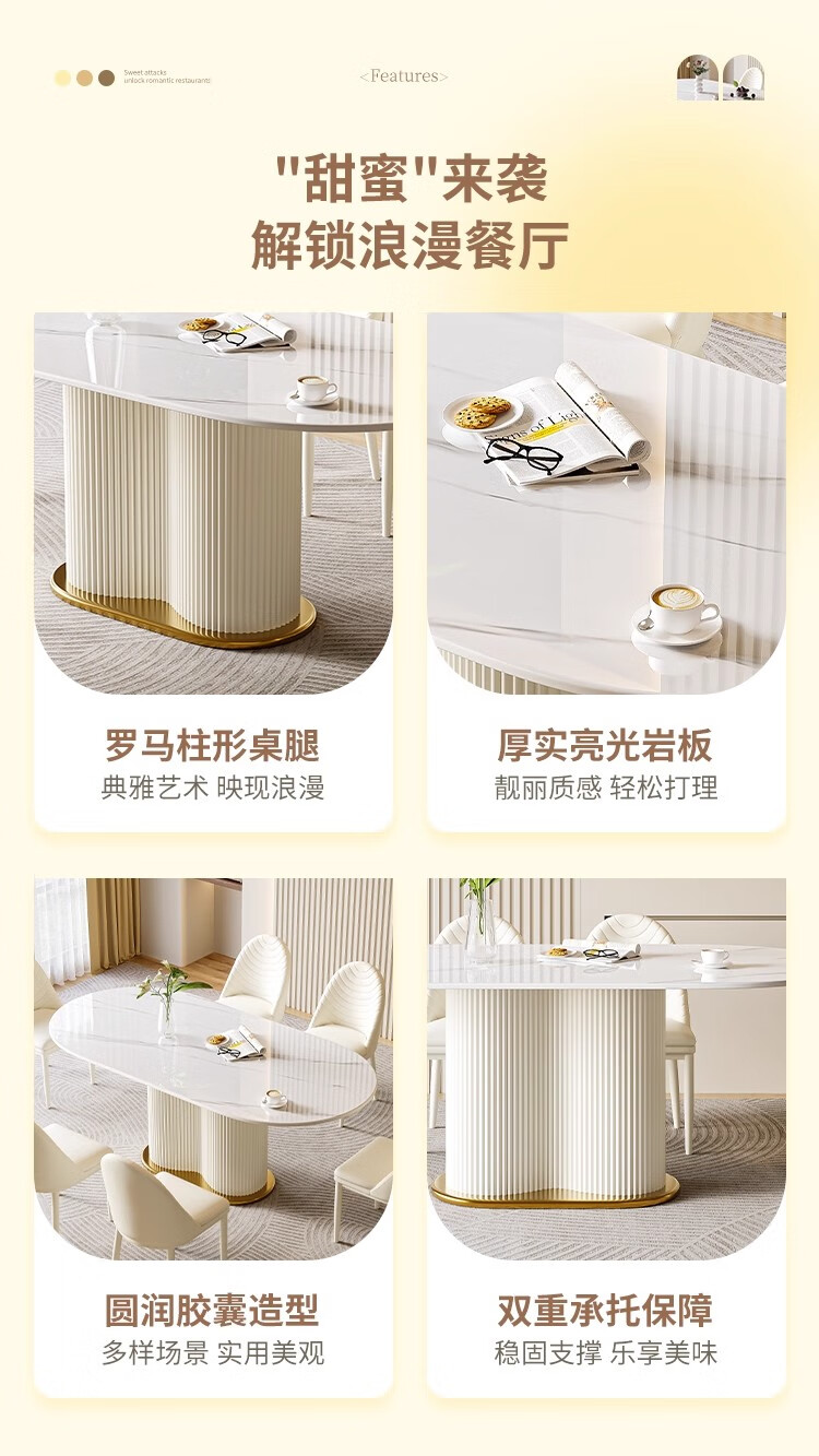 紫文轩奶油风岩板餐桌椅组合小户型家用现代简约轻奢岛台白色椭圆形饭桌 【升级加厚抗菌岩板】单桌 120*70*75cm