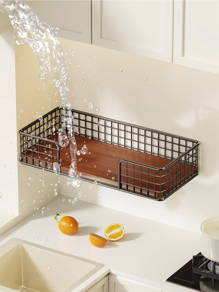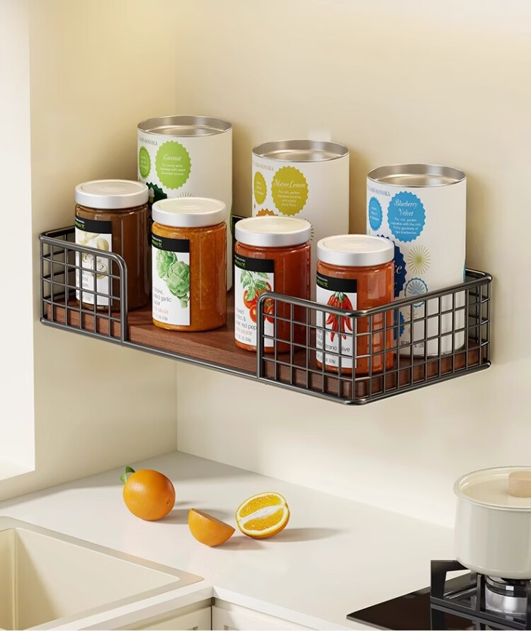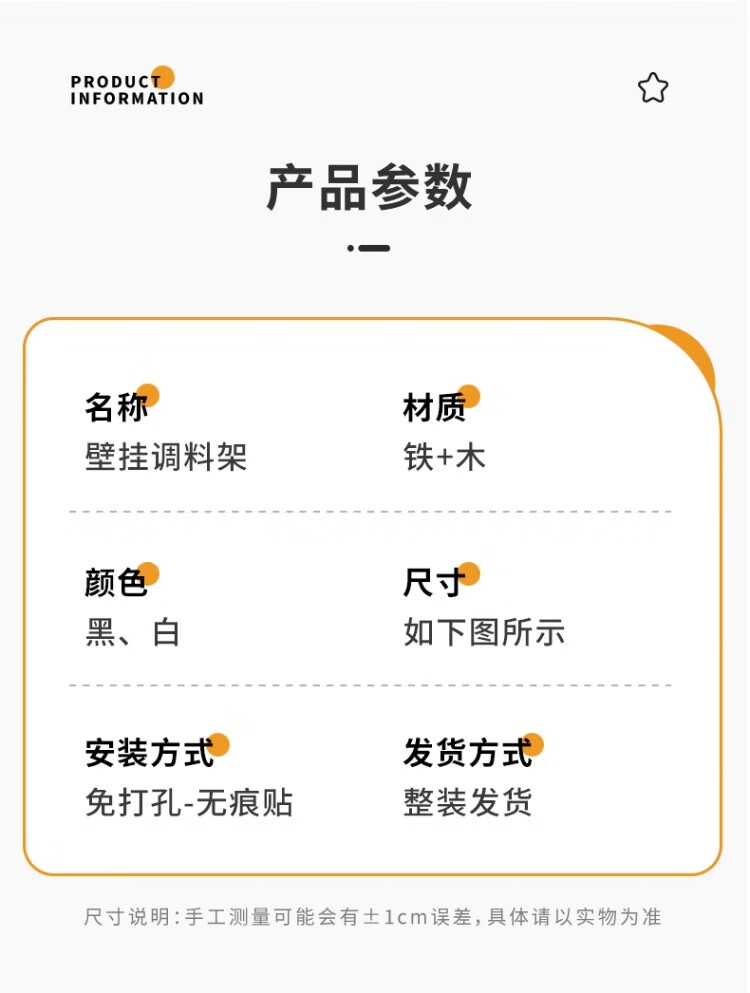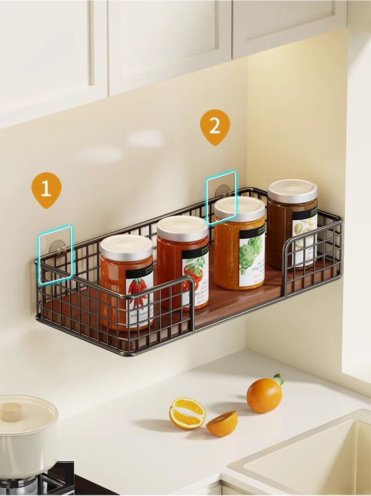 尔思家墙面调料架免打孔壁挂调味品多功能收纳架子家用墙面调料挂架子 黑色胡桃木-中号