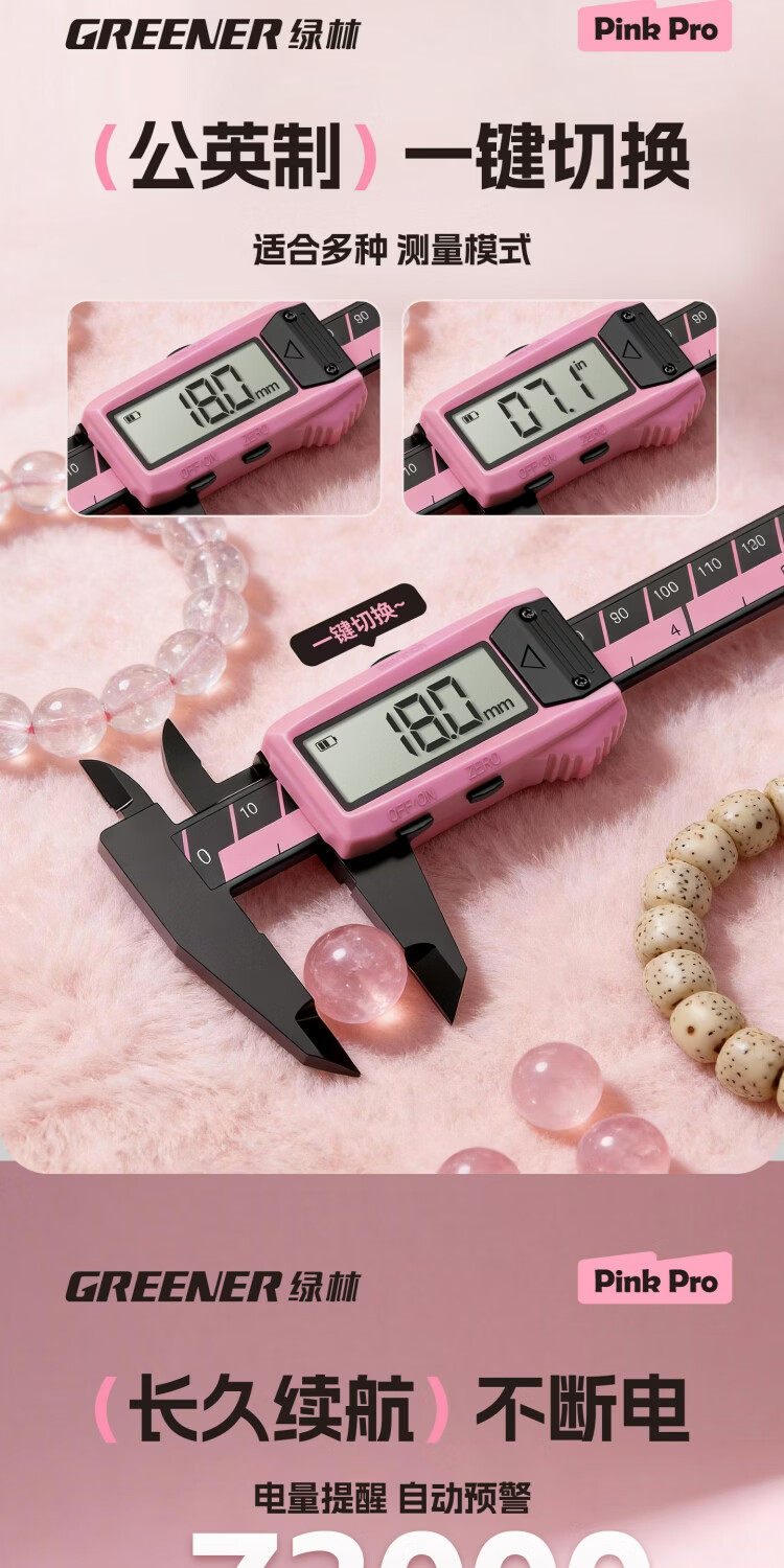 绿林卡尺高精度游标数显珠宝专用电子文玩小型工业精密量手镯圈口 【玉凝脂粉】文玩卡尺150mm