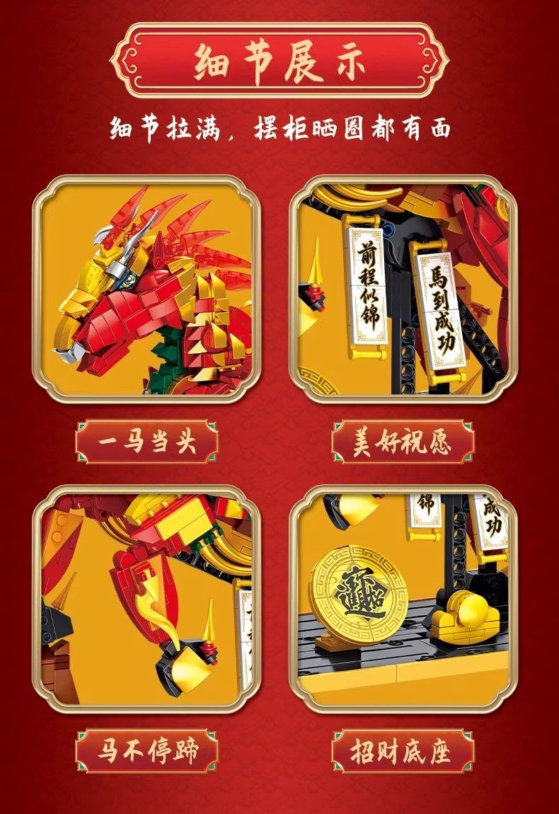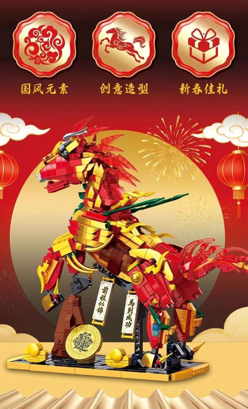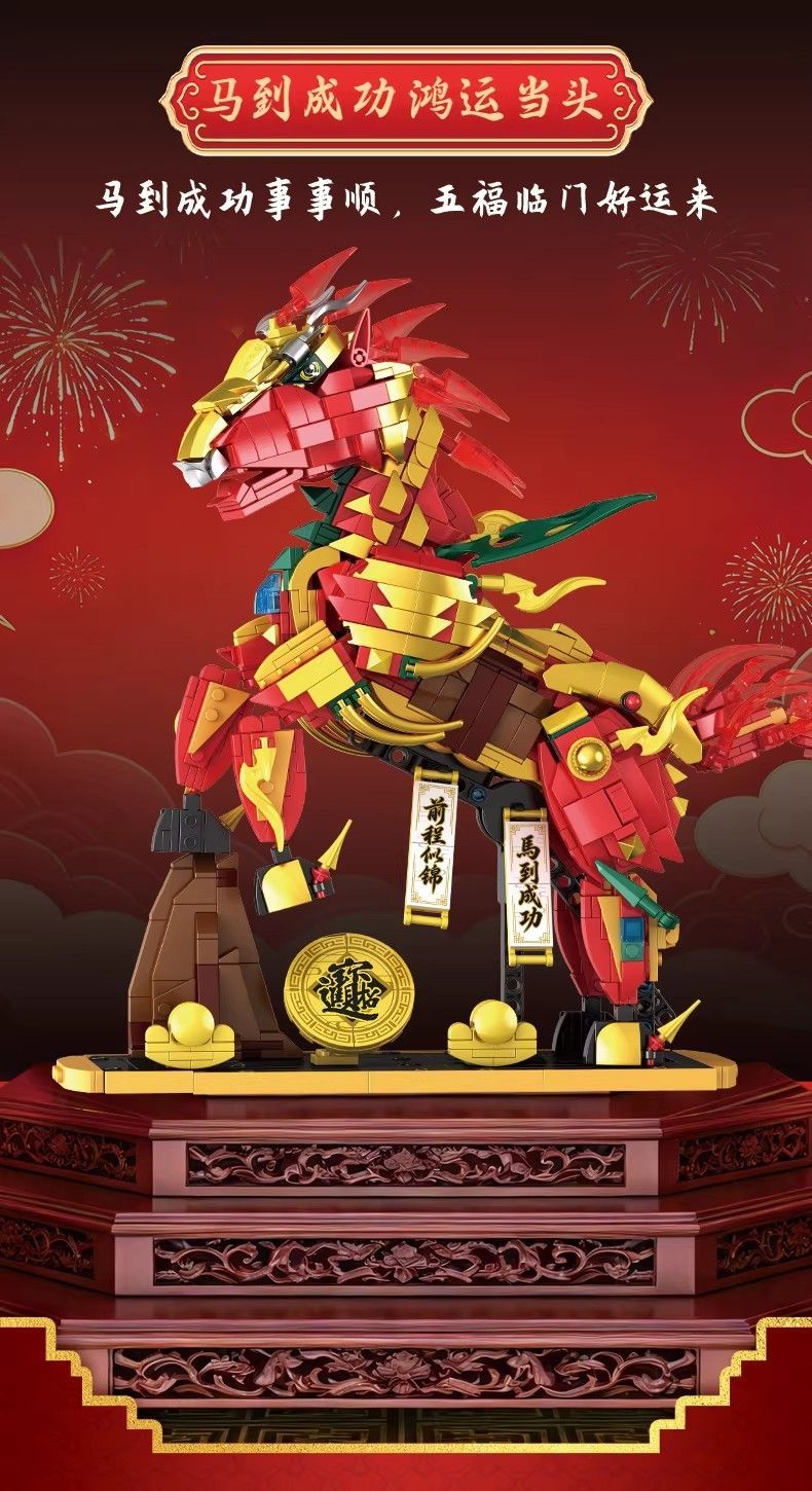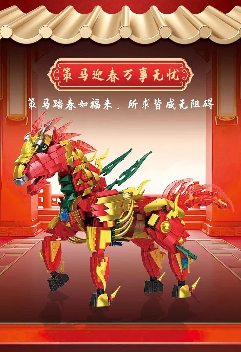赟娅积木马年国潮中国风儿童3-6岁男孩6-12岁玩具生日新年礼物 新春吉祥物【金鞍瑞驹】1469PCS