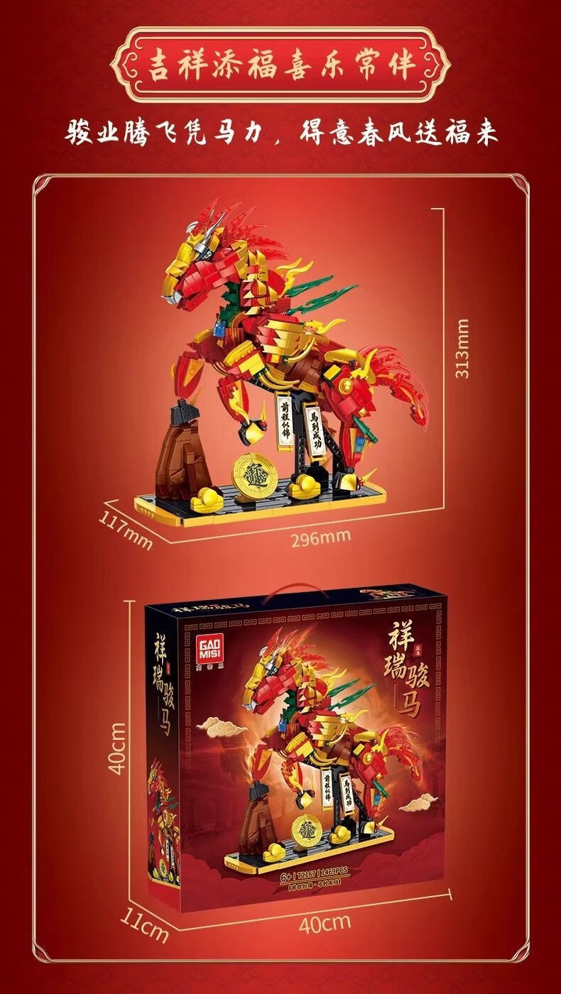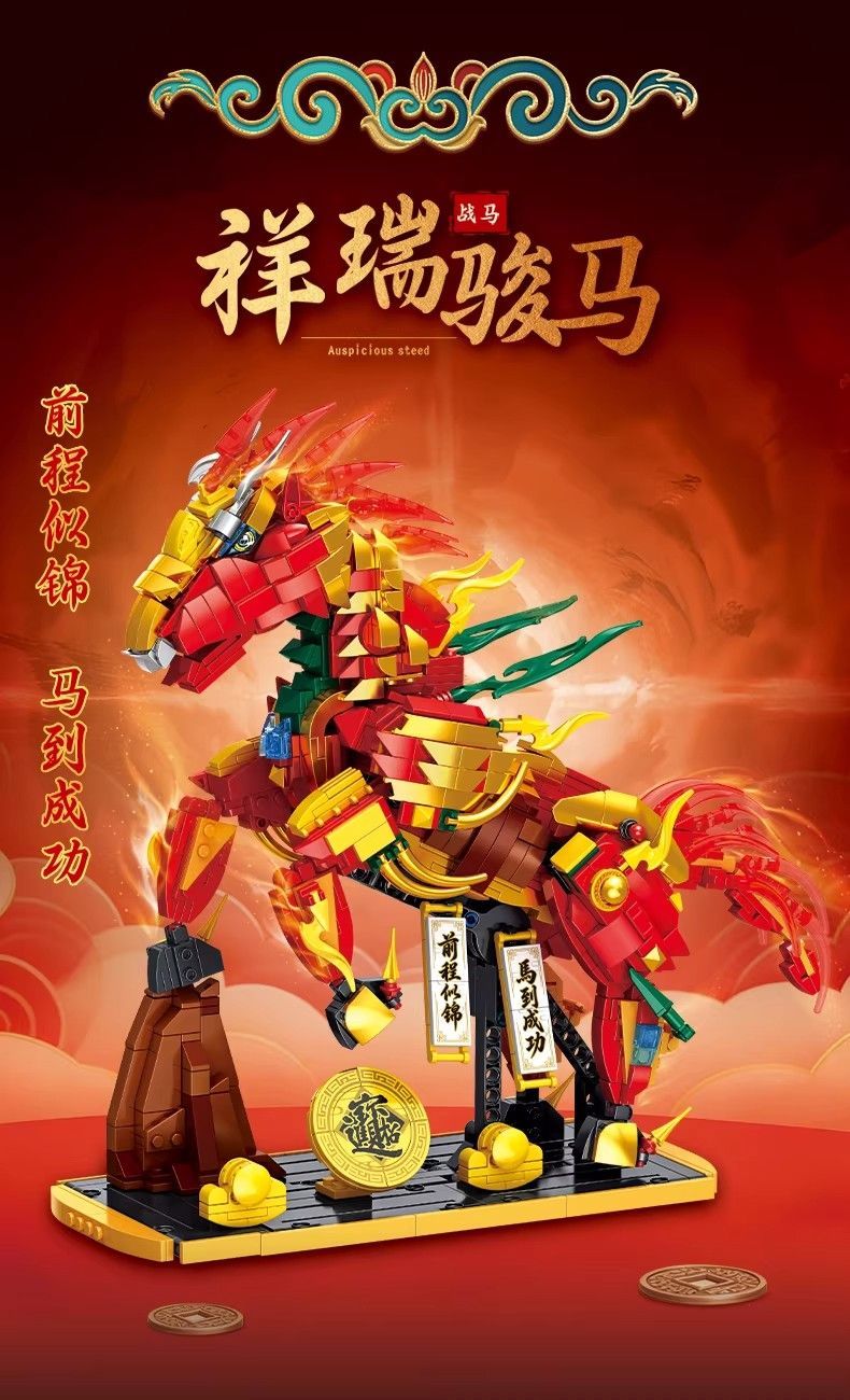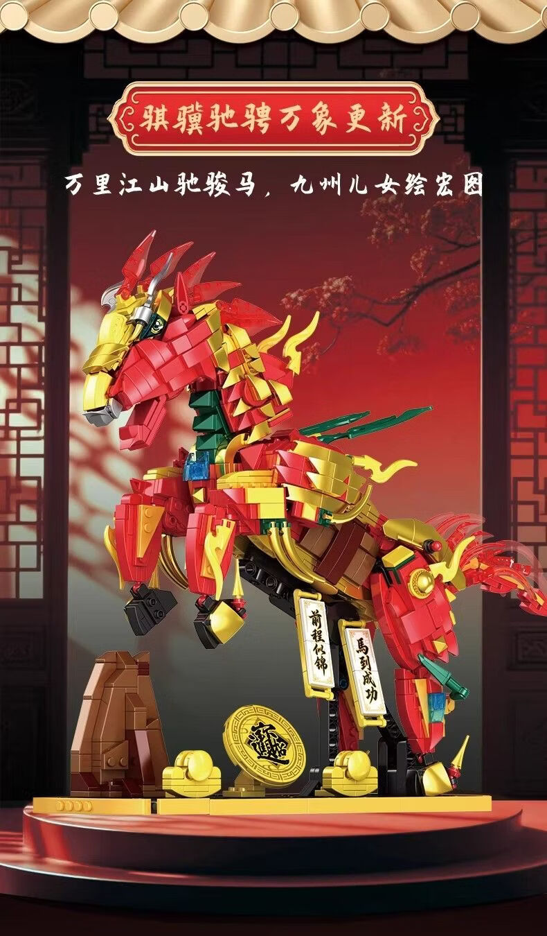 赟娅积木马年国潮中国风儿童3-6岁男孩6-12岁玩具生日新年礼物 新春吉祥物【金鞍瑞驹】1469PCS