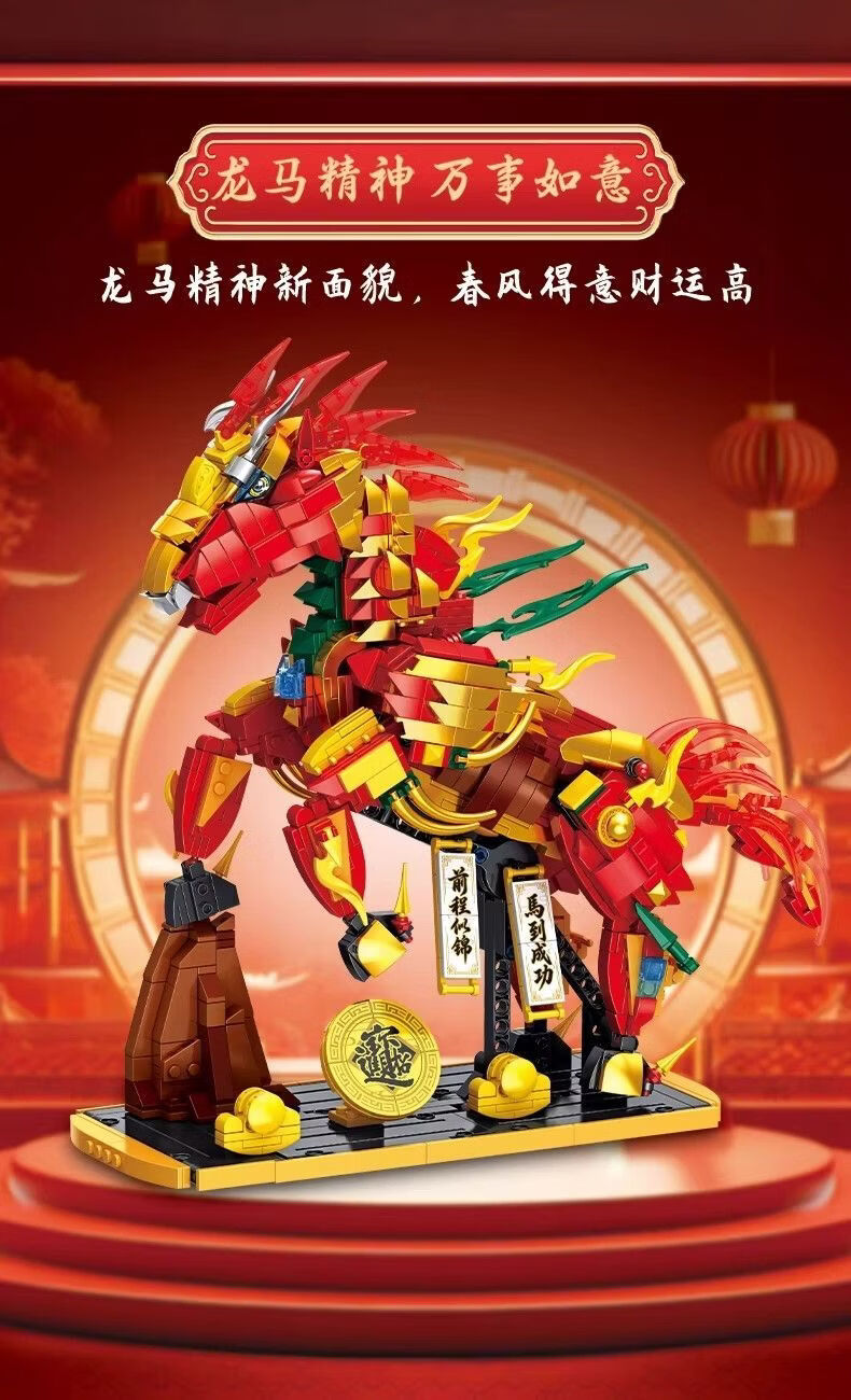 KEPIN马积木摆件小颗粒拼装模型国潮男女孩儿童马年吉祥物新年礼物玩具 火焰龙