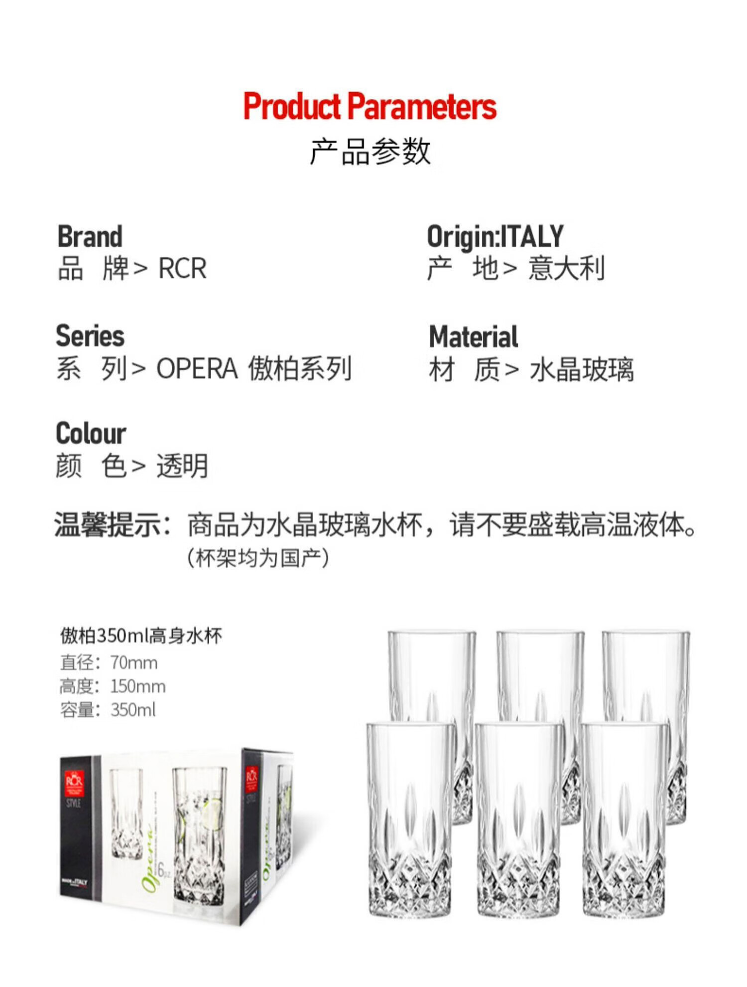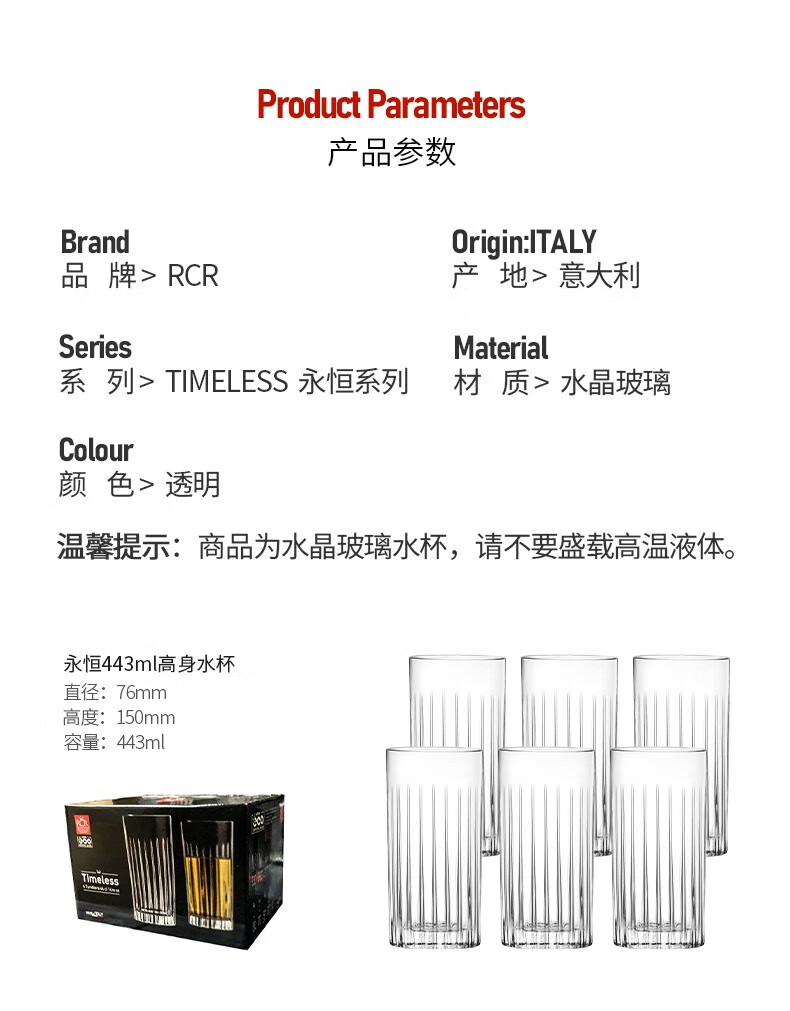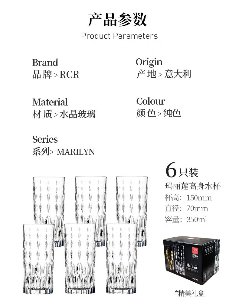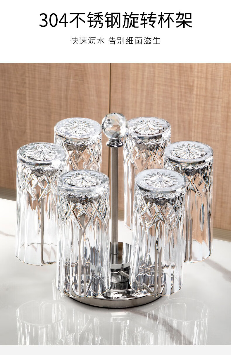 RCR进口水晶玻璃水杯喝水果汁牛奶杯泡茶杯家用套装啤酒杯乔迁礼物 【旋转杯架】傲柏玻璃杯 350ml 6只