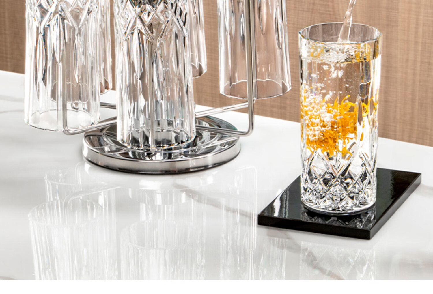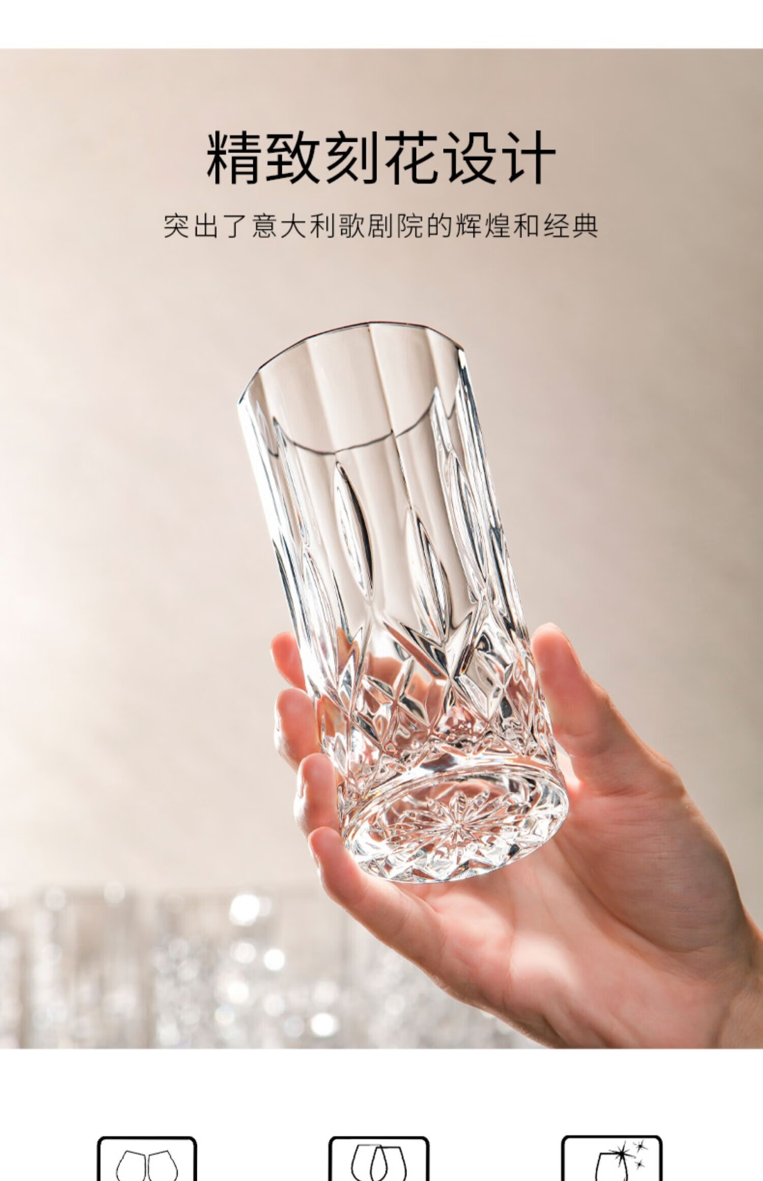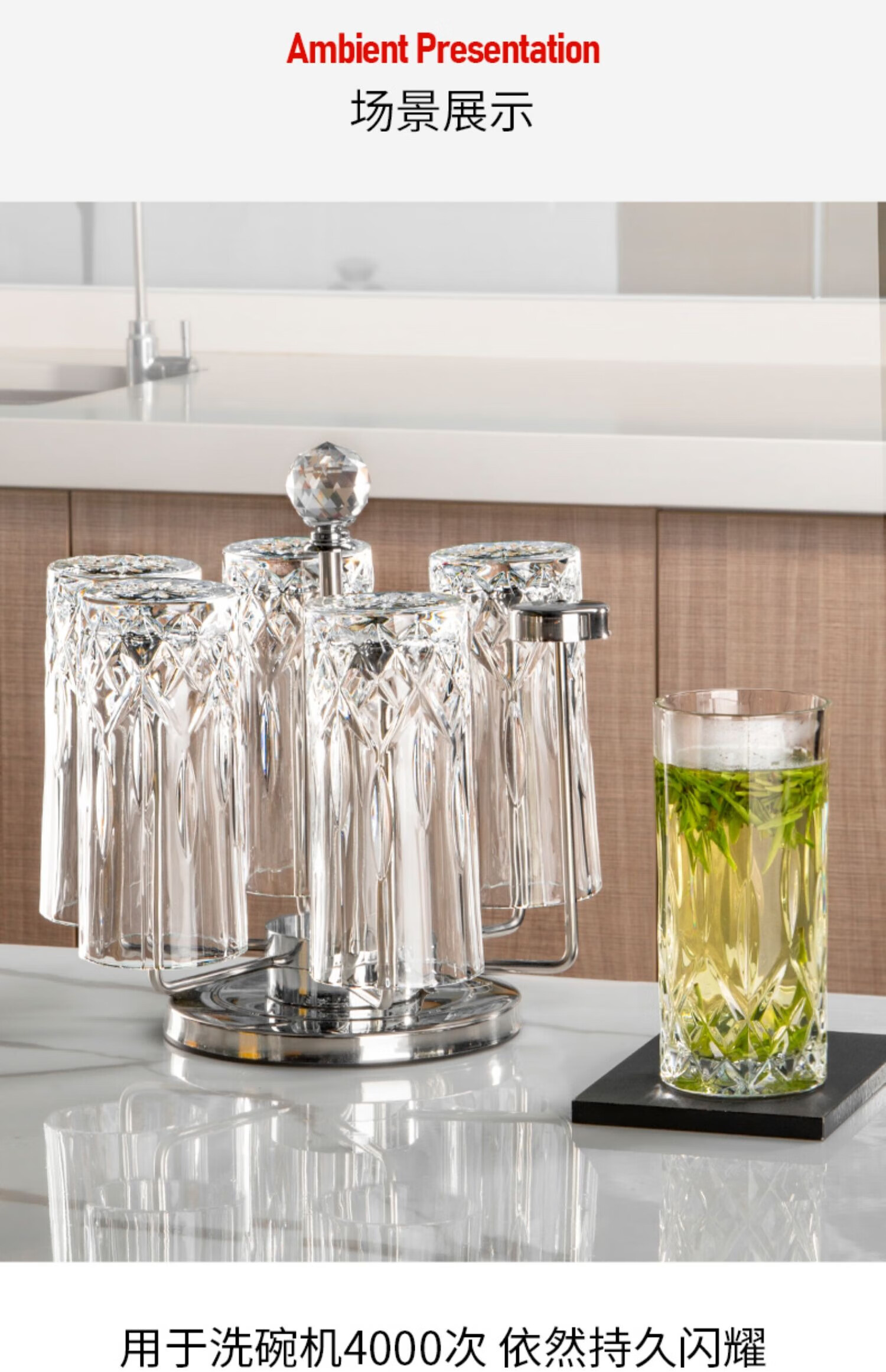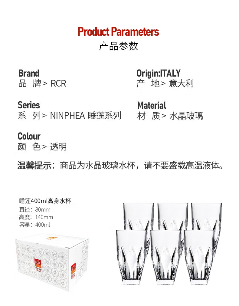 RCR进口水晶玻璃水杯喝水果汁牛奶杯泡茶杯家用套装啤酒杯乔迁礼物 【旋转杯架】傲柏玻璃杯 350ml 6只