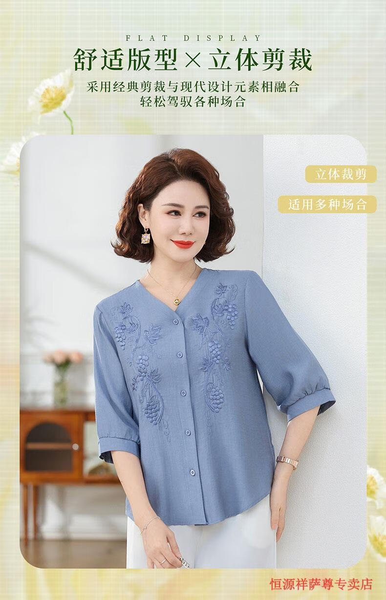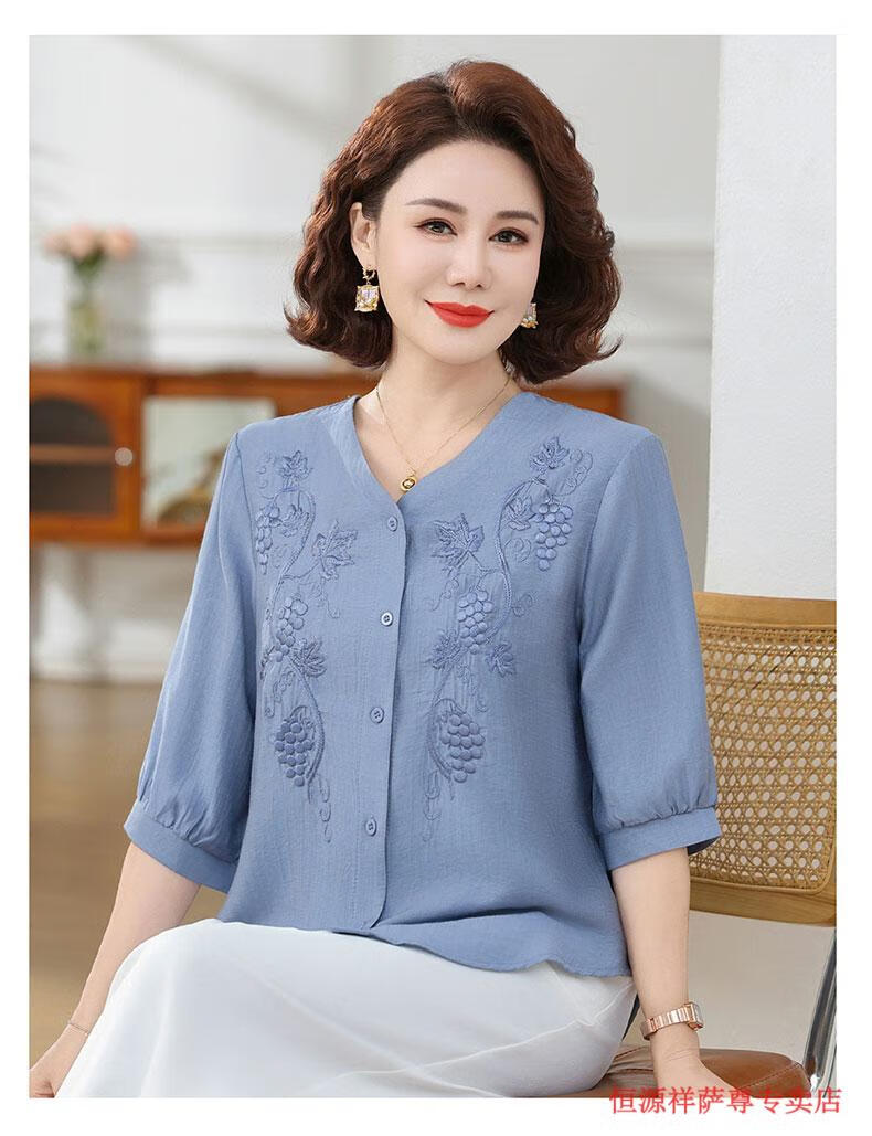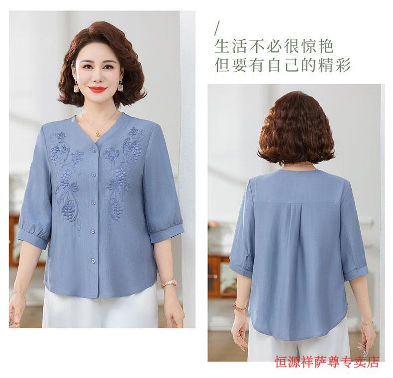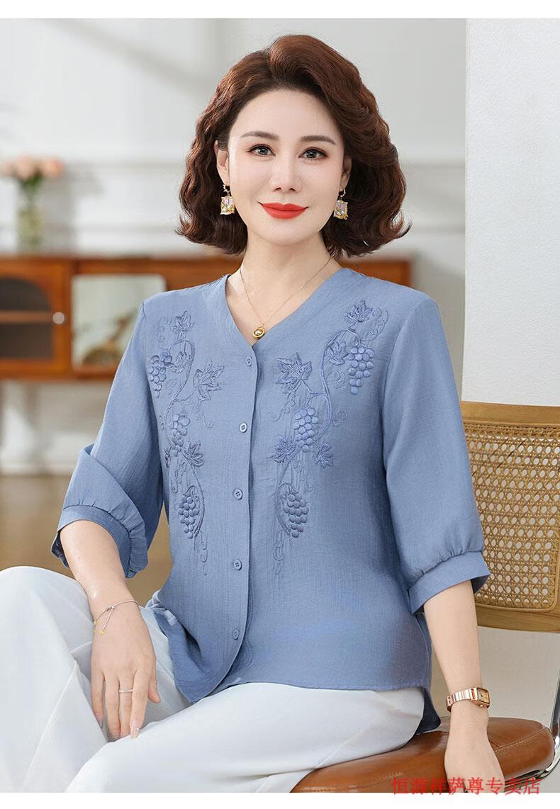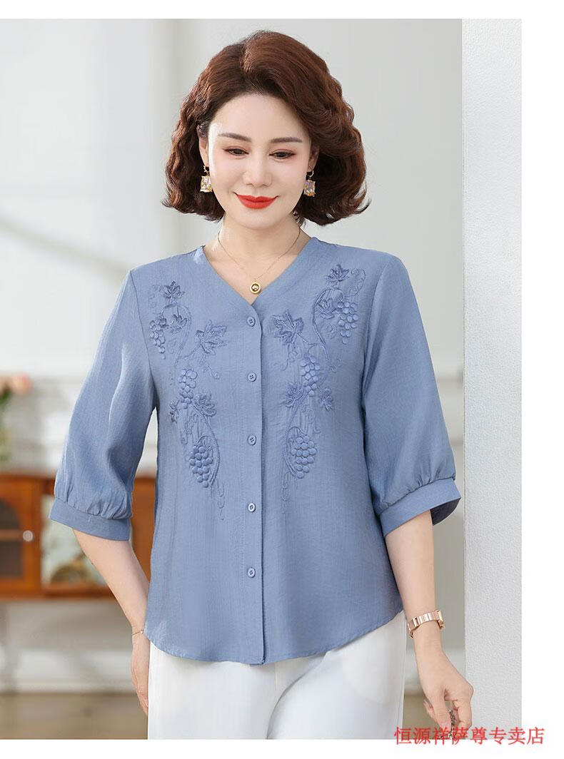 啄木鸟(TUCANO)高端棉麻上衣大尺码女装夏季新款中年老年妈M妈宽松七分袖亚麻衬 粉紫色 XL 建议85-105斤