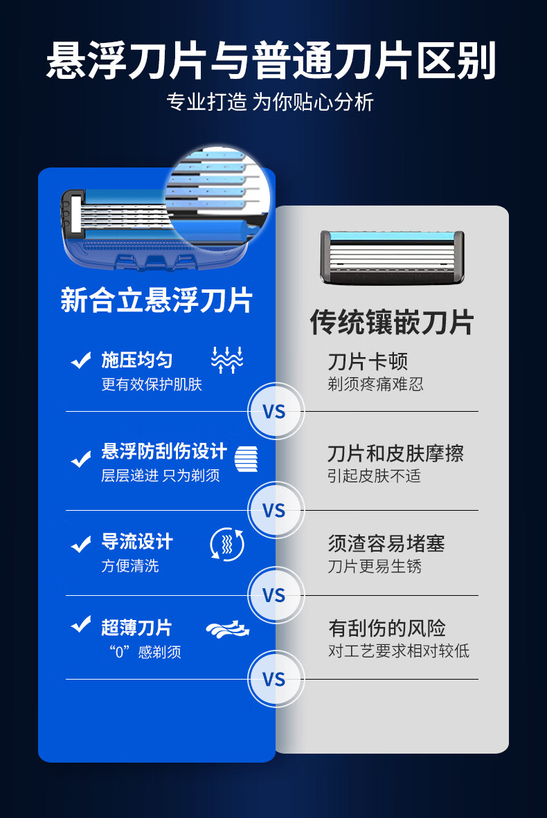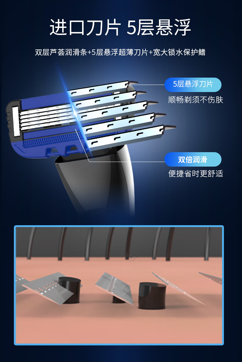 新合立手动剃须刀 5层超薄刀片 防刮伤 双润滑条 刮得干净 新手冲 进口5层刀片9刀头 【顺滑剃须】