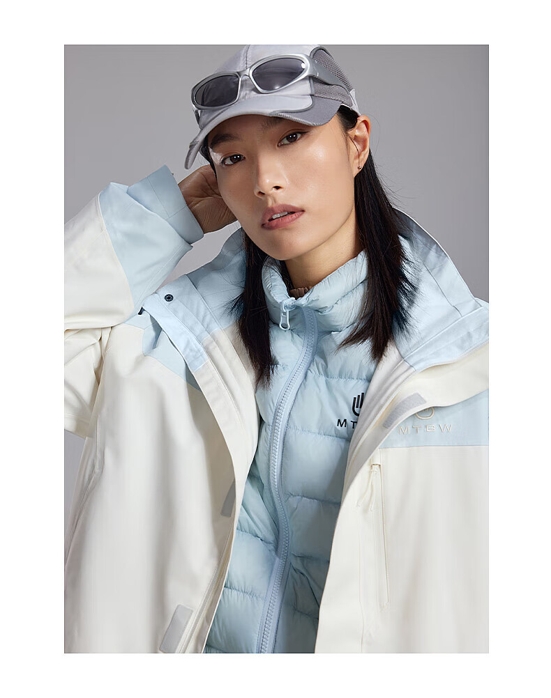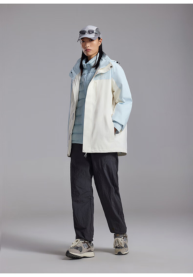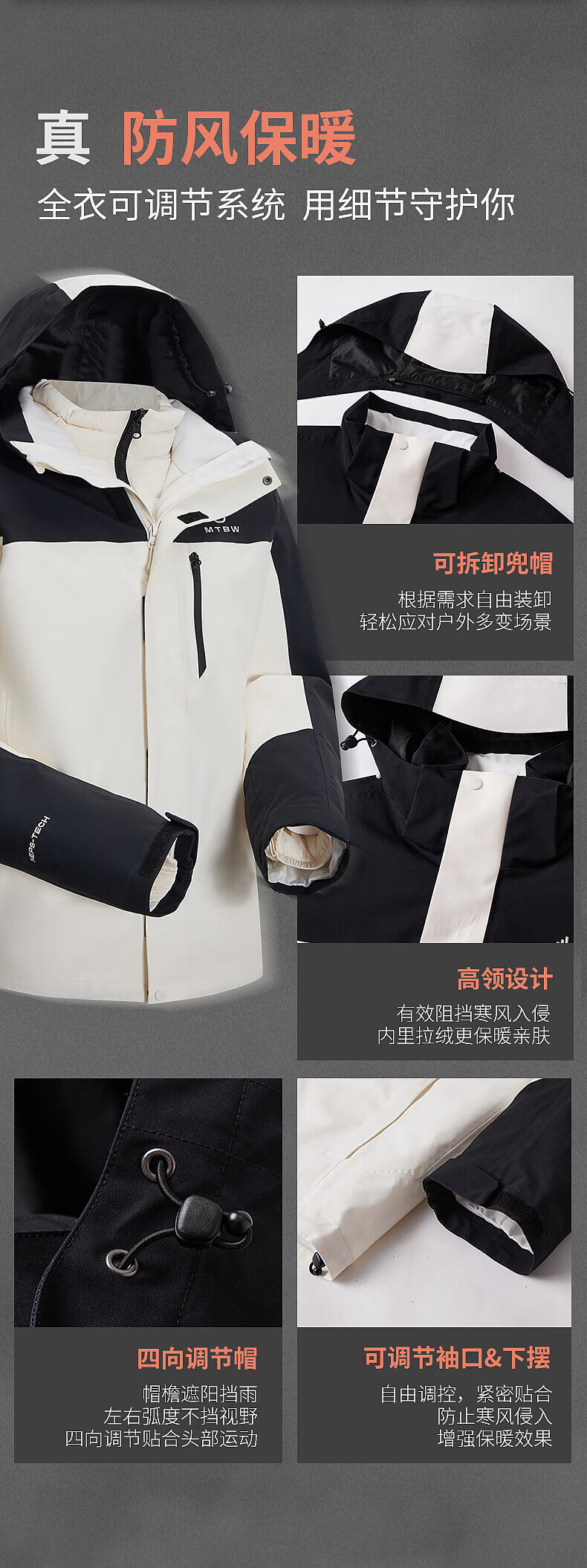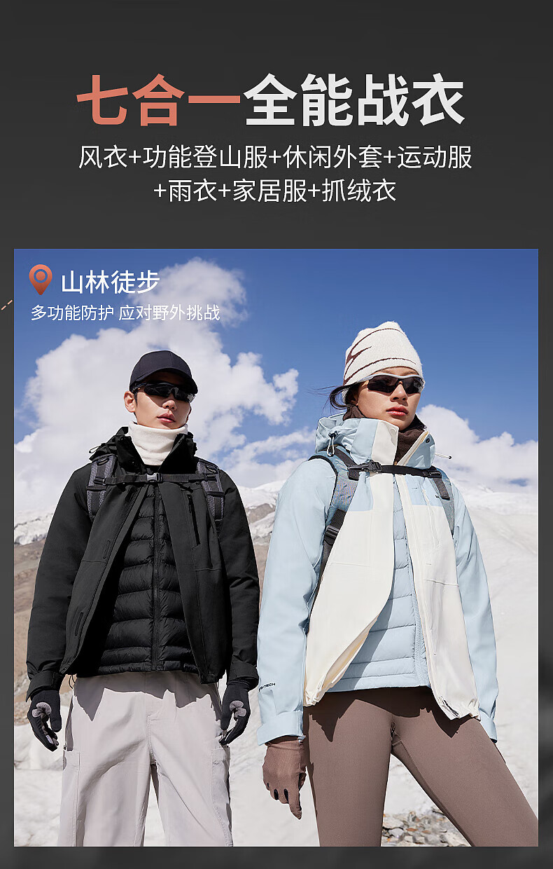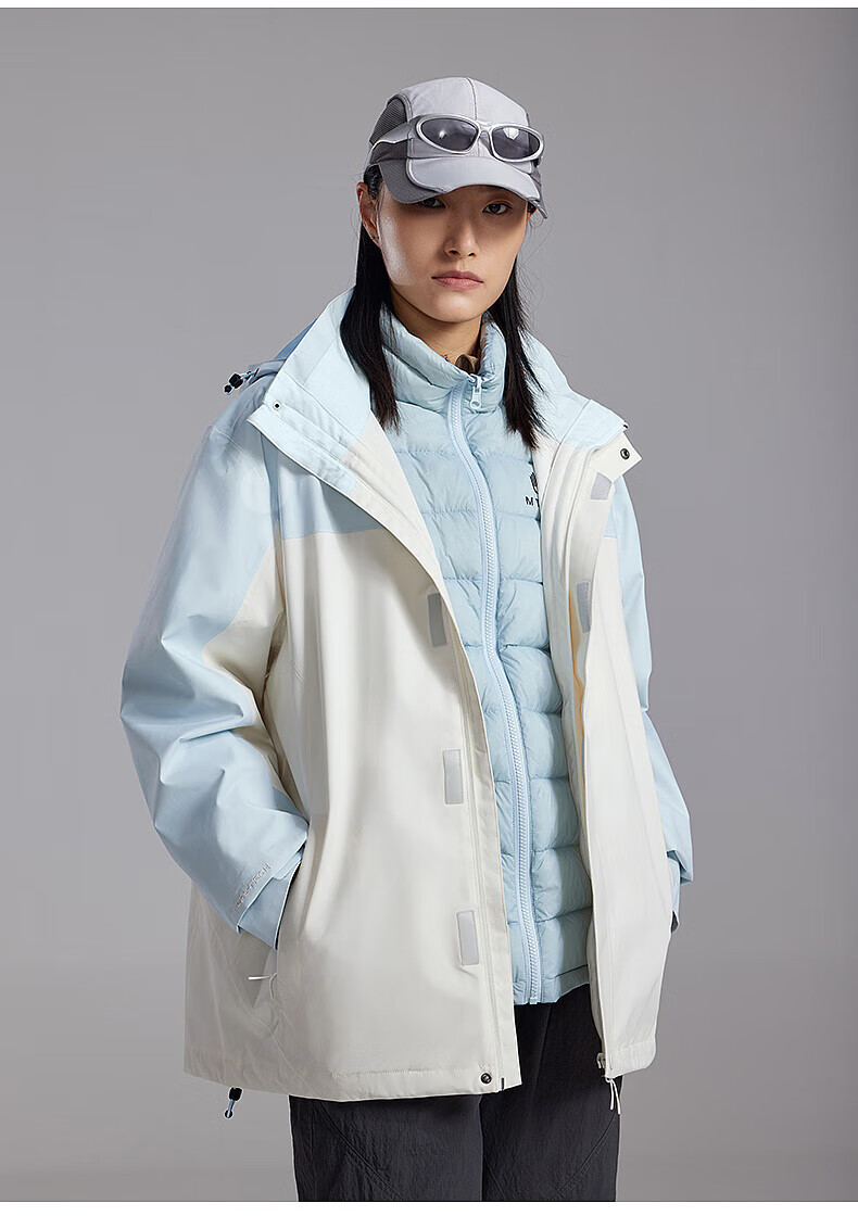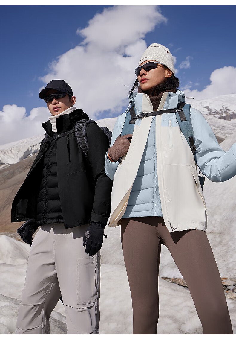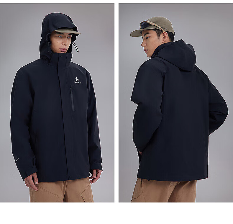 美特斯邦威(Meters Bonwe)男女同款三合一冲锋衣冬季新款羽绒内胆防水防风外套 黑白组 XL 180/100A