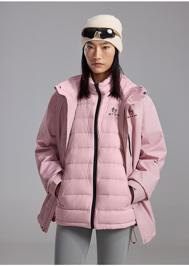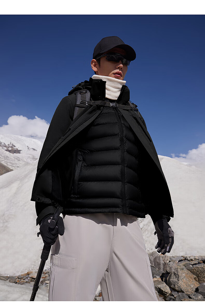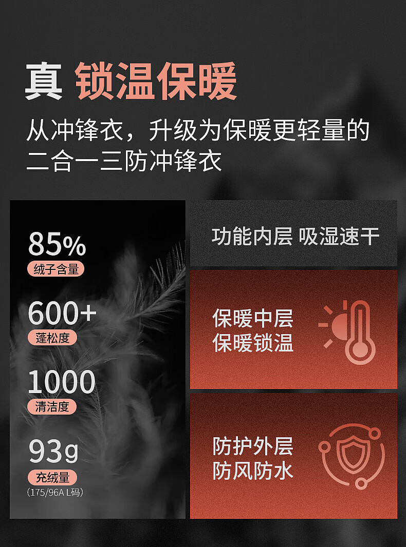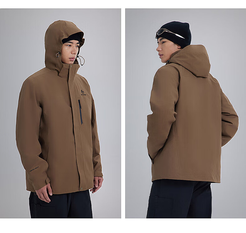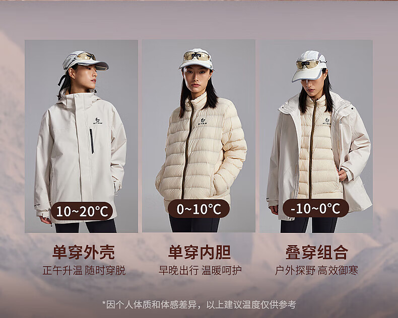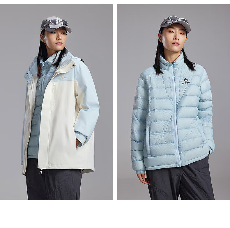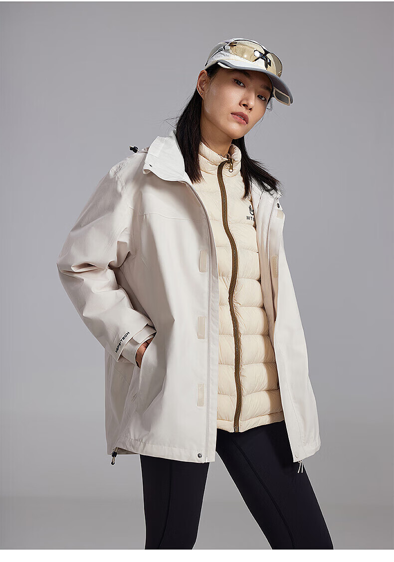 美特斯邦威(Meters Bonwe)男女同款三合一冲锋衣冬季新款羽绒内胆防水防风外套 黑白组 XL 180/100A