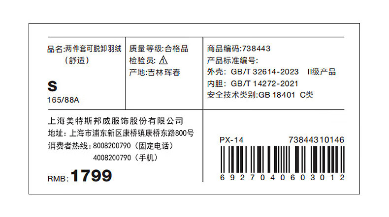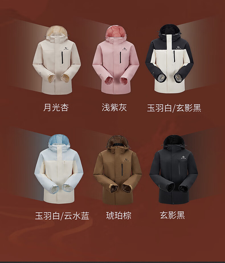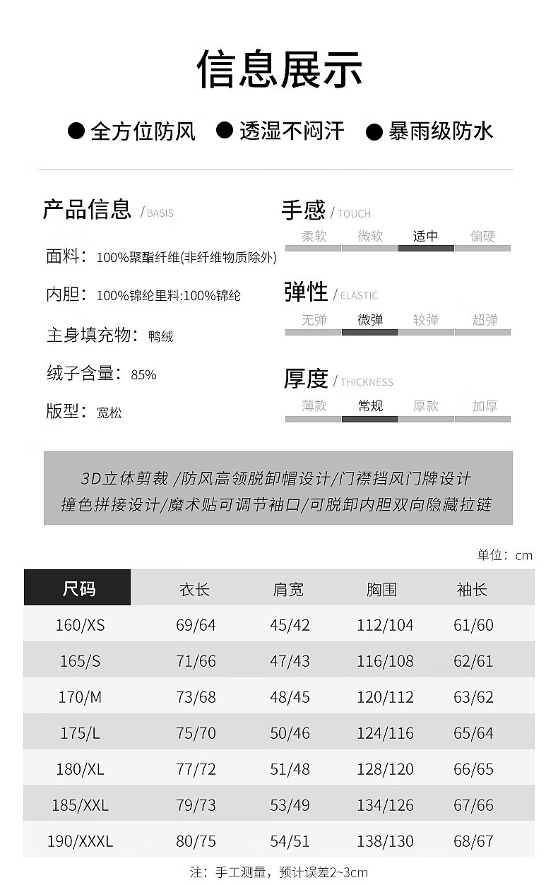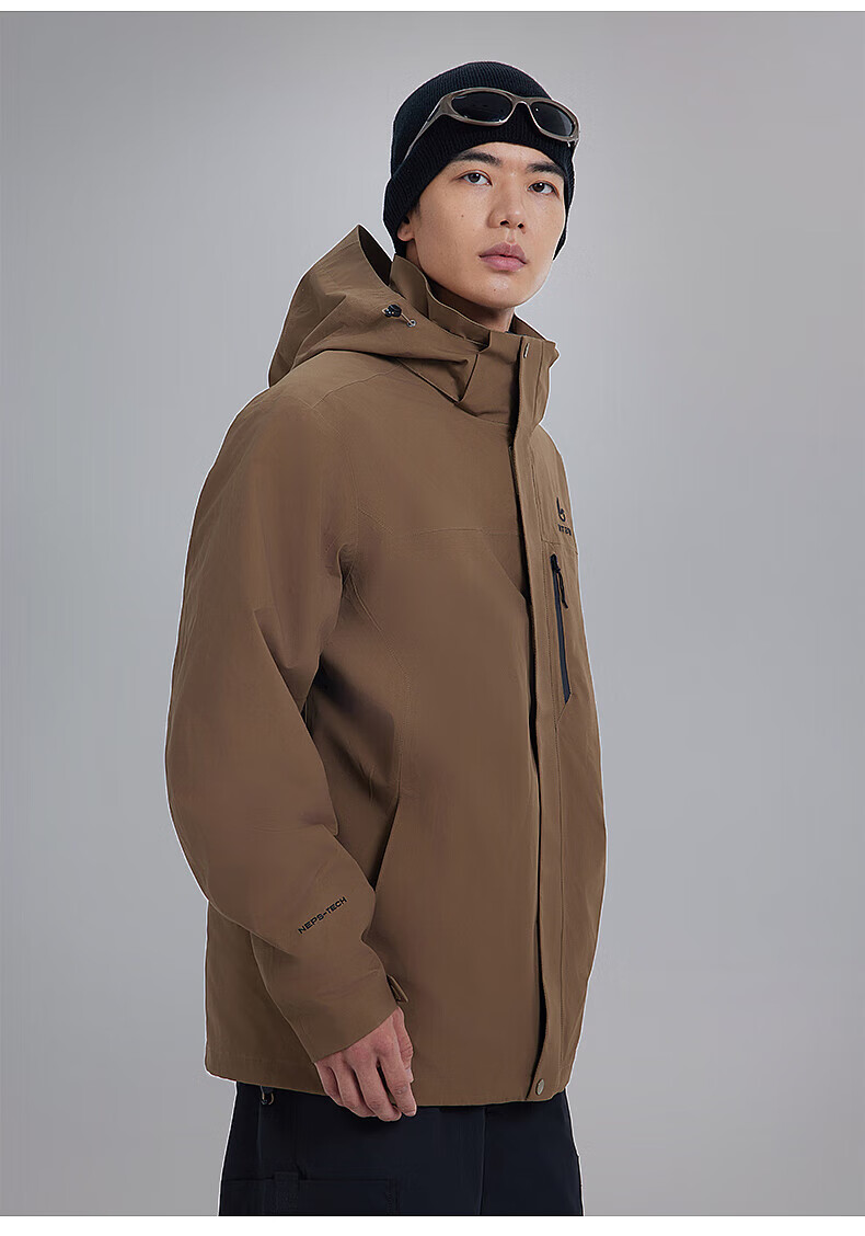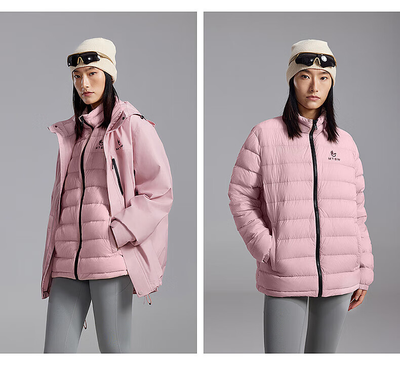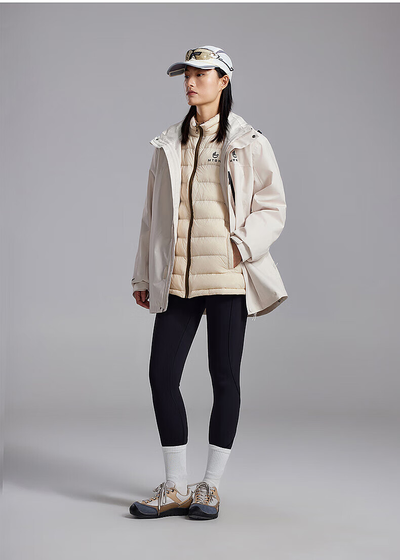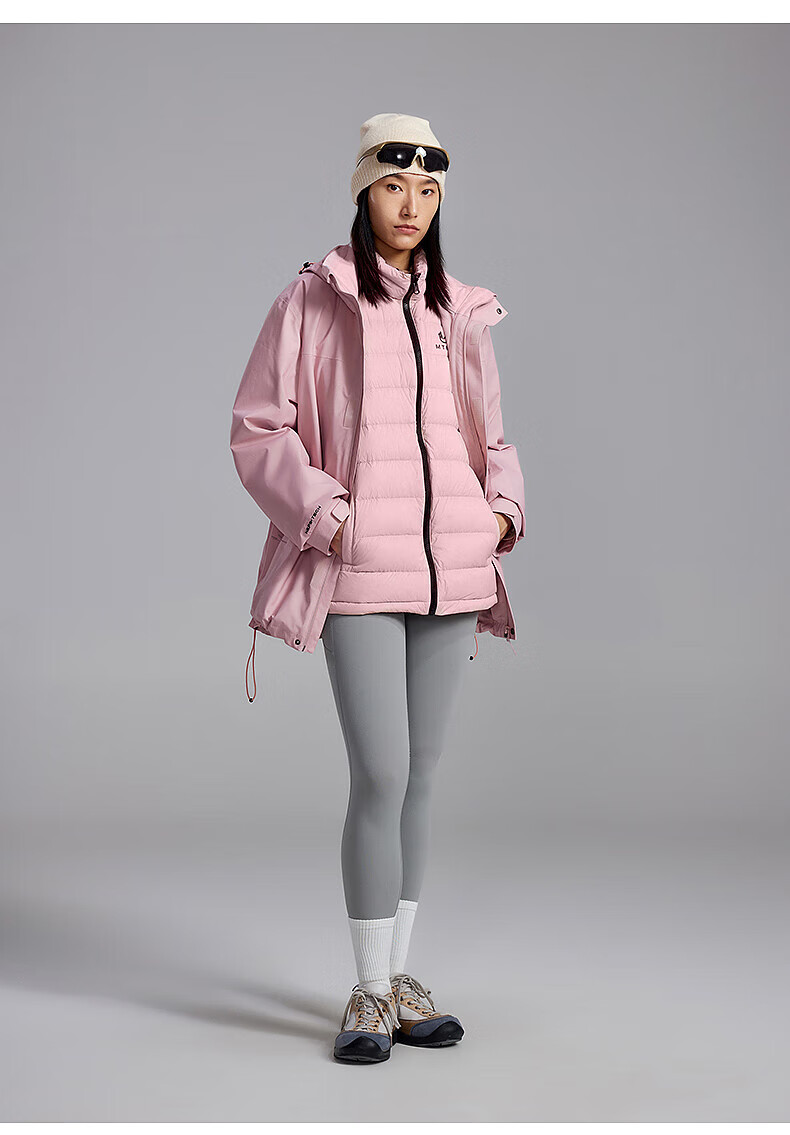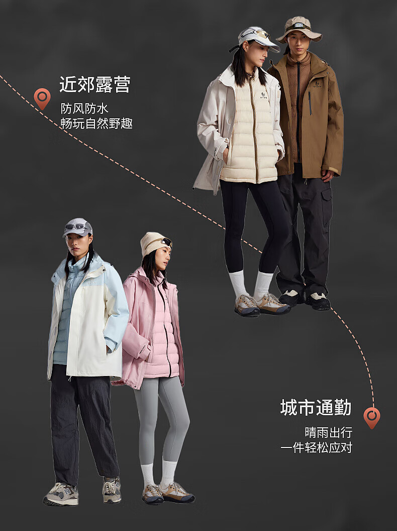 美特斯邦威(Meters Bonwe)男女同款三合一冲锋衣冬季新款羽绒内胆防水防风外套 黑白组 XL 180/100A