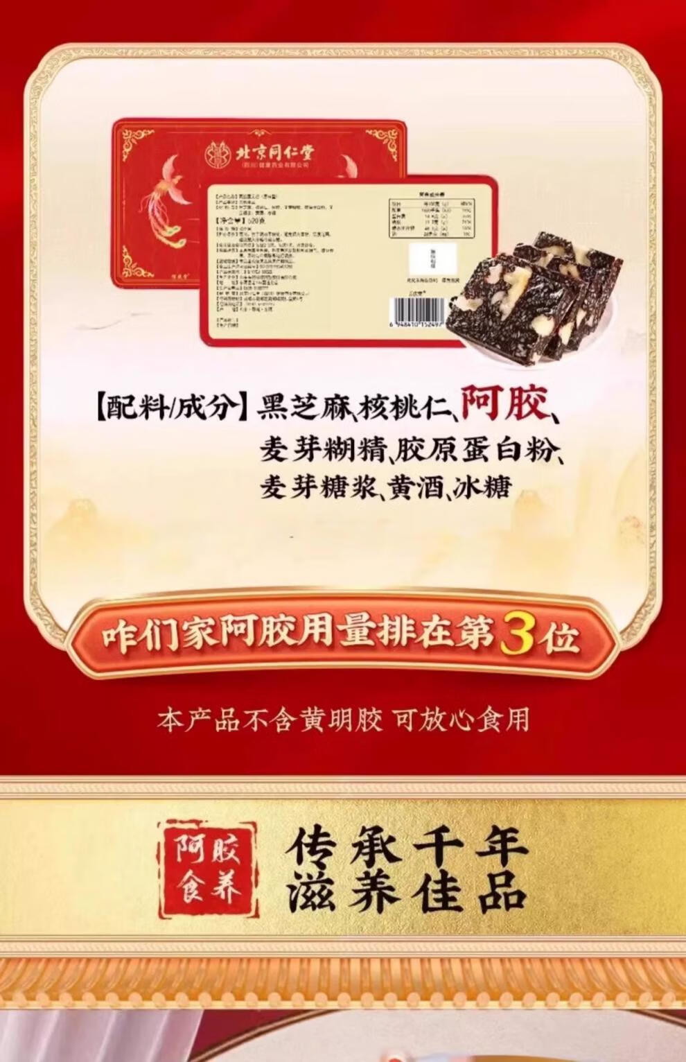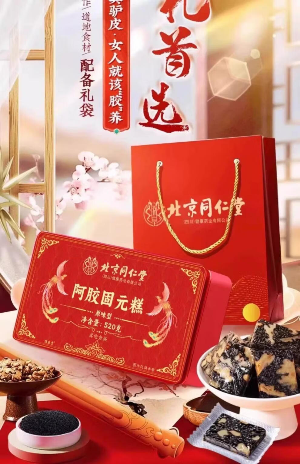 北京同仁堂【官方旗舰】阿胶糕即食纯手工山东东阿镇固元膏 原味2盒