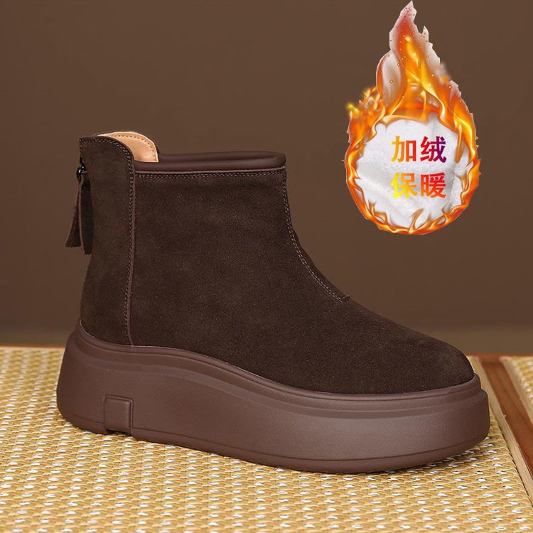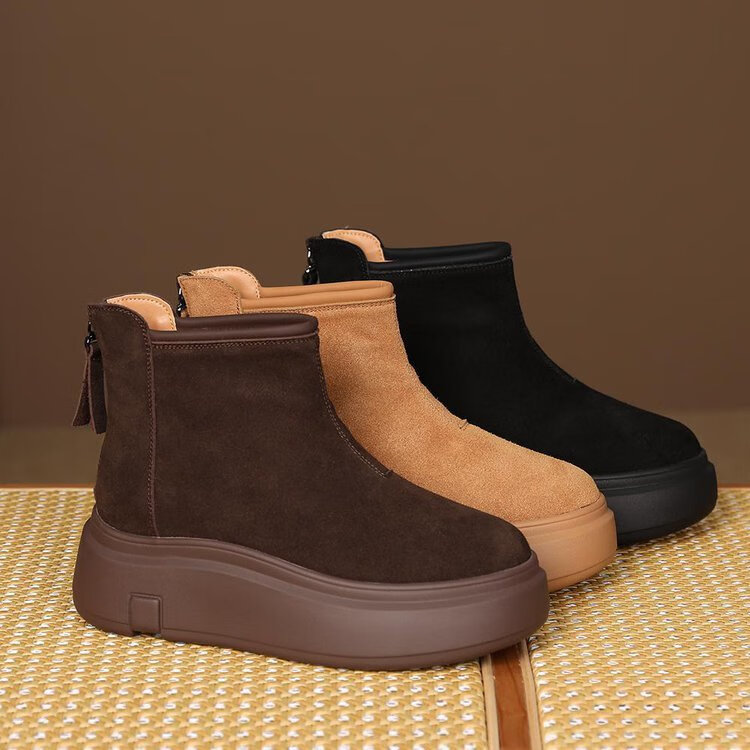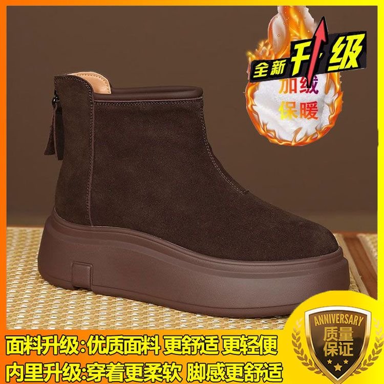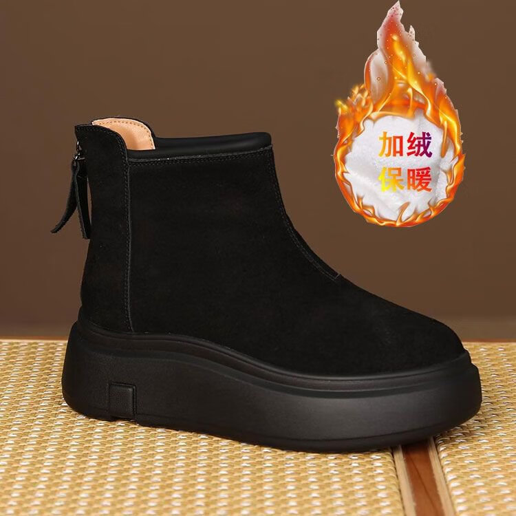 回力四季2025秋冬新款时尚百搭厚底高帮鞋休闲复古加绒保暖短筒靴女士棉鞋 黑色 37