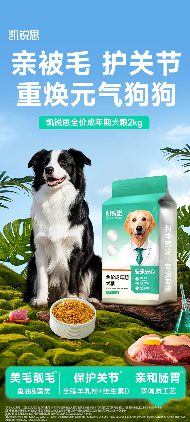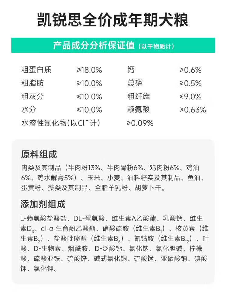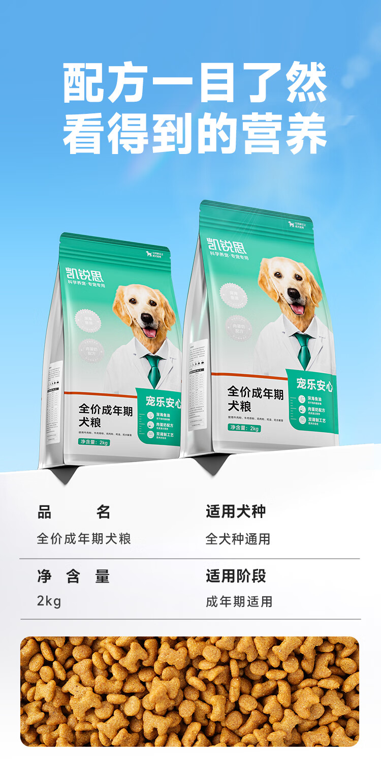 凯锐思【宠乐安心】成犬通用粮 中大型小型犬泰迪柯基金毛狗粮全价全犬 【骨骼强健】中大型犬成犬40斤