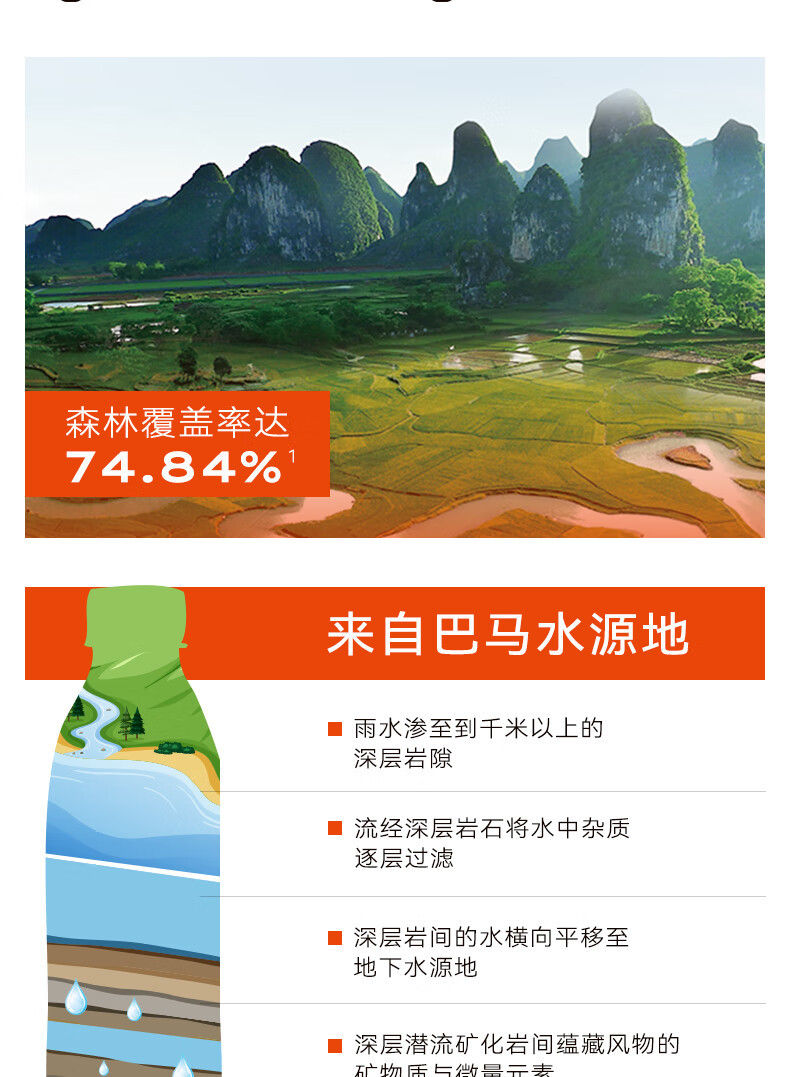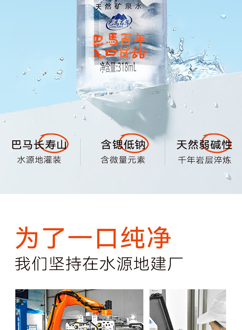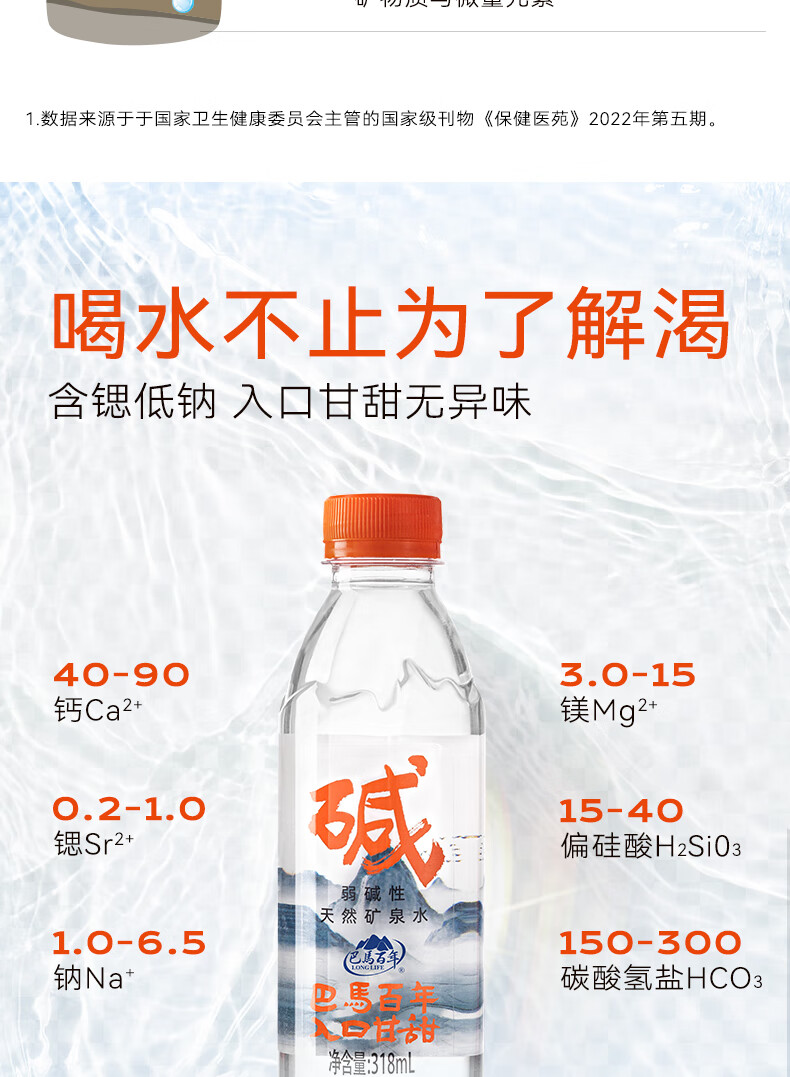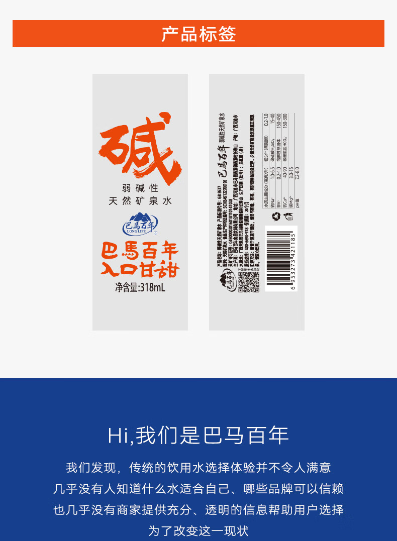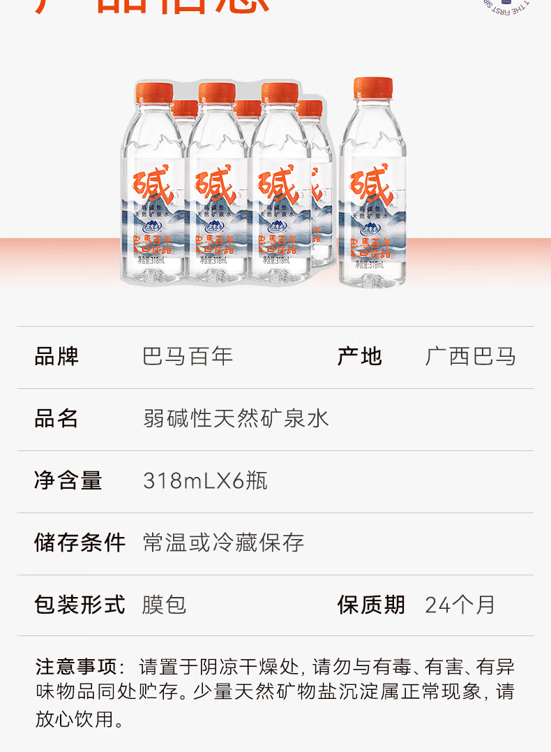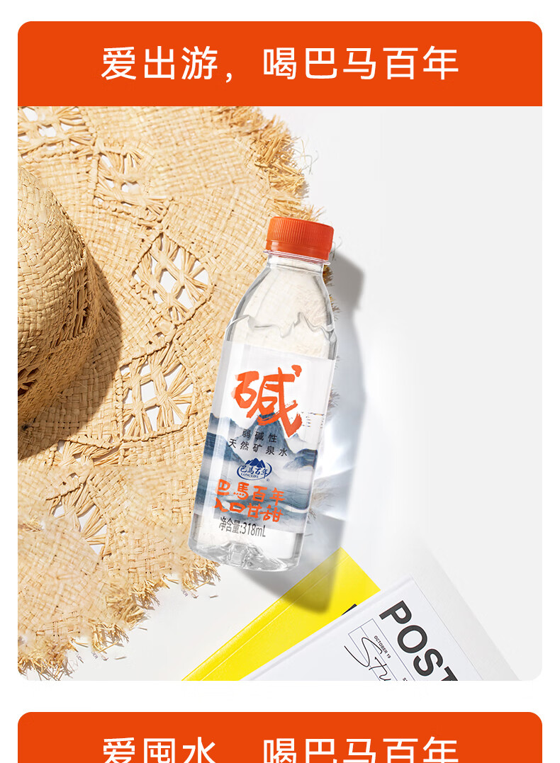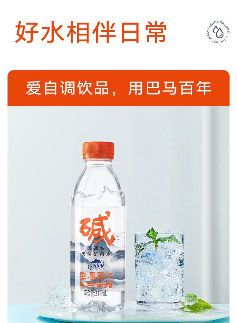 巴馬百年天然弱碱性矿泉水丰富微量元素巴马长寿乡饮用水318ML8支小瓶装