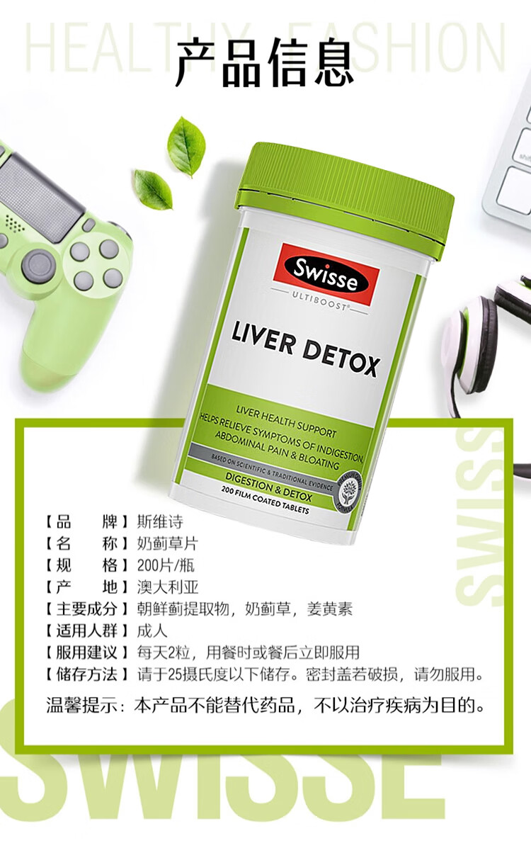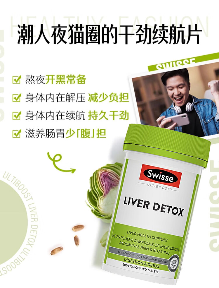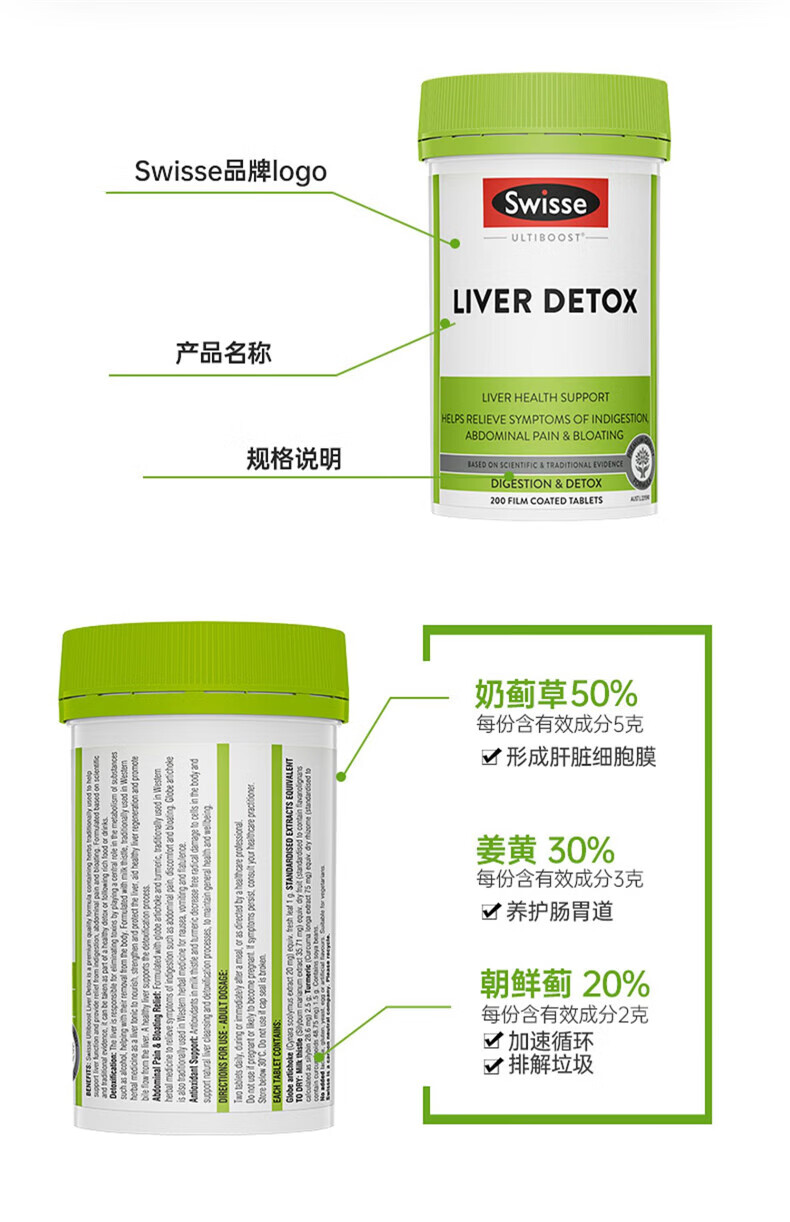 Swisse斯维诗 奶蓟草护肝片 含奶蓟草姜黄洋蓟 熬夜应酬常备200粒/瓶