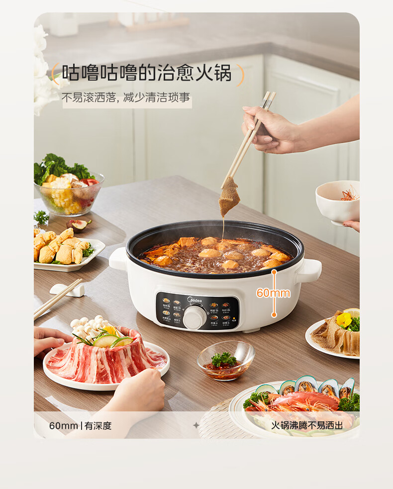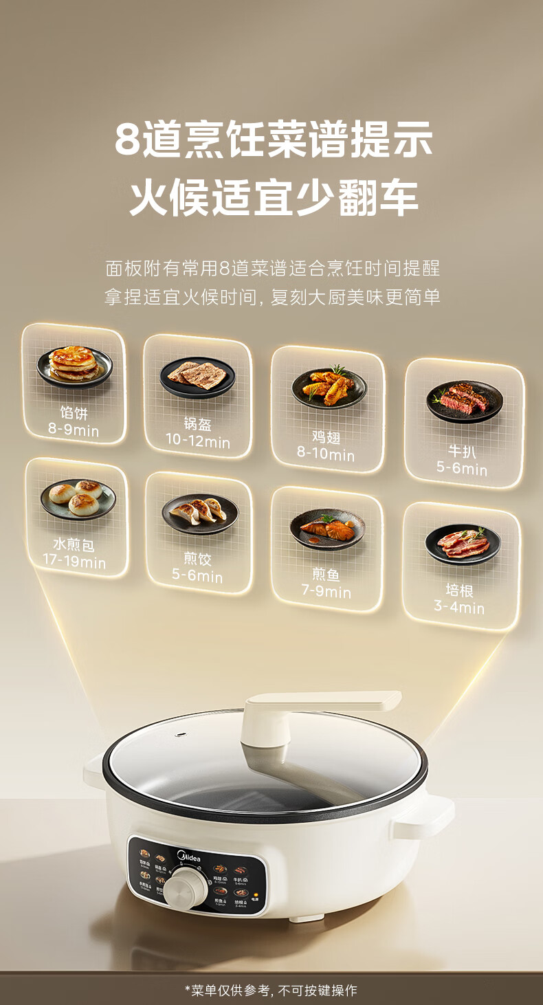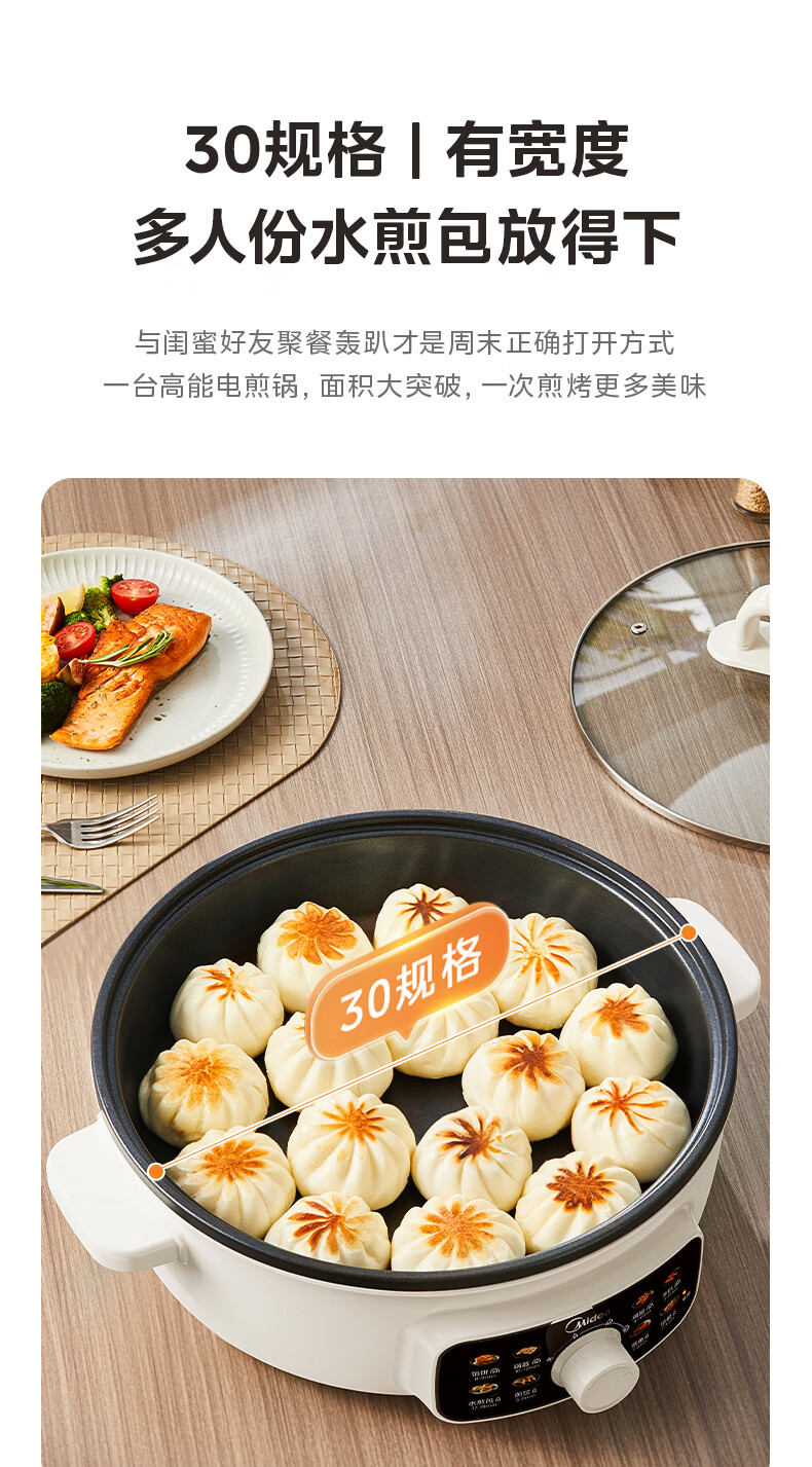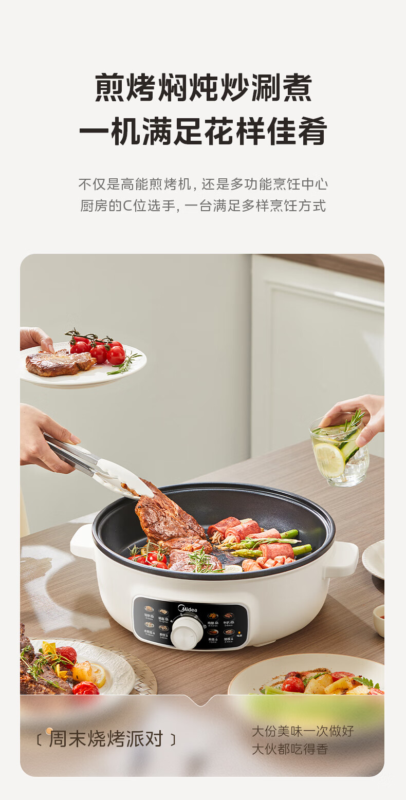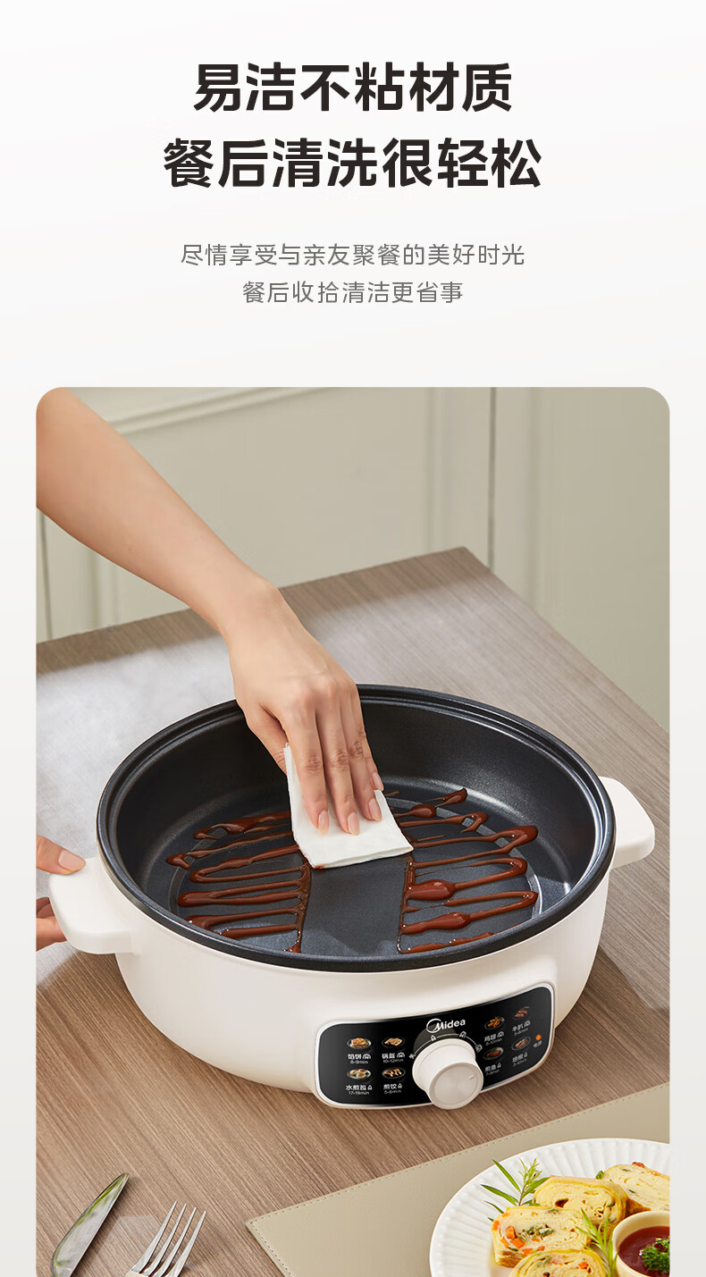 美的(Midea)家用电饼铛烙饼锅 早餐机三明治煎烤机电火锅炒锅烤肉锅 60mm加深 多功能电煎锅抗菌电饼档KE3062