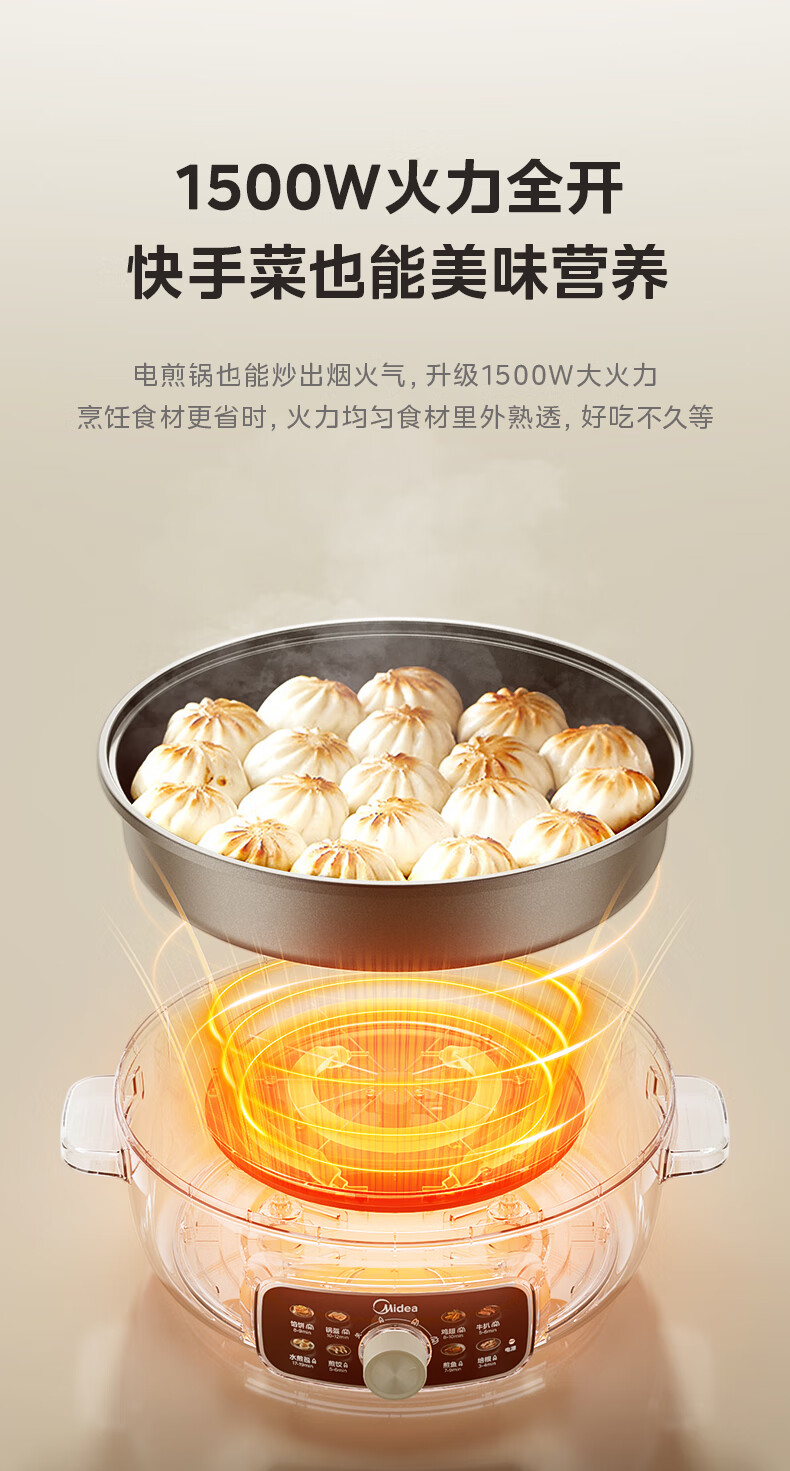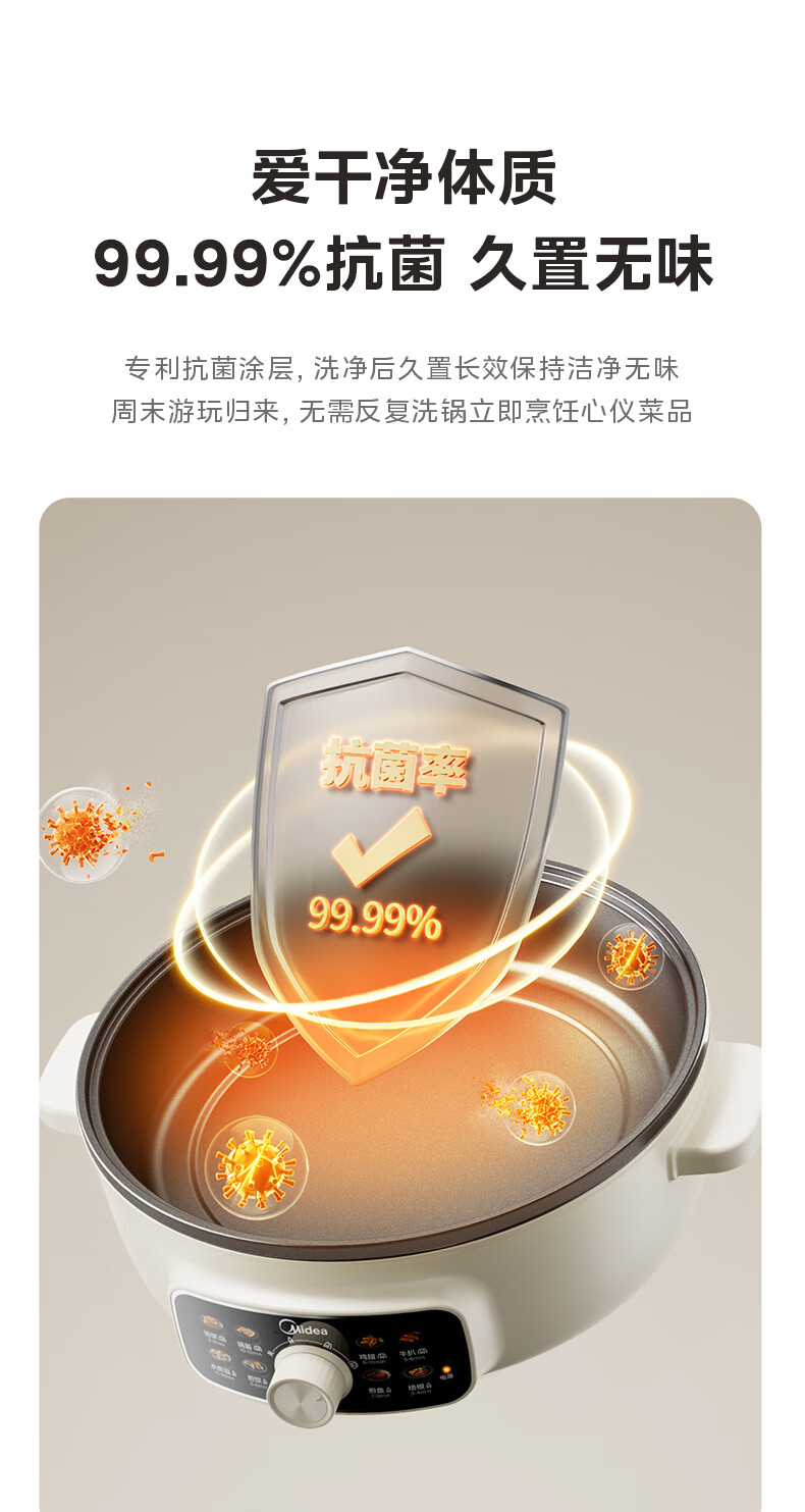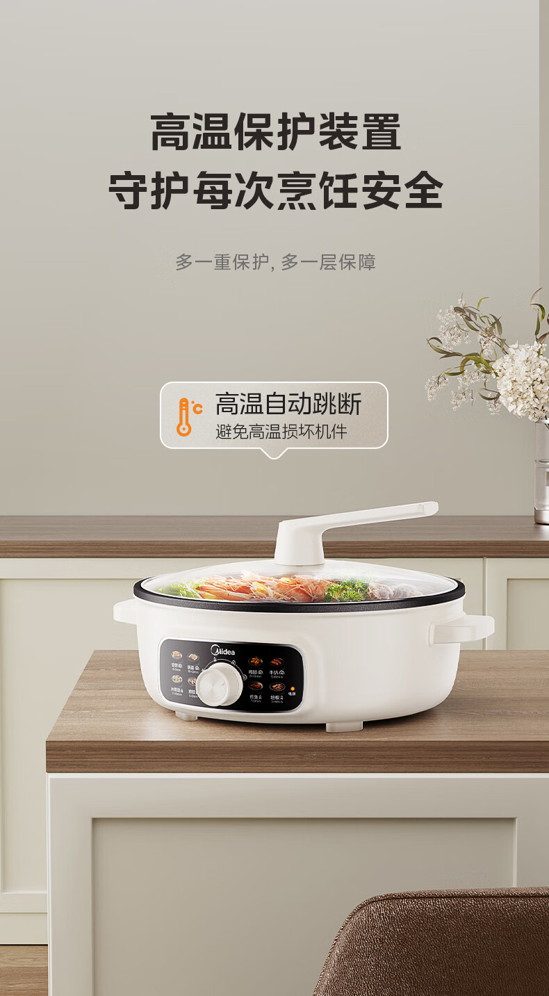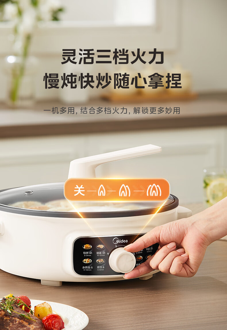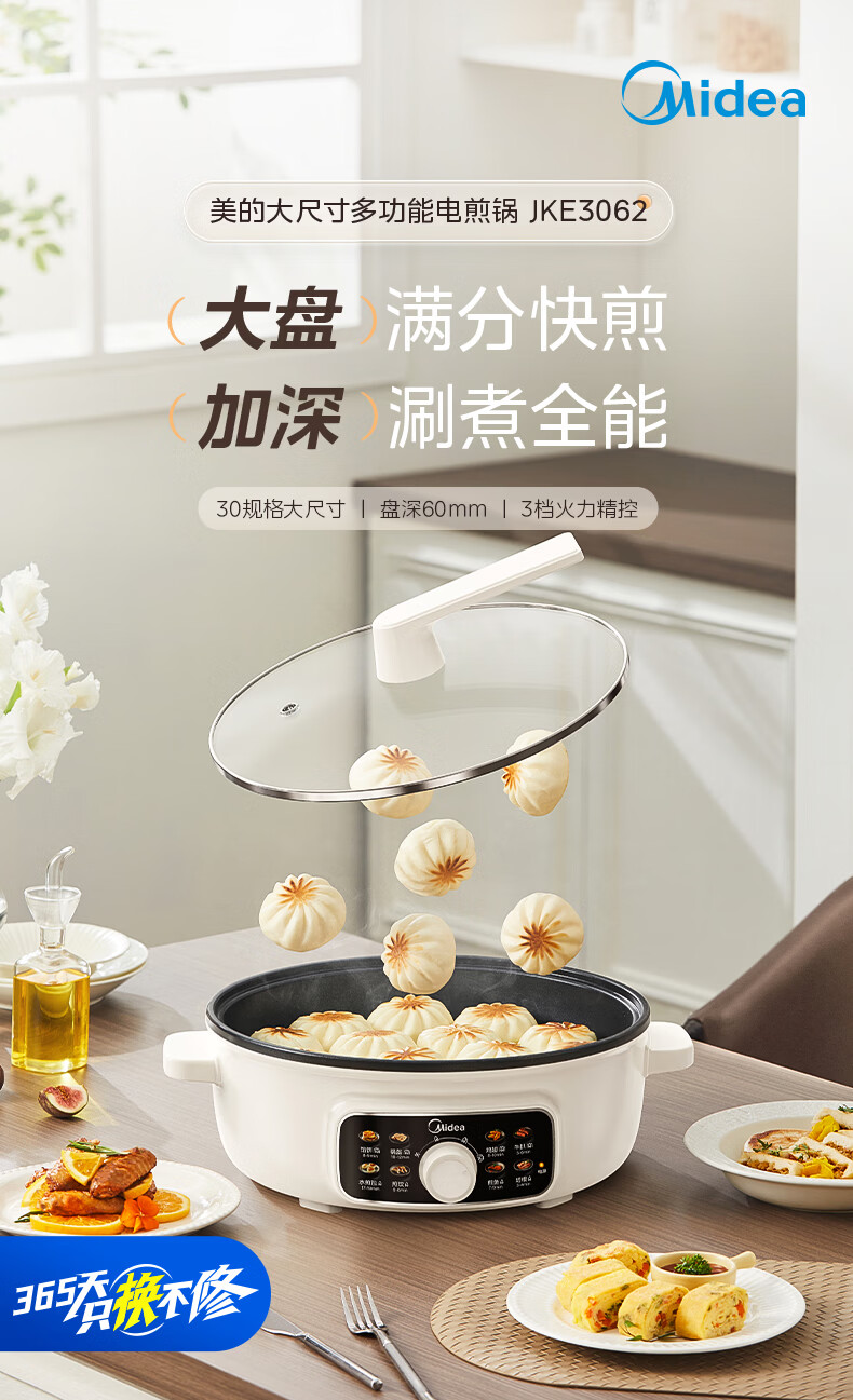 美的(Midea)家用电饼铛烙饼锅 早餐机三明治煎烤机电火锅炒锅烤肉锅 60mm加深 多功能电煎锅抗菌电饼档KE3062