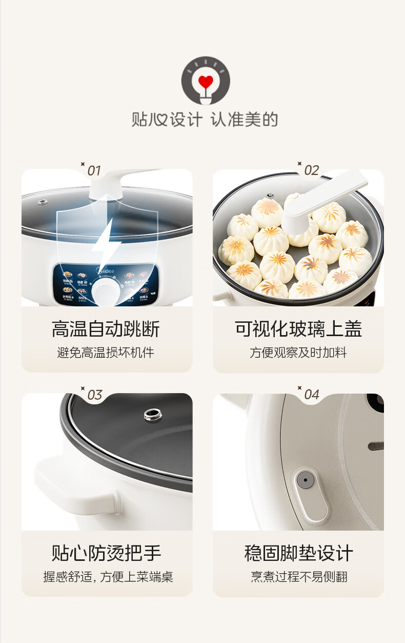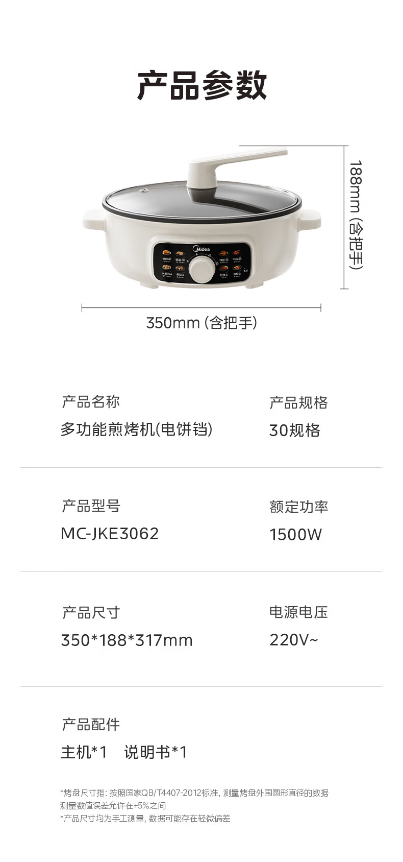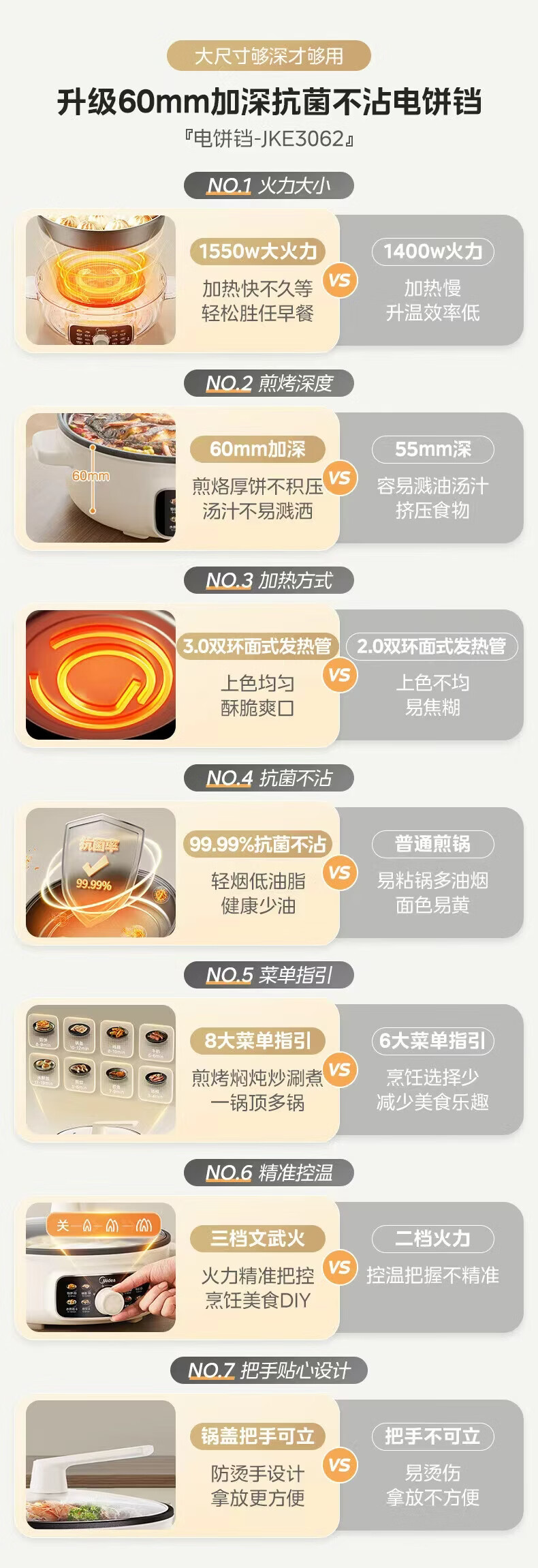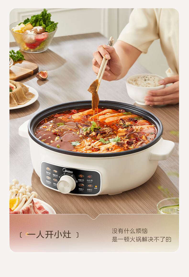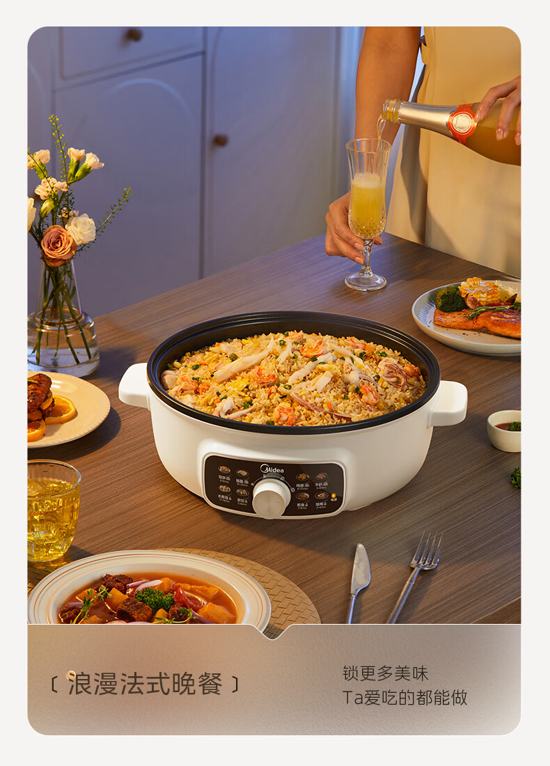 美的(Midea)家用电饼铛烙饼锅 早餐机三明治煎烤机电火锅炒锅烤肉锅 60mm加深 多功能电煎锅抗菌电饼档KE3062