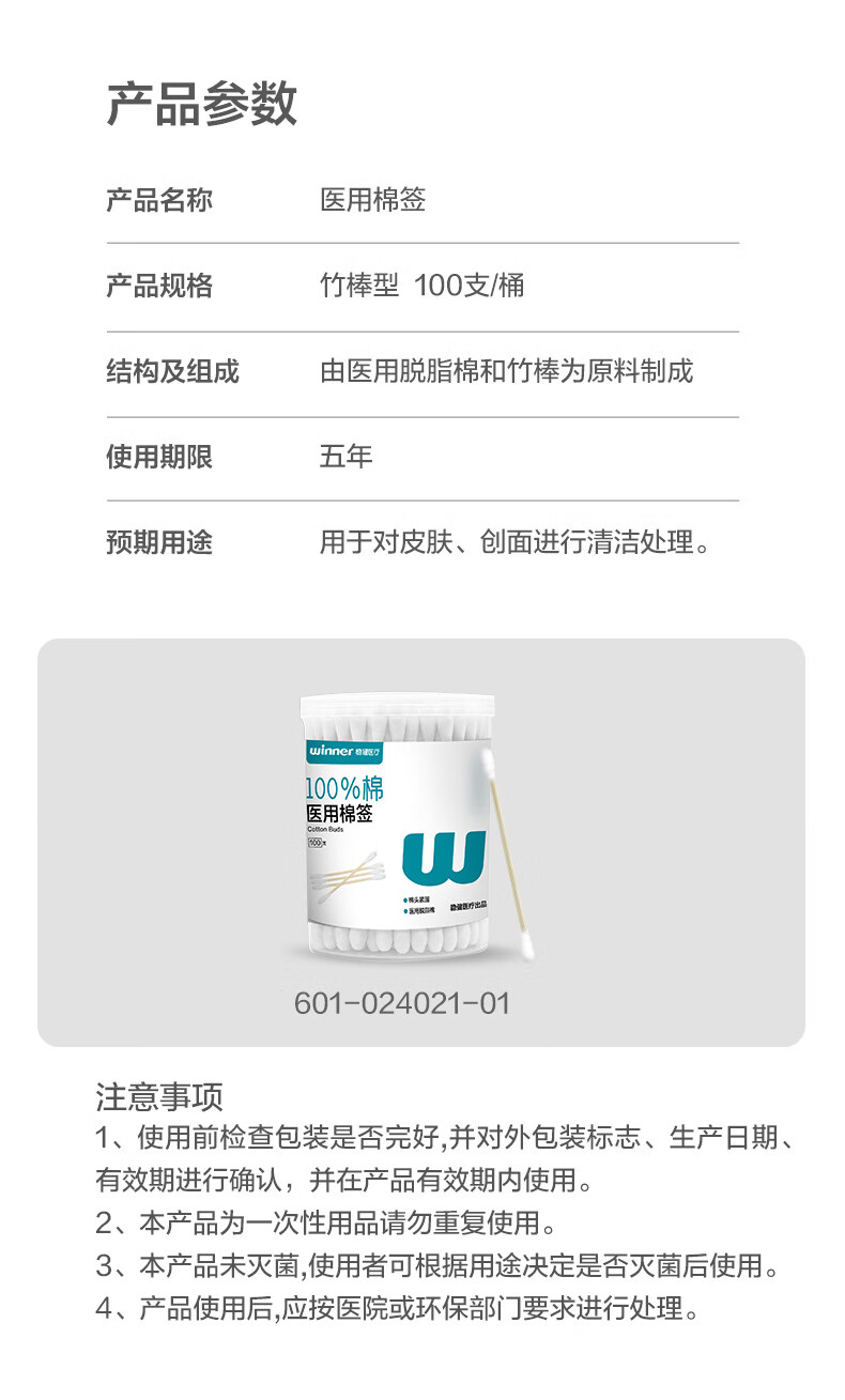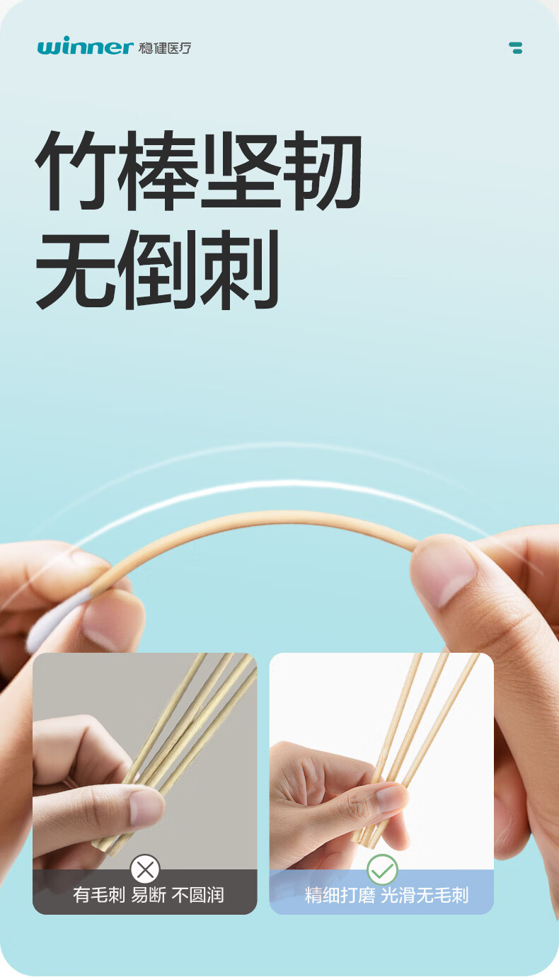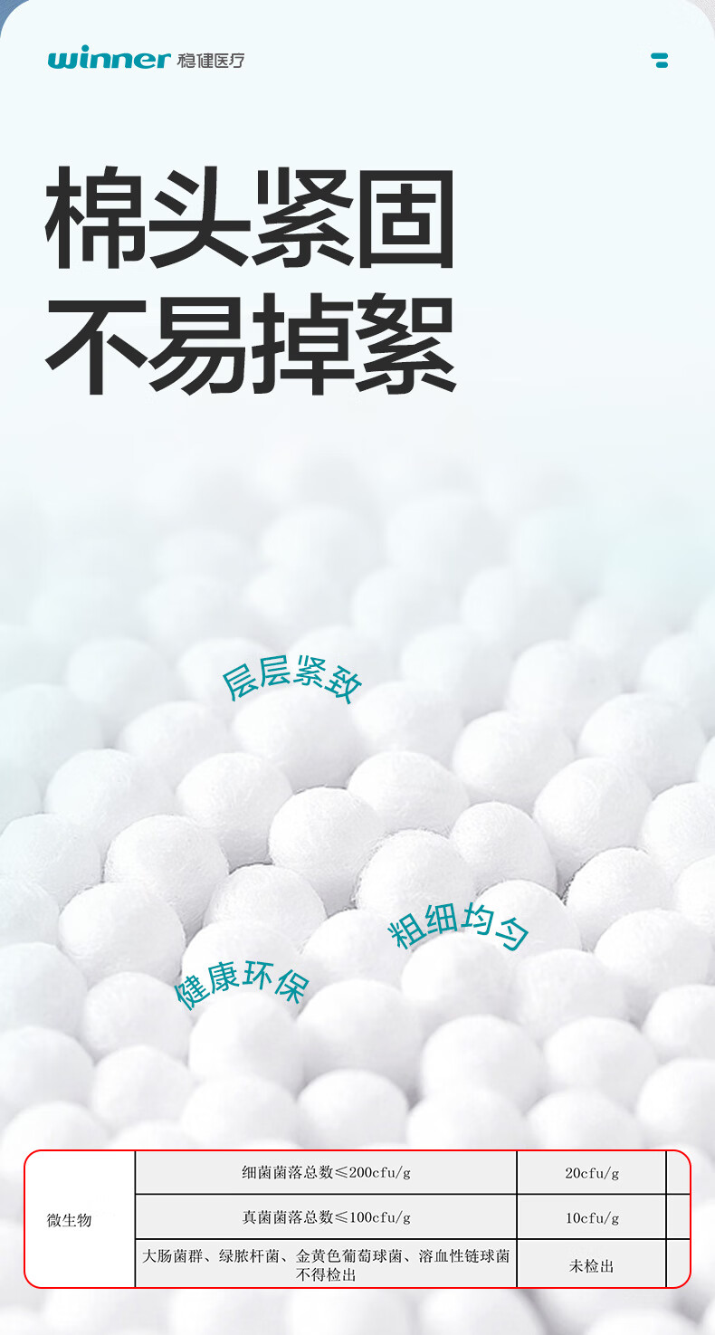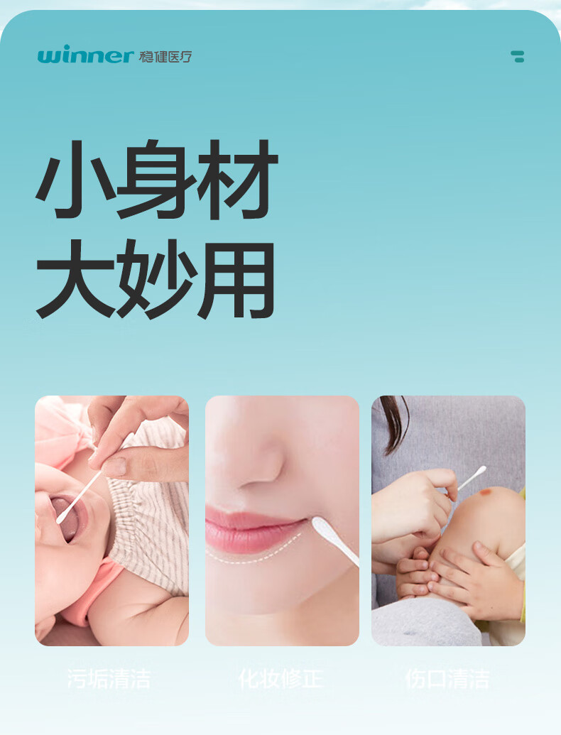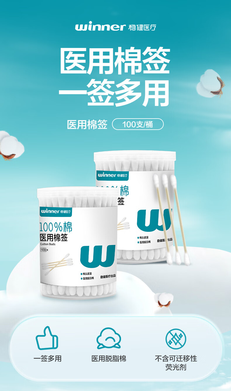 稳健出行医用棉签双头掏耳鼻清洁化妆脱脂棉棉棒白色7.5cm100支/桶