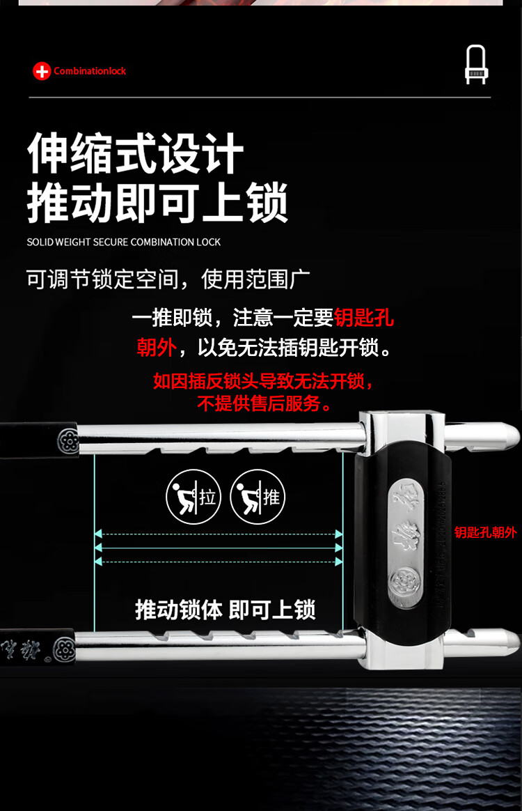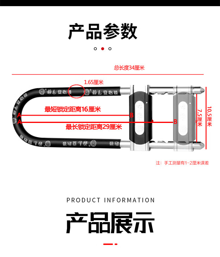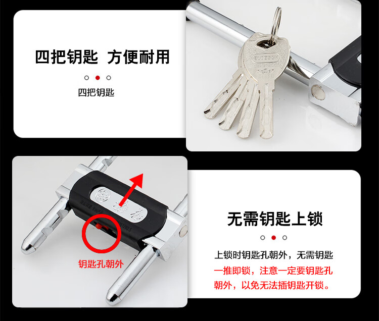 梅花(BLOSSOM)u型锁玻璃门锁双开门锁 铜芯C级锁芯抗剪防盗锁3033