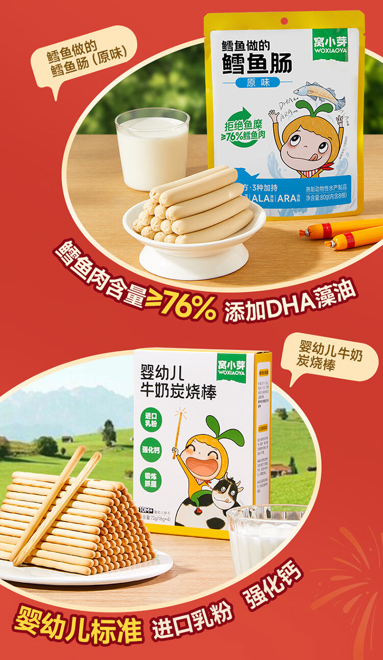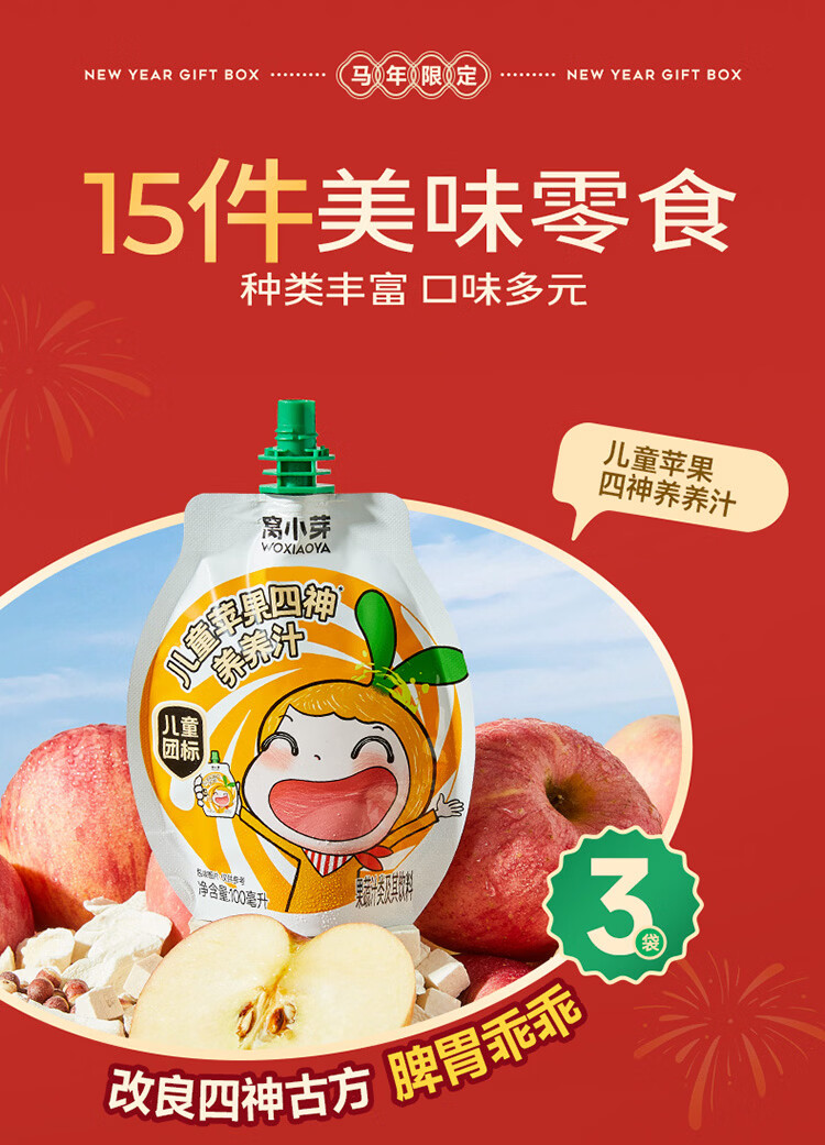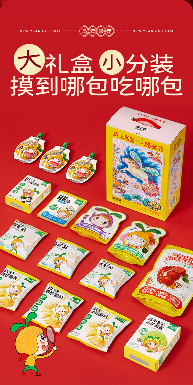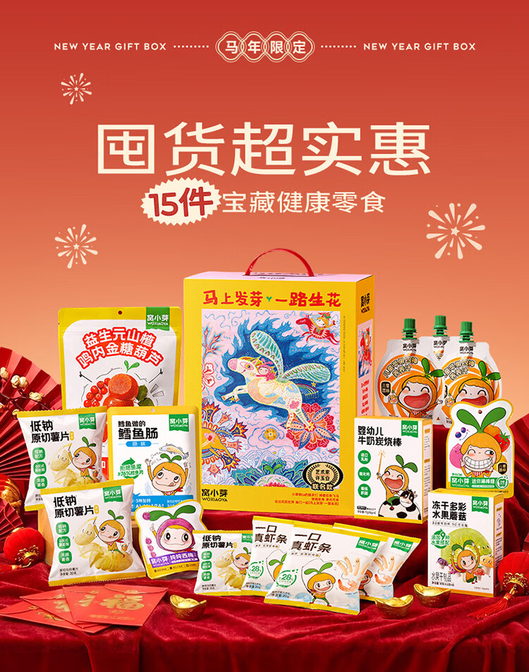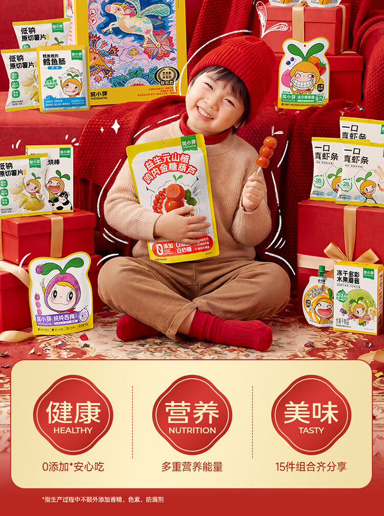 窝小芽新年零食大礼包儿童零食组合新春零食礼盒送礼棒棒糖鳕鱼肠饼干 零食组合15件套