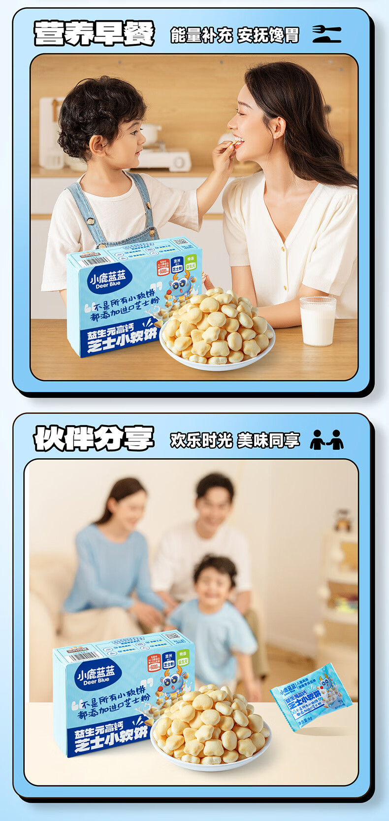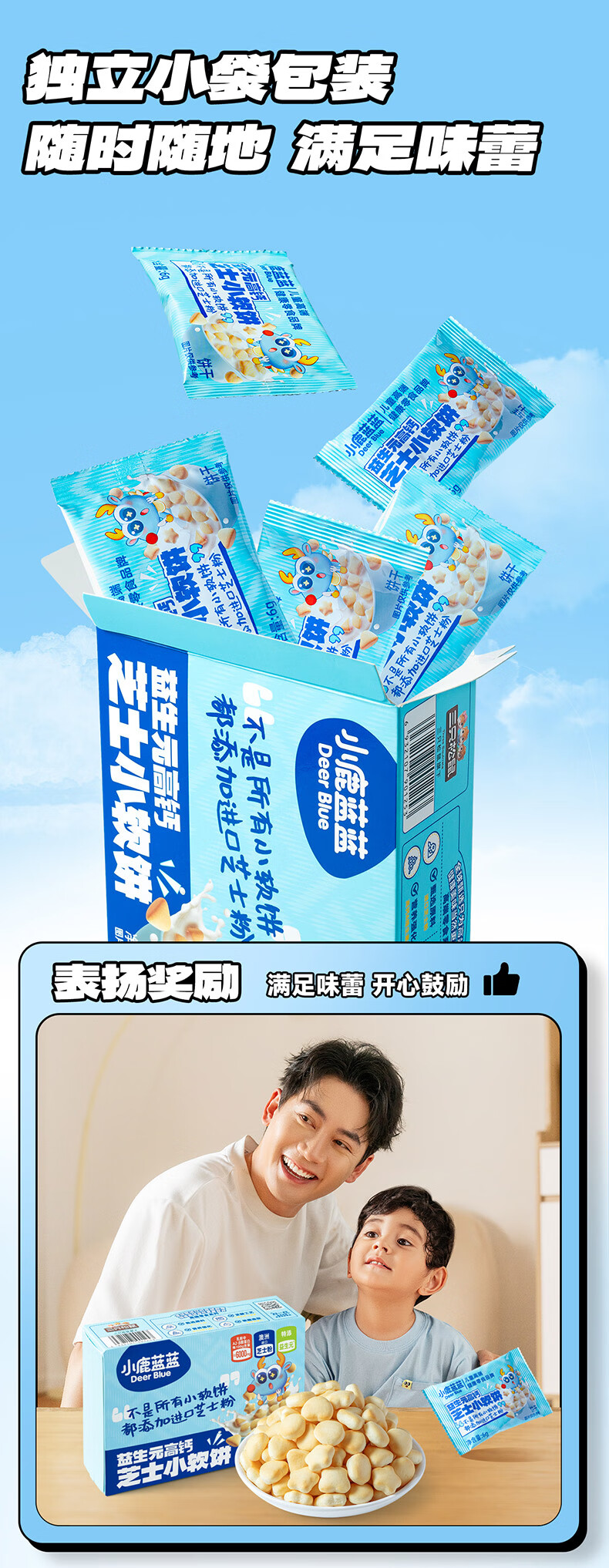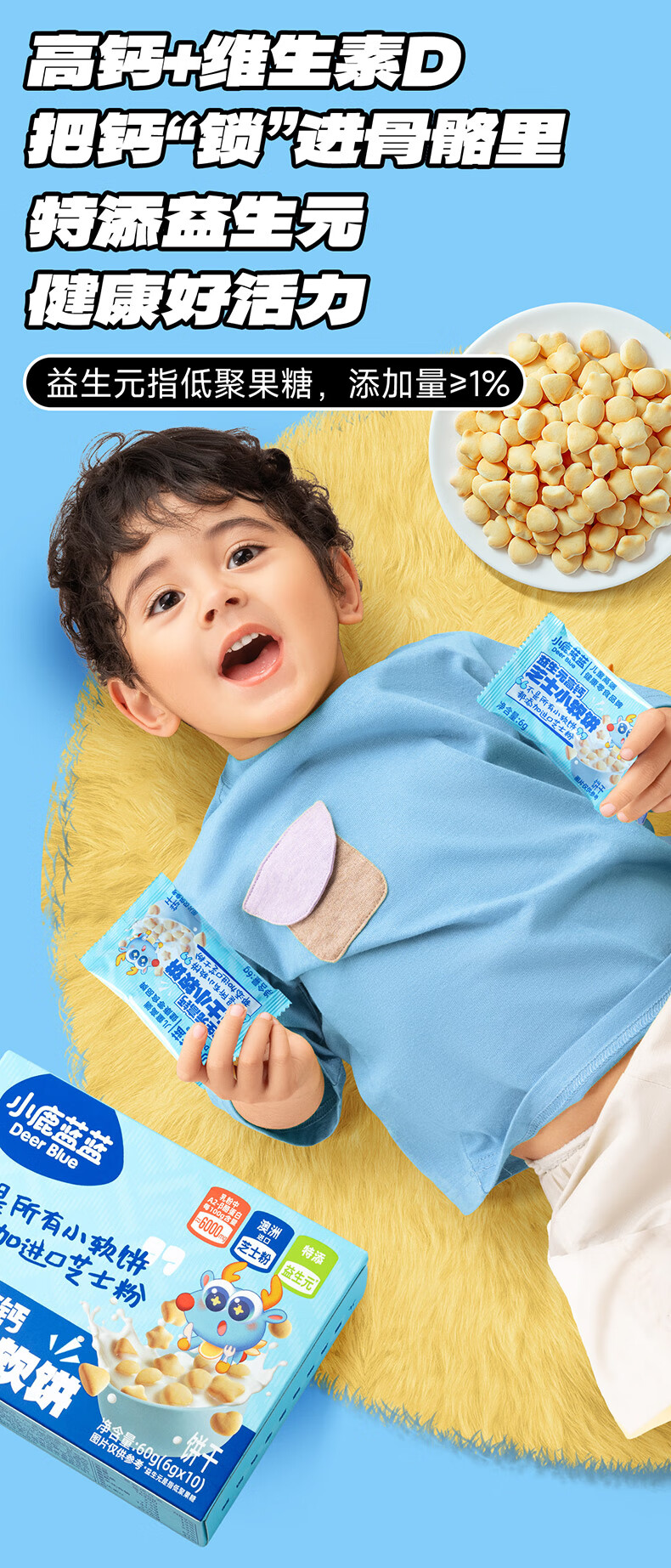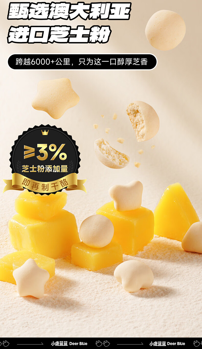 小鹿蓝蓝益生元高钙芝士小软饼60g 宝宝零食儿童零食 纯真奶香小饼干