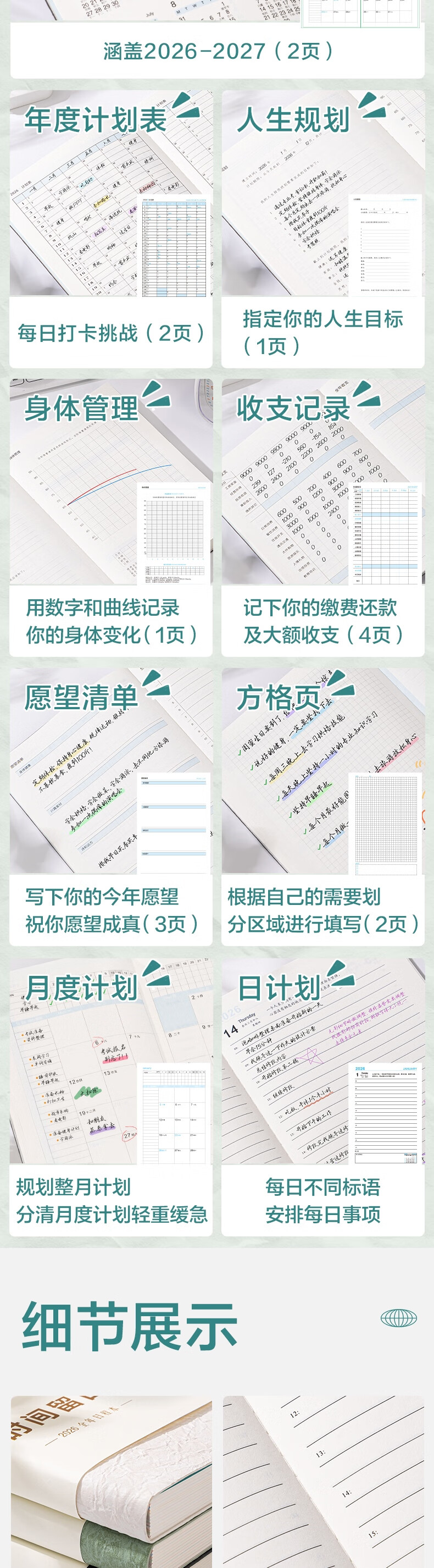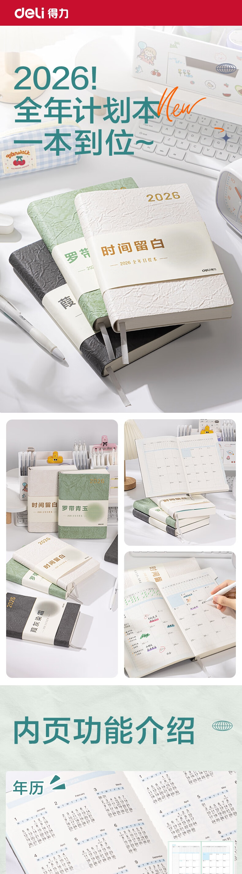 得力(deli)【2026年】日程皮面本周计划月计划商务办公考研高效规划笔记本200张BP101米色