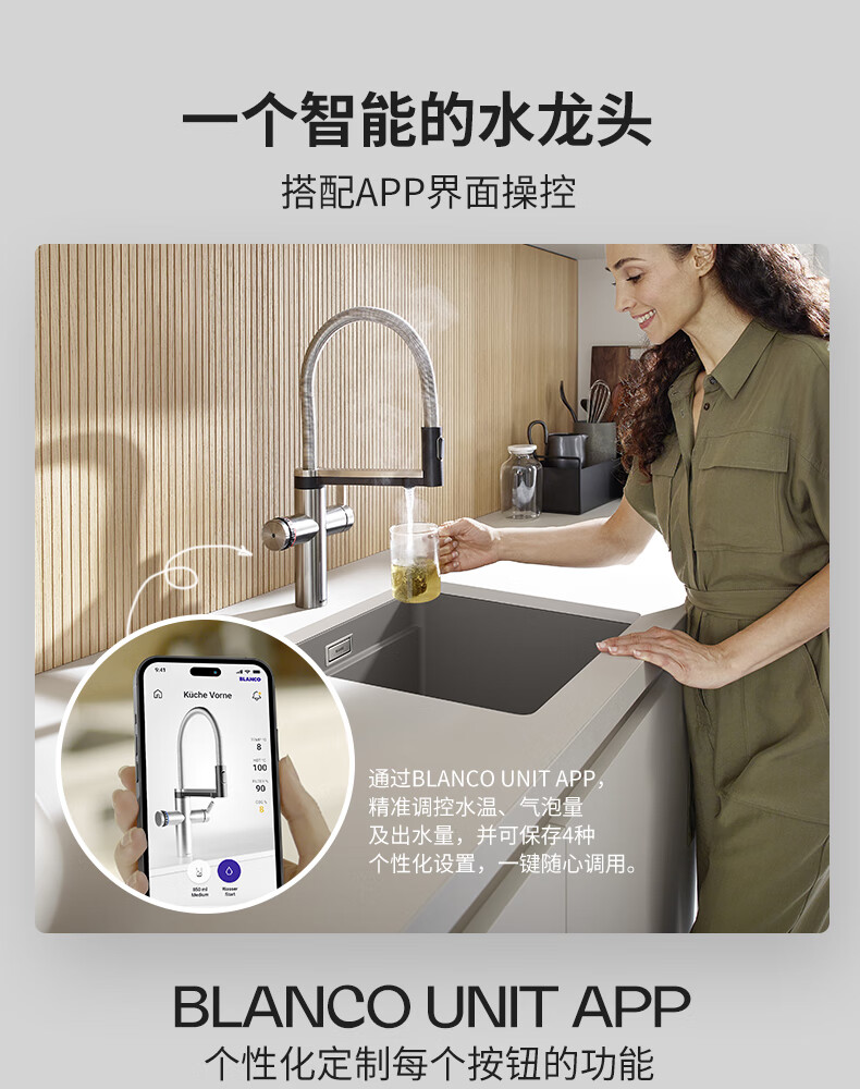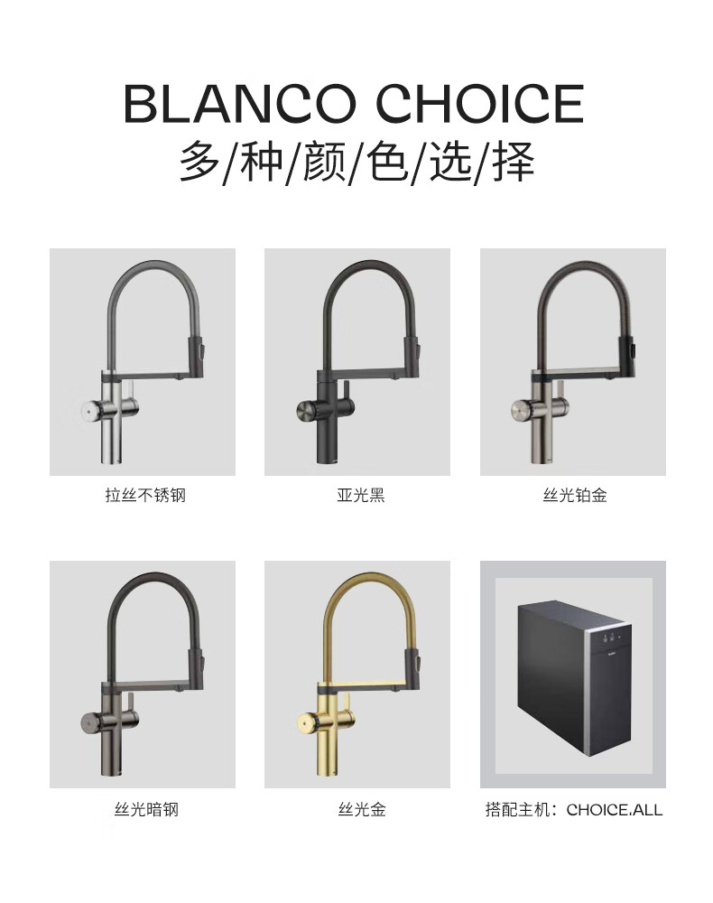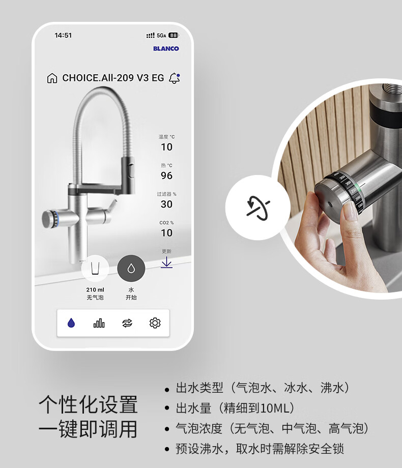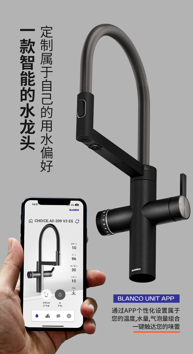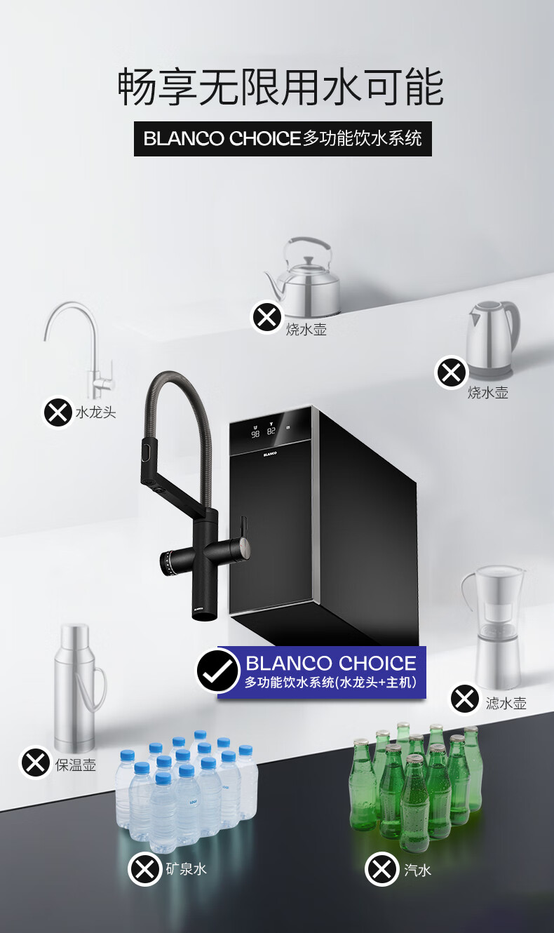 铂浪高(BLANCO)CHOICE智能厨房水龙头多功能模式出水APP操控RO反渗透净水气泡水 丝光暗钢龙头+主机
