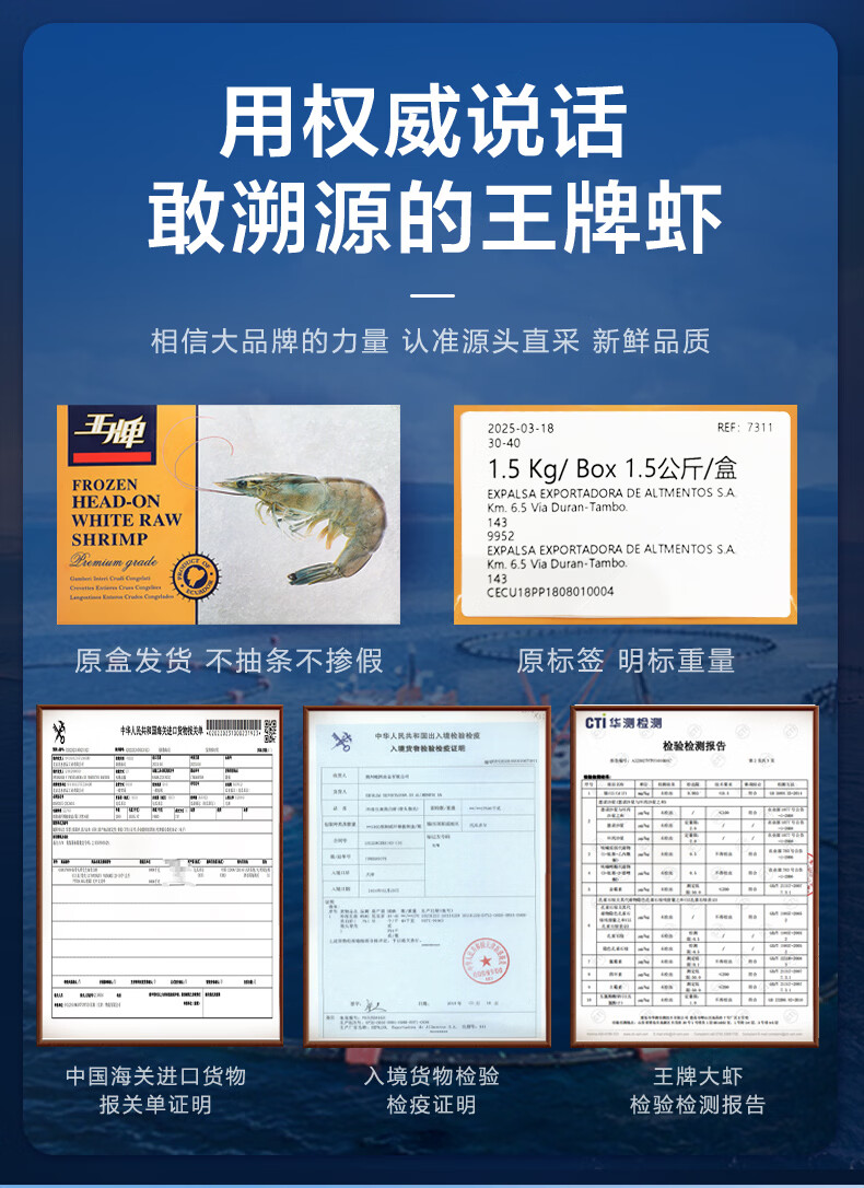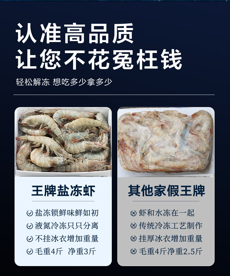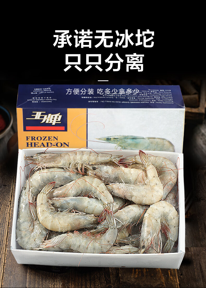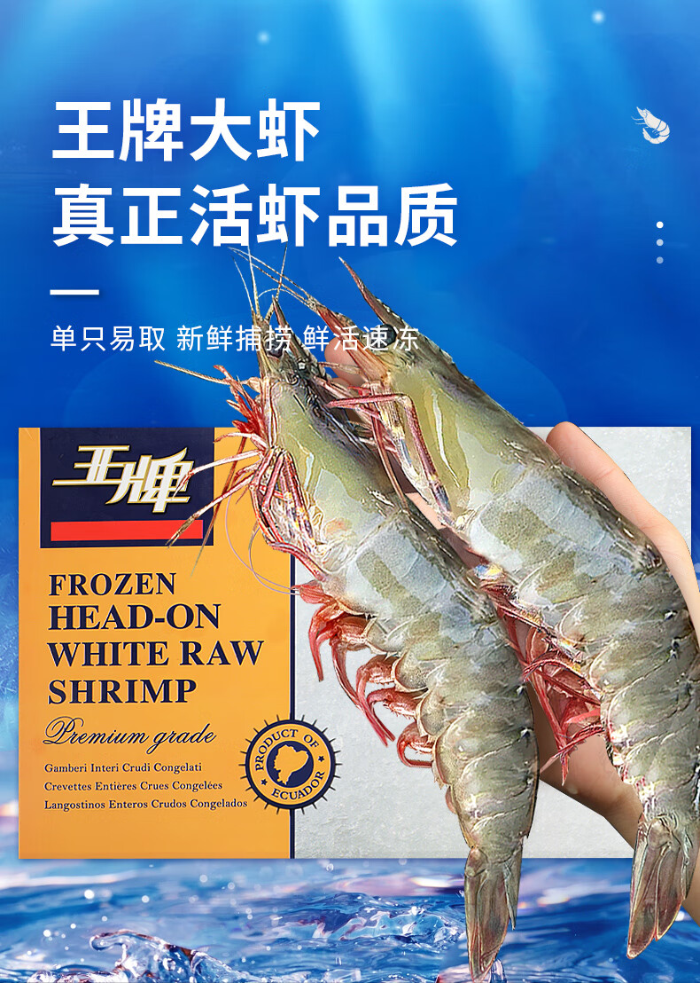 北海湾 王牌生鲜大虾 鲜活盐冻厄瓜多尔白虾原装进口南美大虾基围虾净重 18-22cm【王牌大虾 特大 净重不抽虾】 3斤(净重) 1盒装