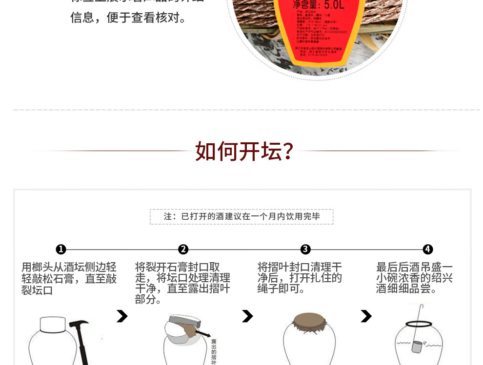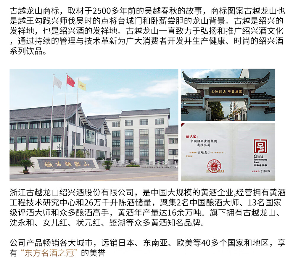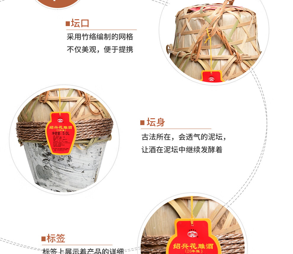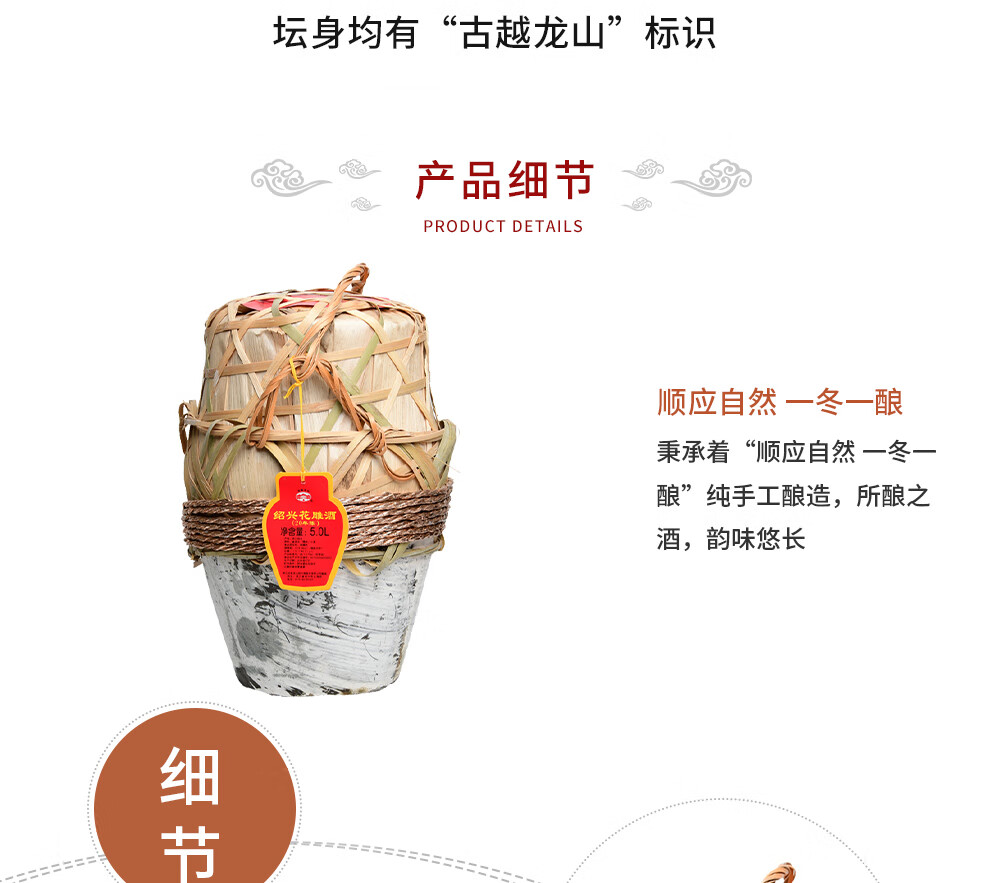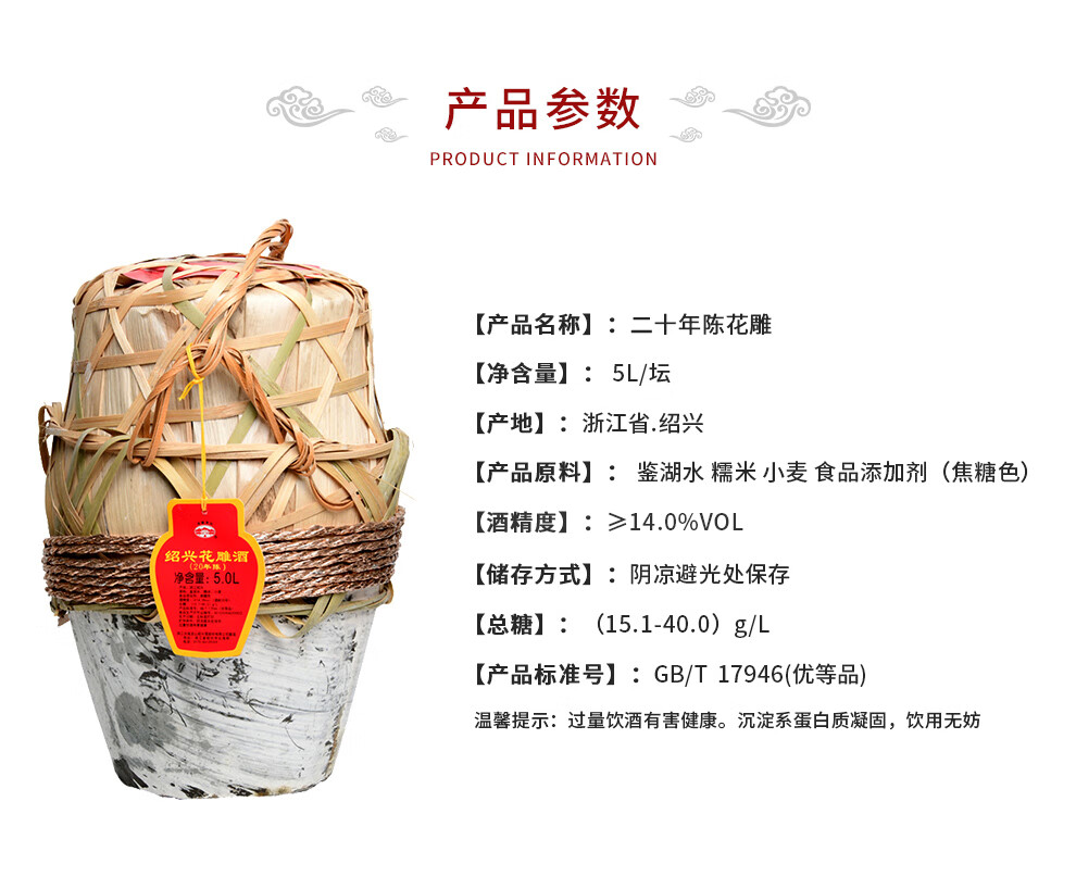 古越龙山正宗绍兴黄酒20年陈花雕酒半干型加饭酒二十年陈老黄酒坛装 5L 1坛
