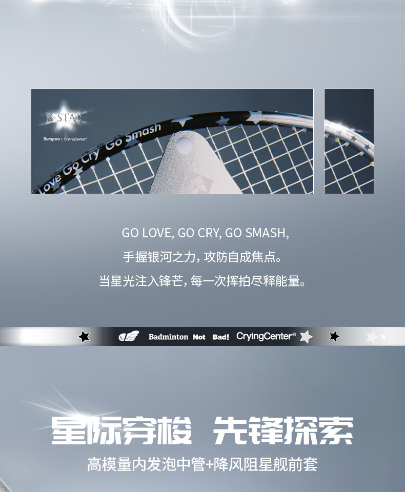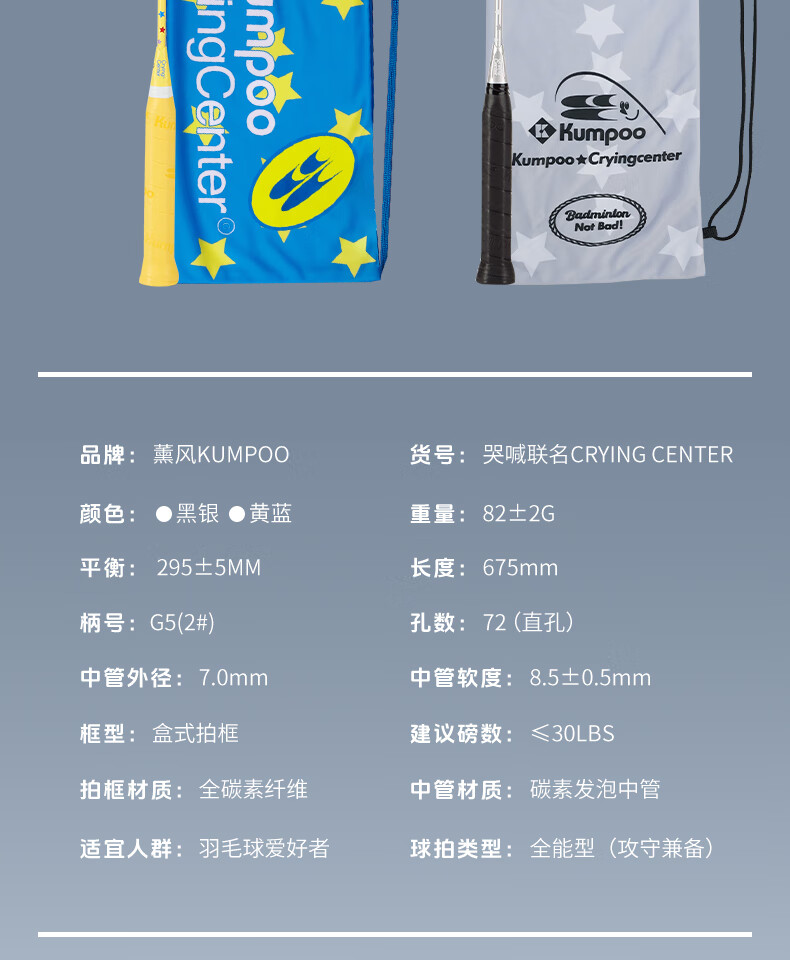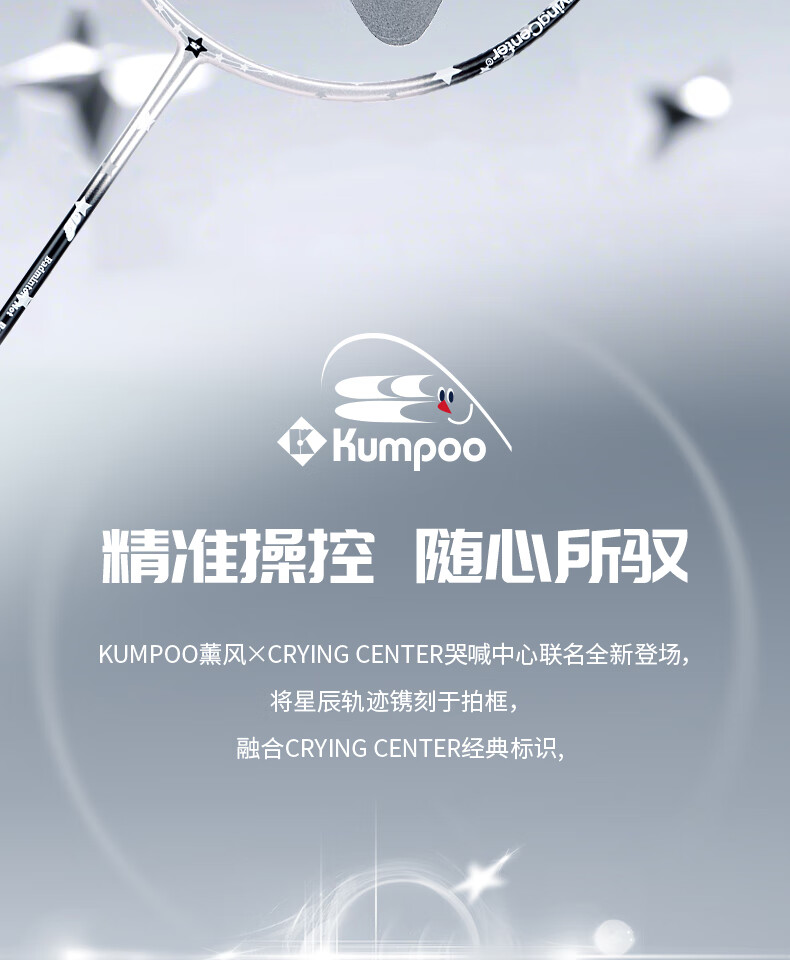薰风(KUMPOO)羽毛球拍全碳素盒式拍框攻守兼备单拍熏风哭喊中心联名款star.ccc 银黑 成品拍