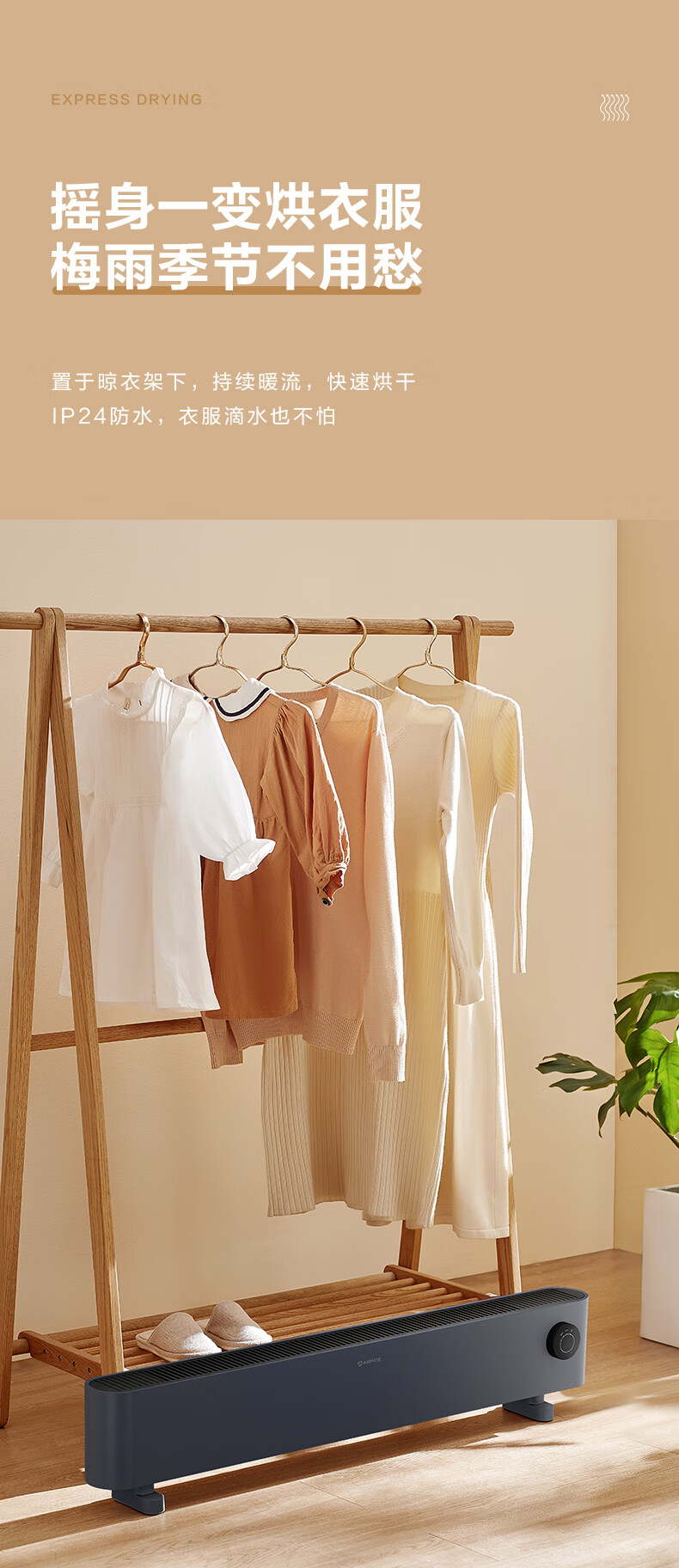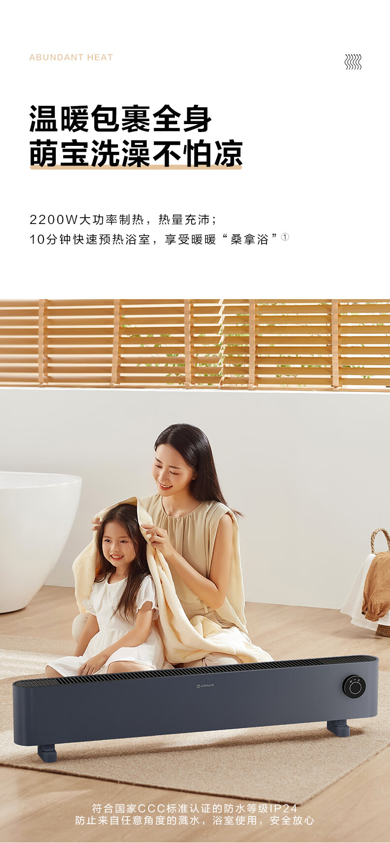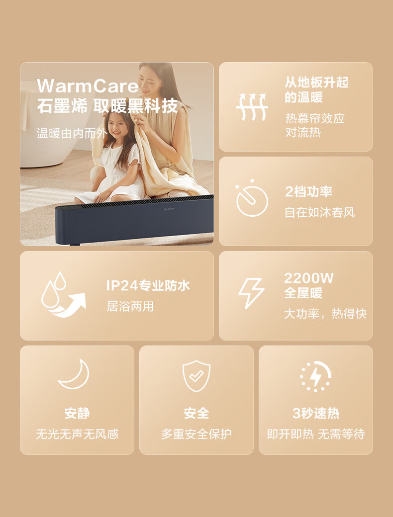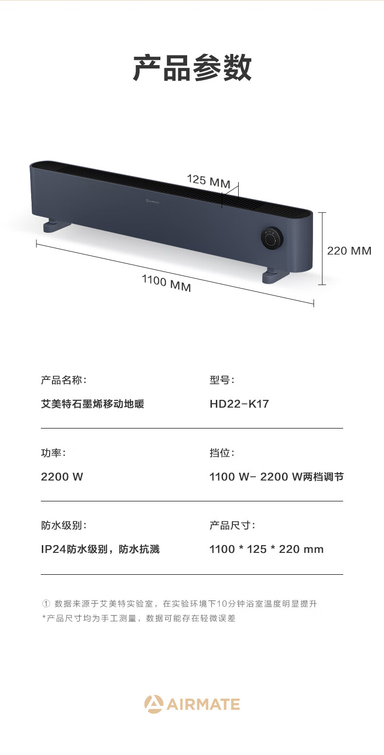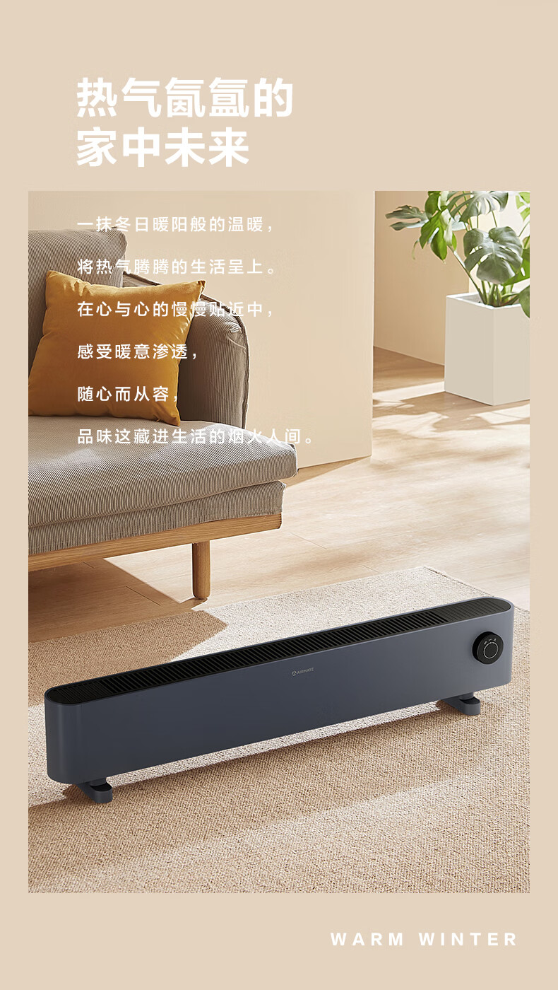 艾美特(AIRMATE)【石墨烯超导】踢脚线/取暖器/暖风机/电暖器/电暖气片 家用客厅浴室防水轻音电热移动地暖