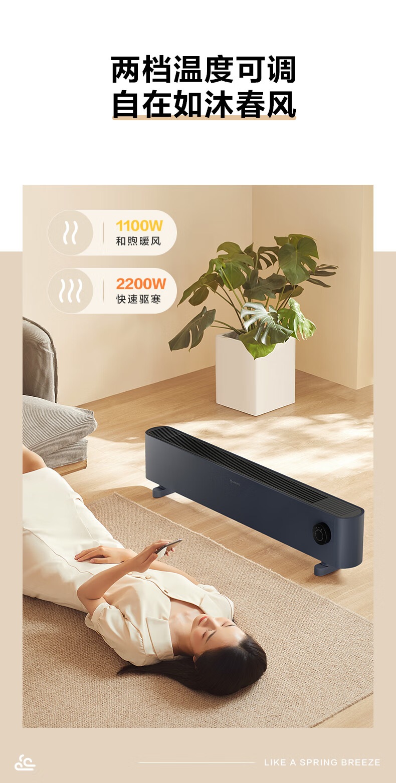 艾美特(AIRMATE)【热销爆款】石墨烯踢脚线取暖器暖风机速热电热电暖器遥控智能电暖气 家用浴室节能全屋升温 SR79